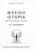 Βαθμίδα εκπαίδευσης: Πρωτοβάθμια Τάξη: ΣΤ' Δημοτικού Μάθημα: Φυτολογία, Ζωολογία, Ανθρωπολογία Γλώσσα: Καθαρεύουσα Παρουσίαση περιεχομένου: Σχολικό εγχειρίδιο Φυσικής Ιστορίας της ΣΤ΄ Δημοτικού το οποίο κάνει μια επισκόπηση της επιστημών της φυτολογίας, της ζωολογίας και της ανθρωπολογίας,. Κατηγοριοποιεί τα ζώα και παραθέτει βασικά γνωρίσματα κάθε κατηγορίας αλλά και τις σχέσεις εξάρτησης των ανθρώπων με κάθε είδος (πχ αλιεία, κτηνοτροφία) στο ελληνικό πλαίσιο. Το δεύτερο μέρος αναλύει τα μέρη του ανθρώπινου σώματος και εστιάζει σε ζητήματα υγιεινής. |