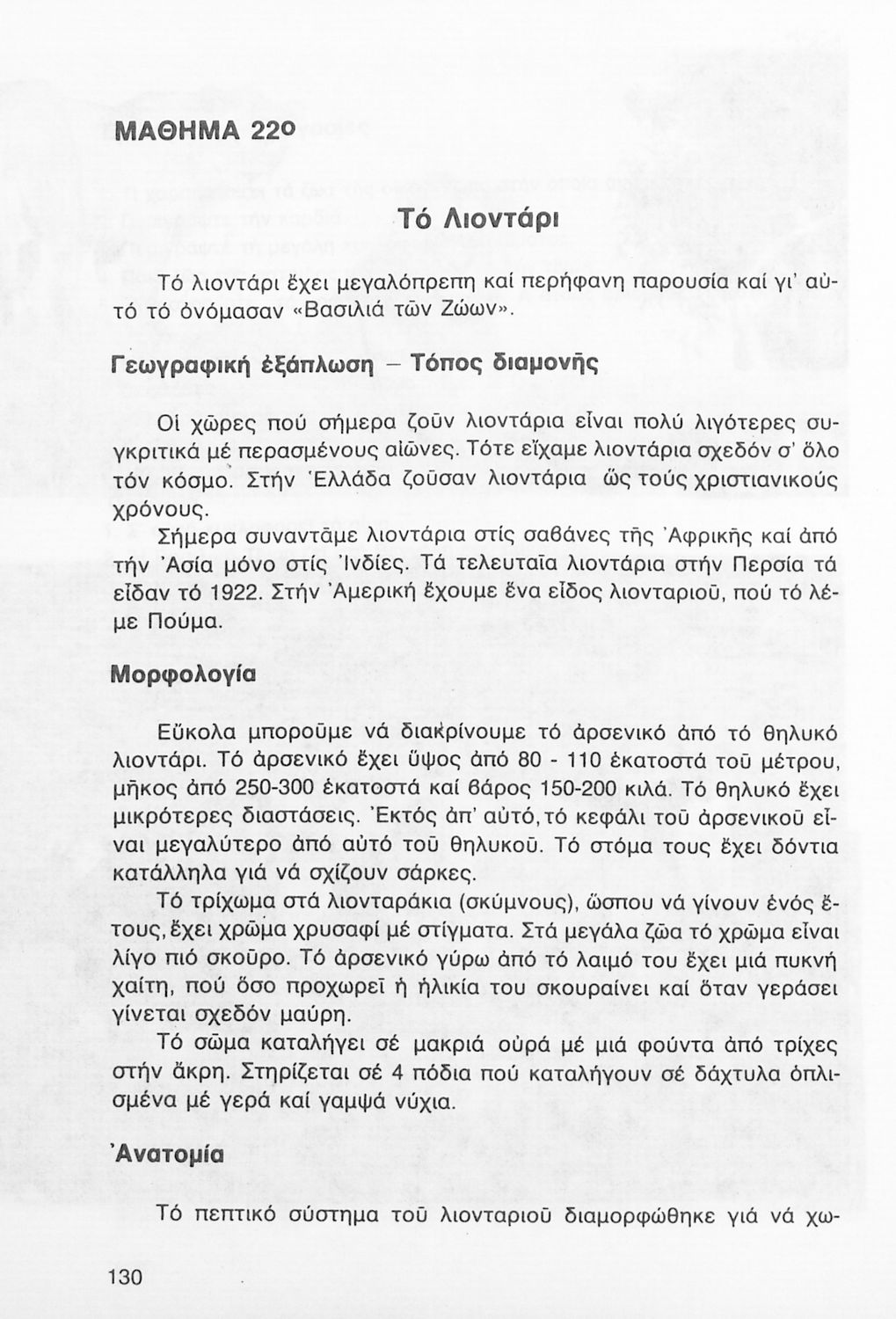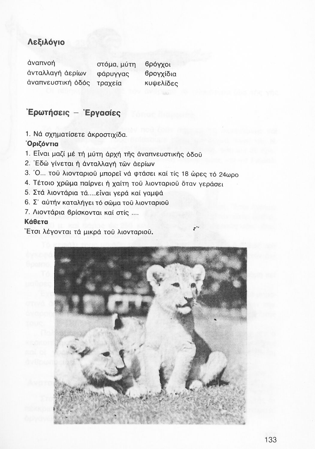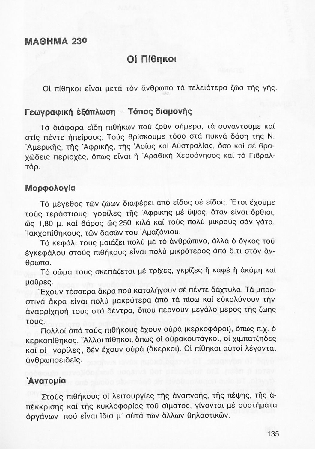520 ## _aΣχολικό εγχειρίδιο της ΣΤ ΄ Δημοτικού της ΣΤ΄ Δημοτικού. Το παρόν σχολικό εγχειρίδιο είναι μια επισκόπηση της Φυτολογίας, Ζωολογίας και της Ανθρωπολογίας. Παρουσιάζει τις διαφορετικές κατηγορίες δέντρων, τα χαρακτηριστικά τους και τη γεωγραφική τους θέση. Το δεύτερο μέρος ασχολείται με τα ζώα, στον τρόπο με τον οποίο αναπαράγονται, στο είδος της τροφής τους και το φυσικό τους περιβάλλον. Τέλος, το βιβλίο εξετάζει τον άνθρωπο αναλύοντας τα μέρη του σώματος, εσωτερικά και εξωτερικά. Τέλος, το βιβλίο κάνει μια σύντομη αναφορά στη μόλυνση και ρύπανση του περιβάλλοντος.