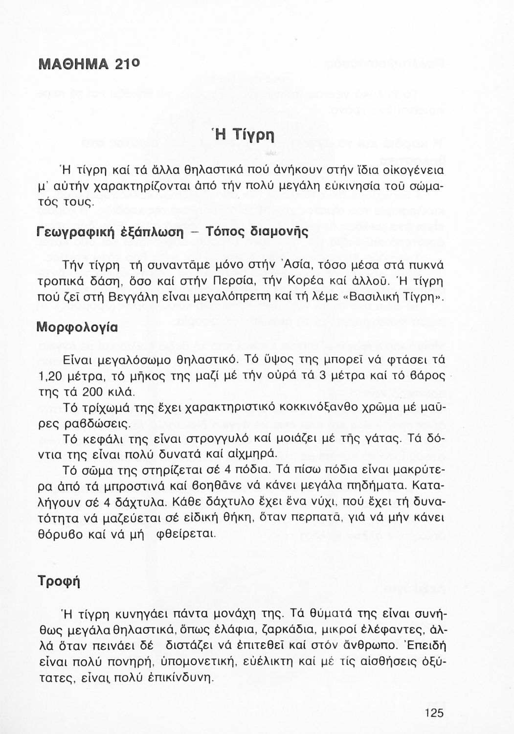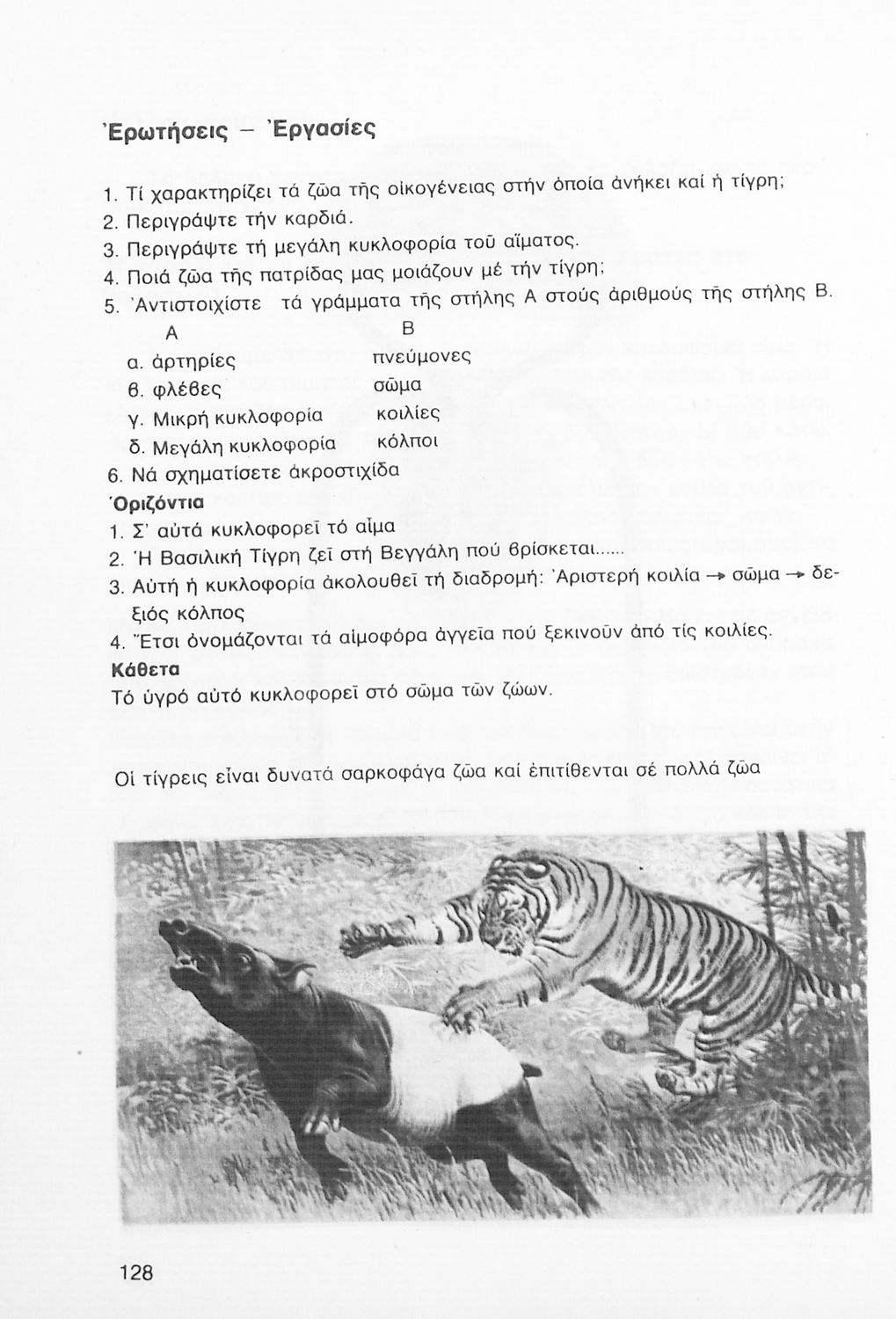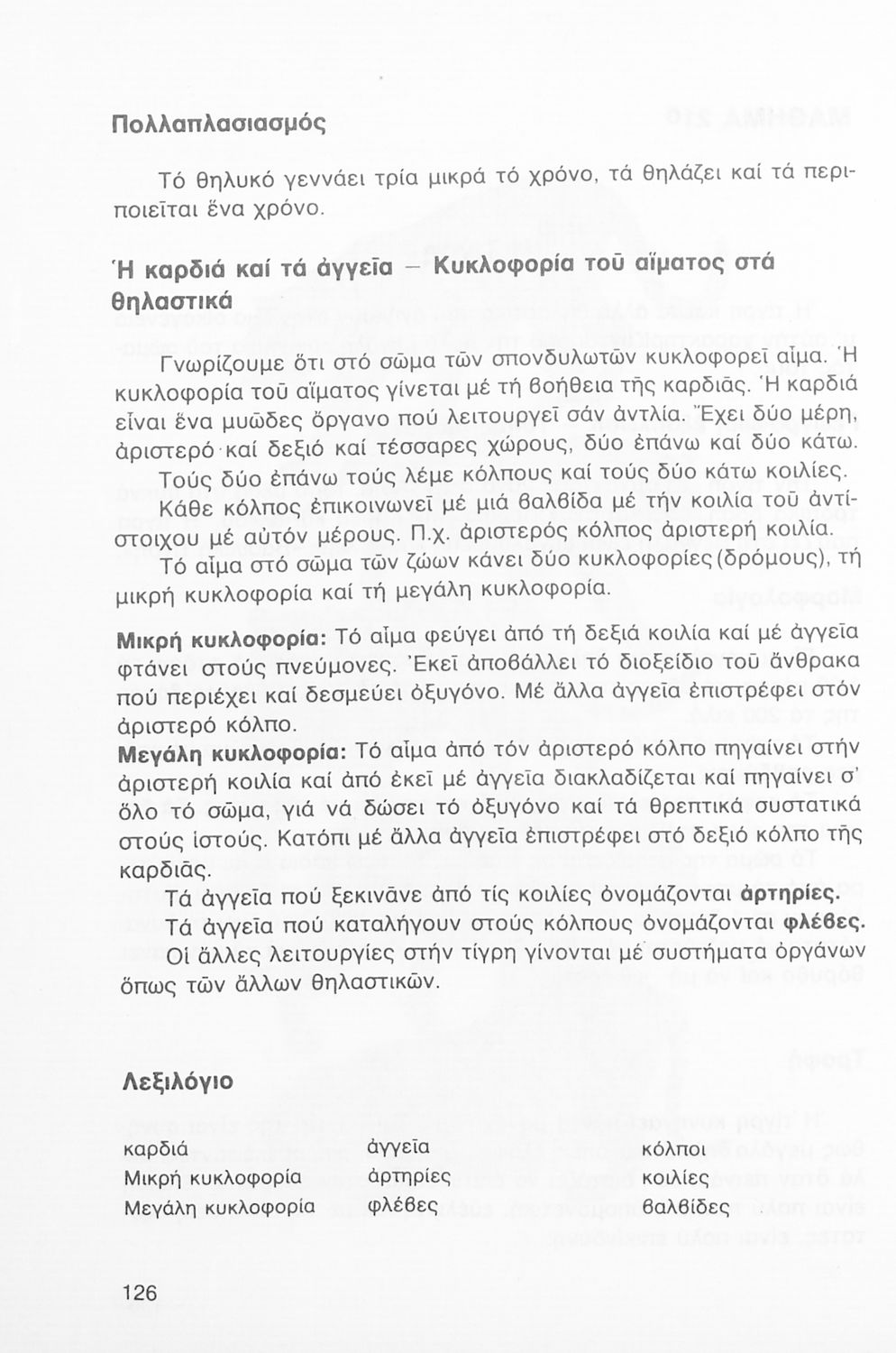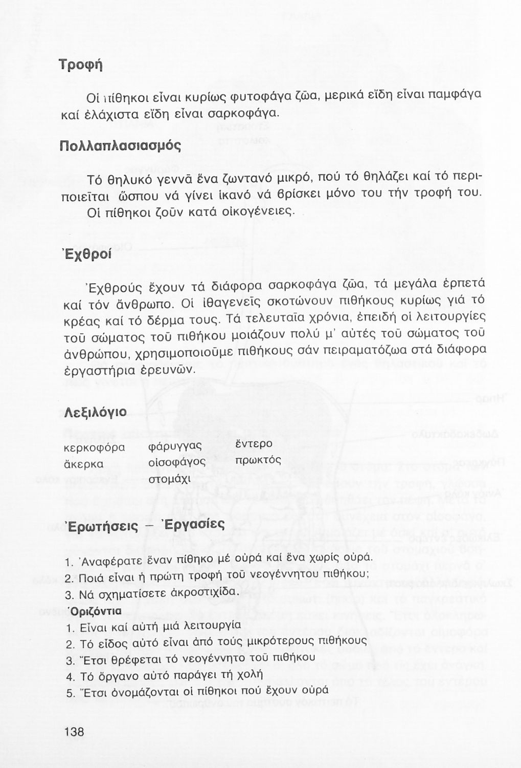520 ## _aΣχολικό εγχειρίδιο της ΣΤ ΄ Δημοτικού της ΣΤ΄ Δημοτικού. Το παρόν σχολικό εγχειρίδιο είναι μια επισκόπηση της Φυτολογίας, Ζωολογίας και της Ανθρωπολογίας. Παρουσιάζει τις διαφορετικές κατηγορίες δέντρων, τα χαρακτηριστικά τους και τη γεωγραφική τους θέση. Το δεύτερο μέρος ασχολείται με τα ζώα, στον τρόπο με τον οποίο αναπαράγονται, στο είδος της τροφής τους και το φυσικό τους περιβάλλον. Τέλος, το βιβλίο εξετάζει τον άνθρωπο αναλύοντας τα μέρη του σώματος, εσωτερικά και εξωτερικά. Τέλος, το βιβλίο κάνει μια σύντομη αναφορά στη μόλυνση και ρύπανση του περιβάλλοντος.