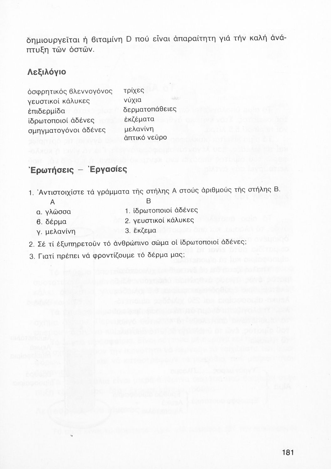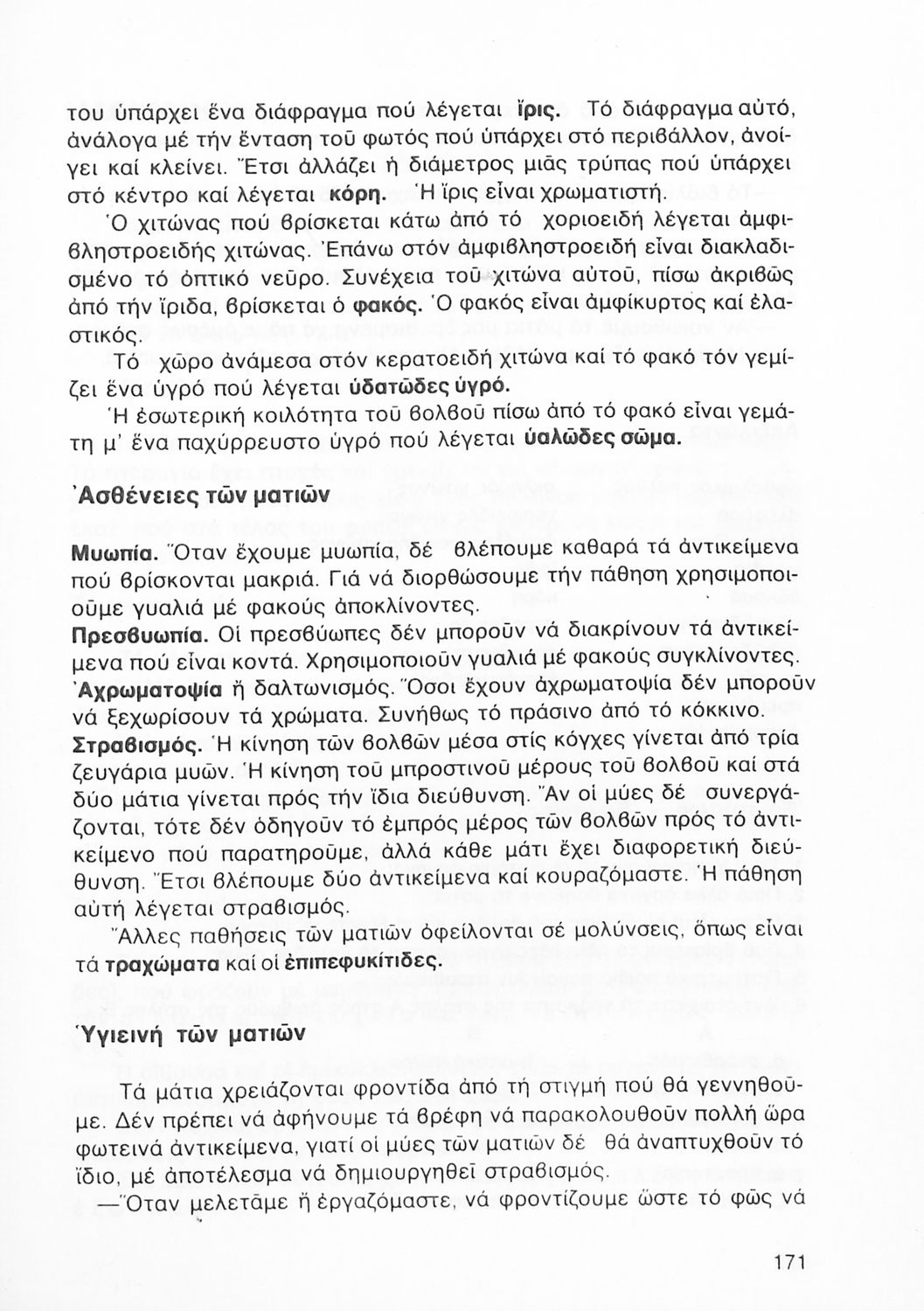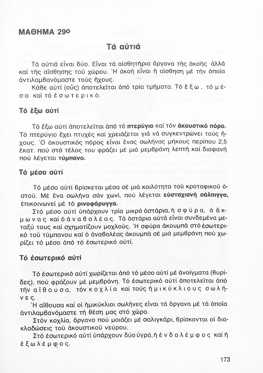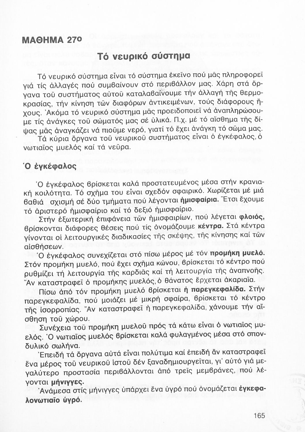 Σχολικό εγχειρίδιο της ΣΤ ΄ Δημοτικού της ΣΤ΄ Δημοτικού. Το παρόν σχολικό εγχειρίδιο είναι μια επισκόπηση της Φυτολογίας, Ζωολογίας και της Ανθρωπολογίας. Παρουσιάζει τις διαφορετικές κατηγορίες δέντρων, τα χαρακτηριστικά τους και τη γεωγραφική τους θέση. Το δεύτερο μέρος ασχολείται με τα ζώα, στον τρόπο με τον οποίο αναπαράγονται, στο είδος της τροφής τους και το φυσικό τους περιβάλλον. Τέλος, το βιβλίο εξετάζει τον άνθρωπο αναλύοντας τα μέρη του σώματος, εσωτερικά και εξωτερικά. Τέλος, το βιβλίο κάνει μια σύντομη αναφορά στη μόλυνση και ρύπανση του περιβάλλοντος.