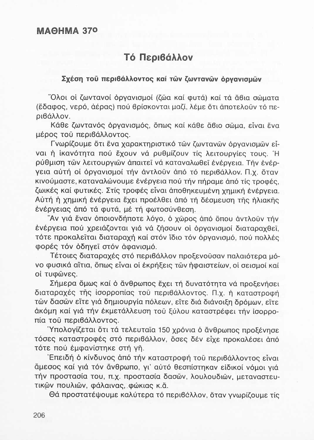 Παρουσίαση περιεχομένου: Σχολικό εγχειρίδιο της ΣΤ ΄ Δημοτικού της ΣΤ΄ Δημοτικού. Το παρόν σχολικό εγχειρίδιο είναι μια επισκόπηση της Φυτολογίας, Ζωολογίας και της Ανθρωπολογίας. Παρουσιάζει τις διαφορετικές κατηγορίες δέντρων, τα χαρακτηριστικά τους και τη γεωγραφική τους θέση. Το δεύτερο μέρος ασχολείται με τα ζώα, στον τρόπο με τον οποίο αναπαράγονται, στο είδος της τροφής τους και το φυσικό τους περιβάλλον. Τέλος, το βιβλίο εξετάζει τον άνθρωπο αναλύοντας τα μέρη του σώματος, εσωτερικά και εξωτερικά. Τέλος, το βιβλίο κάνει μια σύντομη αναφορά στη μόλυνση και ρύπανση του περιβάλλοντος.