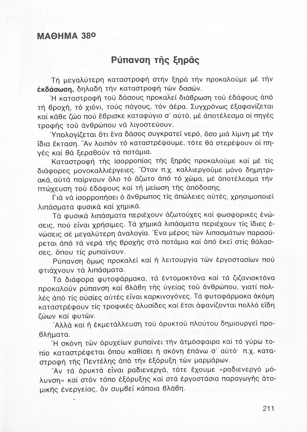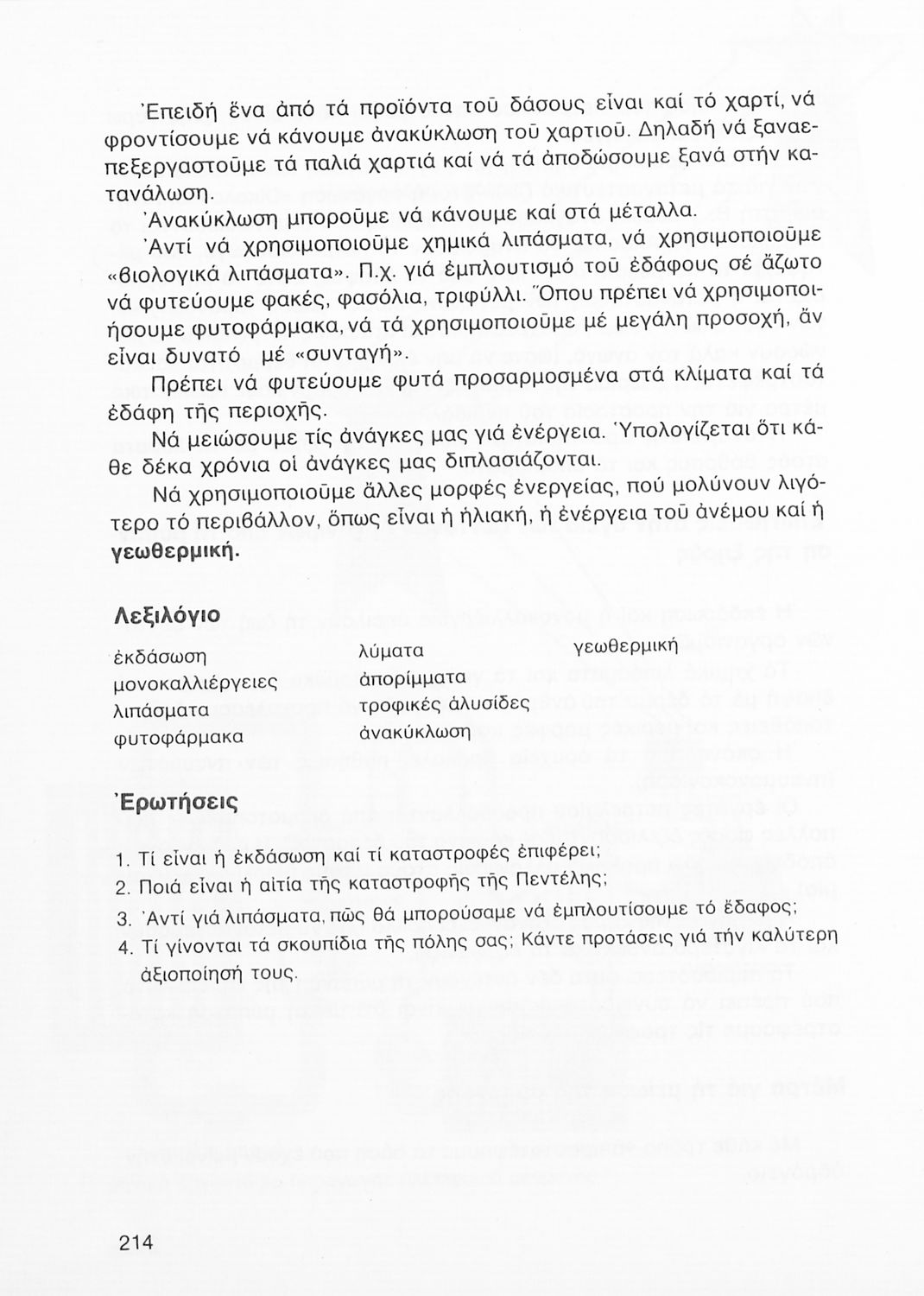 Σχολικό εγχειρίδιο της ΣΤ ΄ Δημοτικού της ΣΤ΄ Δημοτικού. Το παρόν σχολικό εγχειρίδιο είναι μια επισκόπηση της Φυτολογίας, Ζωολογίας και της Ανθρωπολογίας. Παρουσιάζει τις διαφορετικές κατηγορίες δέντρων, τα χαρακτηριστικά τους και τη γεωγραφική τους θέση. Το δεύτερο μέρος ασχολείται με τα ζώα, στον τρόπο με τον οποίο αναπαράγονται, στο είδος της τροφής τους και το φυσικό τους περιβάλλον. Τέλος, το βιβλίο εξετάζει τον άνθρωπο αναλύοντας τα μέρη του σώματος, εσωτερικά και εξωτερικά. Τέλος, το βιβλίο κάνει μια σύντομη αναφορά στη μόλυνση και ρύπανση του περιβάλλοντος.
