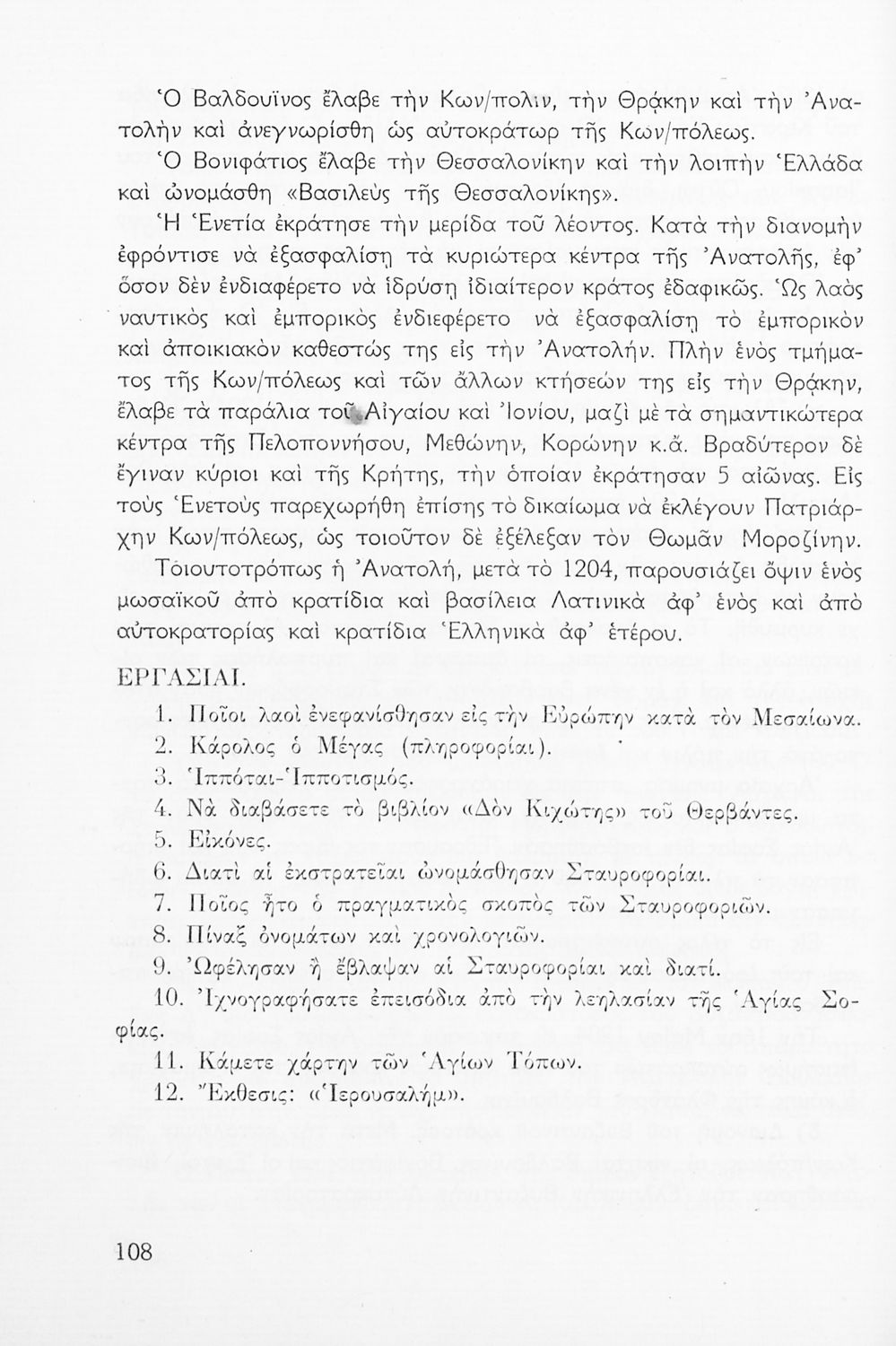 Βαθμίδα εκπαίδευσης: Πρωτοβάθμια Τάξη: Ε' Δημοτικού Μάθημα: Ιστορία Γλώσσα: Καθαρεύουσα Παρουσίαση περιεχομένου: Σχολικό εγχειρίδιο της Ε' Δημοτικό το οποίο περιγράφει την πορεία και την εξέλιξη του ελληνισμού αλλά και του χριστιανισμού μέσα από τους αιώνες ξεκινώντας από την περίοδο της Ρωμαϊκής Αυτοκρατορίας, του Βυζαντίου και καταλήγει στην ίδρυση του πρώτου ελληνικού κράτους, |