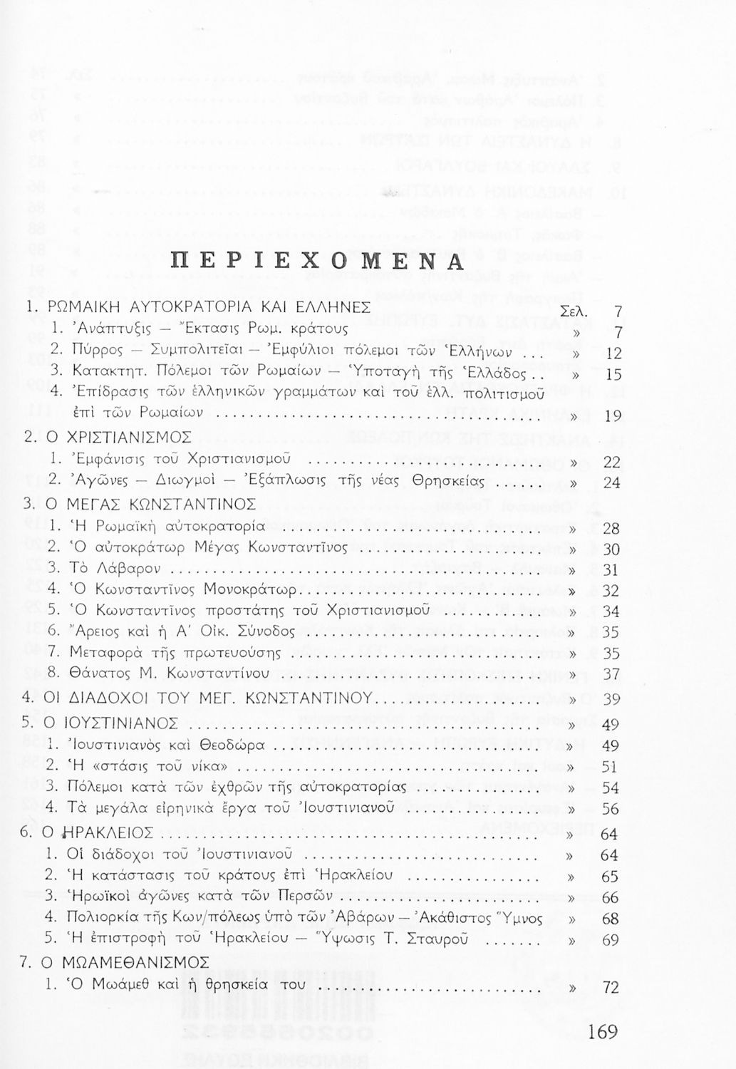 Βαθμίδα εκπαίδευσης: Πρωτοβάθμια Τάξη: Ε' Δημοτικού Μάθημα: Ιστορία Γλώσσα: Καθαρεύουσα Παρουσίαση περιεχομένου: Σχολικό εγχειρίδιο της Ε' Δημοτικό το οποίο περιγράφει την πορεία και την εξέλιξη του ελληνισμού αλλά και του χριστιανισμού μέσα από τους αιώνες ξεκινώντας από την περίοδο της Ρωμαϊκής Αυτοκρατορίας, του Βυζαντίου και καταλήγει στην ίδρυση του πρώτου ελληνικού κράτους, |