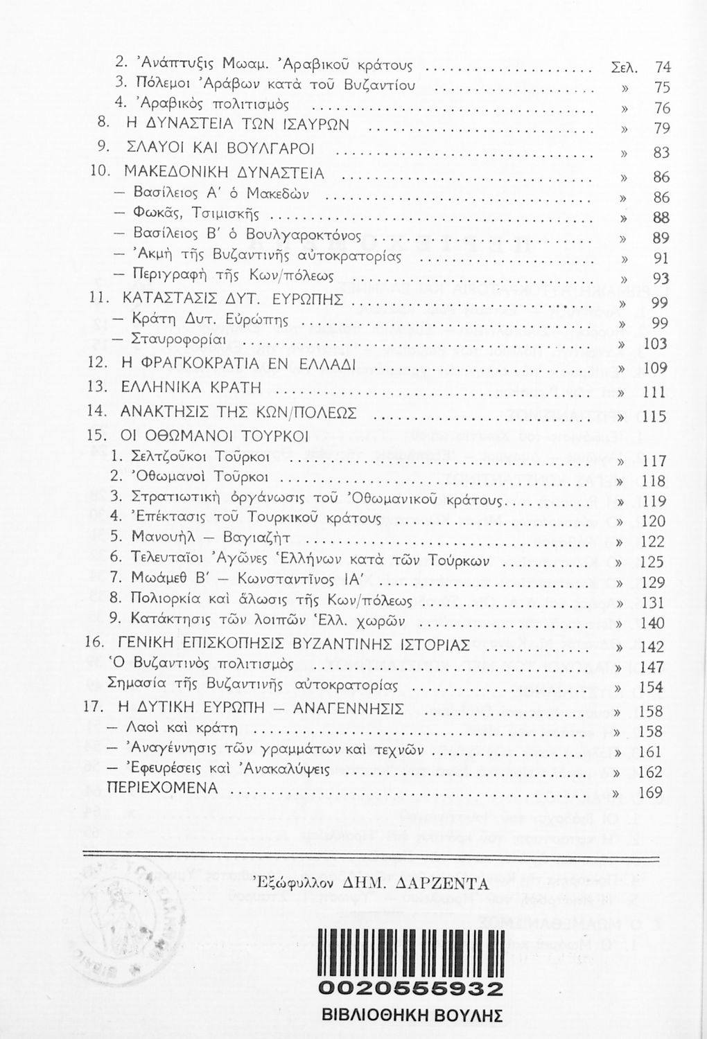 LDR 01603 2200217 4500 035 ## _a03-20555932 040 ## _aΒιβλιοθήκη της Βουλής των Ελλήνων 041 ## _ael 100 ## _aΔημήτρης Κλείδας 110 ## _a20555932 245 0# _aΡωμαϊκή και Βυζαντινή Ιστορία δια την Ε΄ τάξιν των Δημοτικών Σχολείων 250 ## _a1η Έκδοση 260 ## _aΑθήνα _bΟργανισμός Εκδόσεως Διδακτικών Βιβλίων _c1969 300 ## _a172 _bΕικόνες (ασπρόμαυρες), Σκίτσα (ασπρόμαυρα) 520 ## _aΣχολικό εγχειρίδιο της Ε' Δημοτικό το οποίο περιγράφει την πορεία και την εξέλιξη του ελληνισμού αλλά και του χριστιανισμού μέσα από τους αιώνες ξεκινώντας από την περίοδο της Ρωμαϊκής Αυτοκρατορίας, του Βυζαντίου και καταλήγει στην ίδρυση του πρώτου ελληνικού κράτους, 521 ## _aΕ' Δημοτικού 522 ## _aΕλλάδα 546 ## _aΚαθαρεύουσα 563 ## _aΜαλακό Εξώφυλλο 583 ## _a1942/26-7-1969 _c1969 650 #4 _aΒασίλειος ο Βουλγαροκτόνος _aΙουστινιανός _aΜέγας Κωνσταντίνος _aΟθωμανοί Τούρκοι _aΠέρσες _aΡωμαίοι _aΣελτζούκοι Τούρκοι _aΣταυροφορίες _aΧριστιανισμός