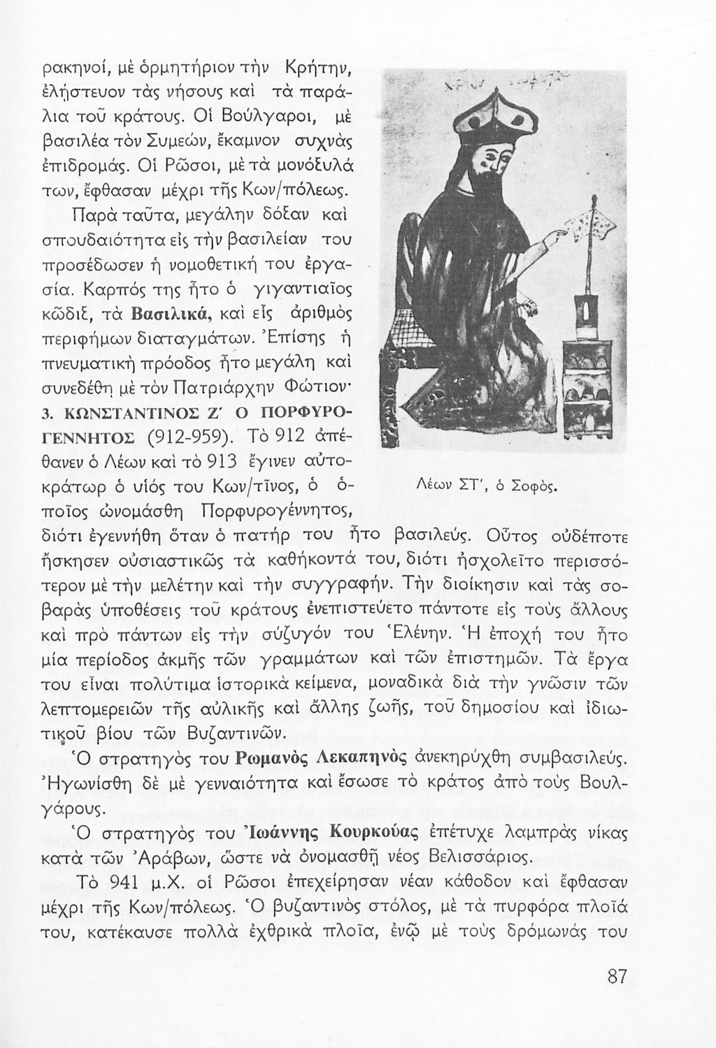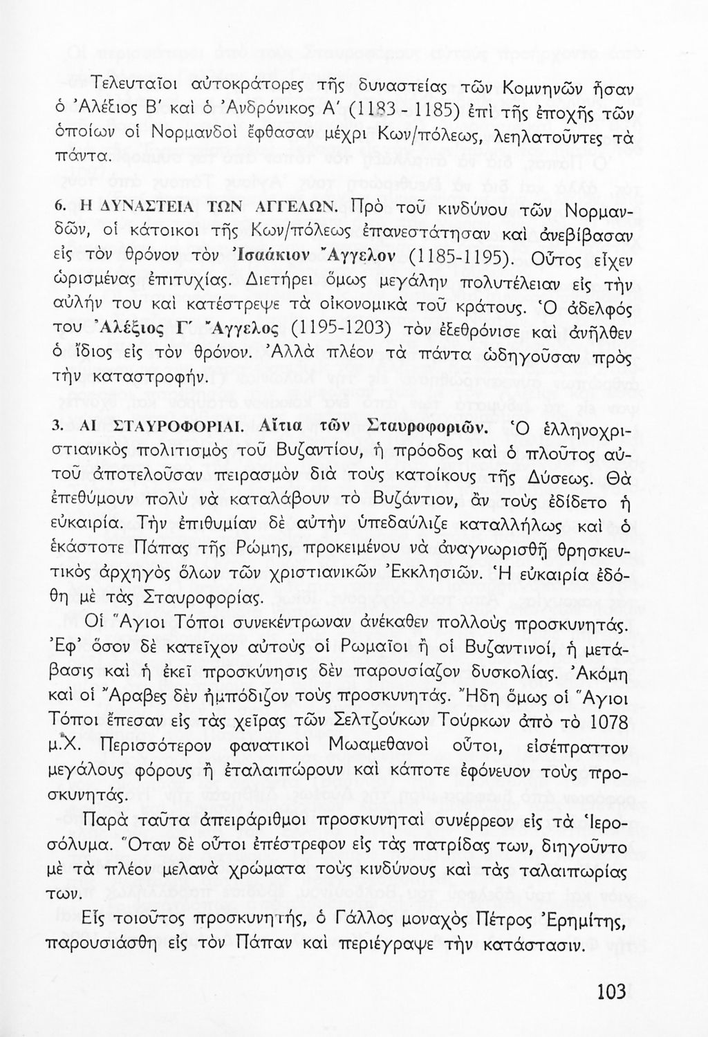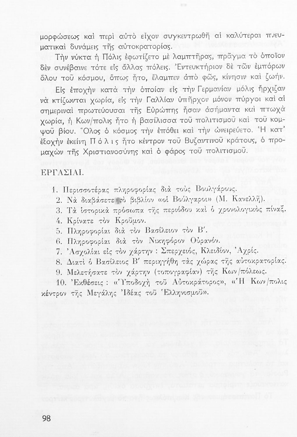Σχολικό εγχειρίδιο για το μάθημα της Ιστορίας στους μαθητές του Δημοτικού. Αναφέρεται στα χρόνια της Βυζαντινής Αυτοκρατορίας μέχρι και την άλωση της Πόλης. Το τελευταίο κεφάλαιο αναφέρεται στα επιτεύγματα της