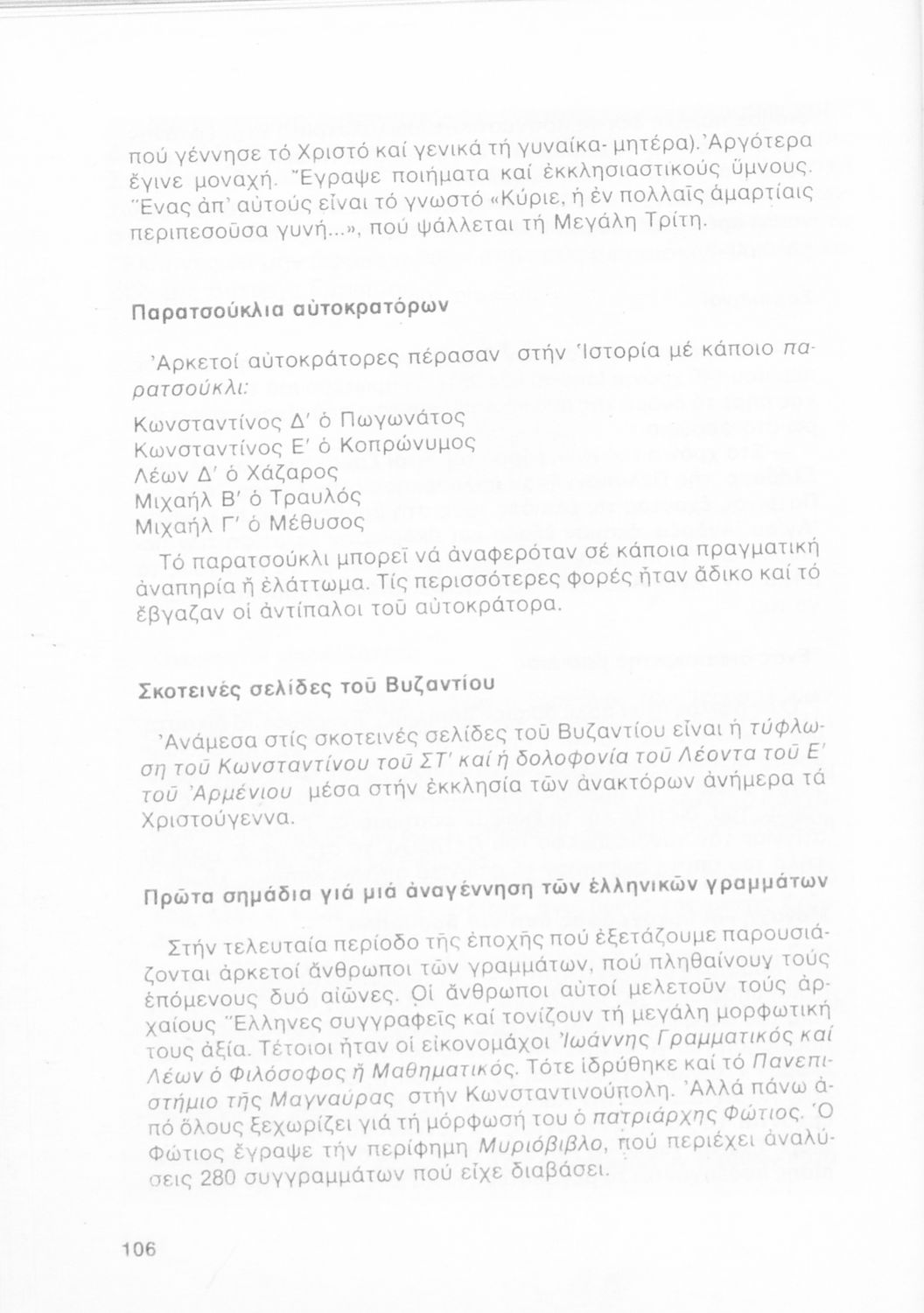Μαθητικό βοήθημα Ιστορίας Δ΄ Δημοτικού που καλύπτει την περίοδο της Ρωμαϊκής και Βυζαντινής Αυτοκρατορίας μέχρι και την άλωση της Κωνσταντινούπολης. Ο συγγραφέας ήταν επιθεωρητής Δημοτικών Σχολείων.