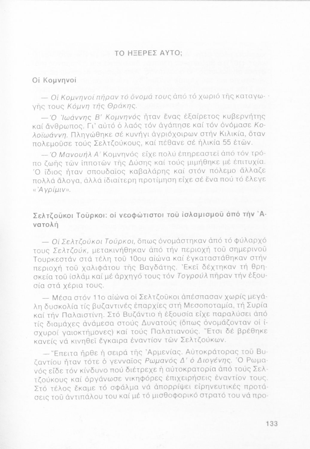 Μαθητικό βοήθημα Ιστορίας Δ΄ Δημοτικού που καλύπτει την περίοδο της Ρωμαϊκής και Βυζαντινής Αυτοκρατορίας μέχρι και την άλωση της Κωνσταντινούπολης. Ο συγγραφέας ήταν επιθεωρητής Δημοτικών Σχολείων.
