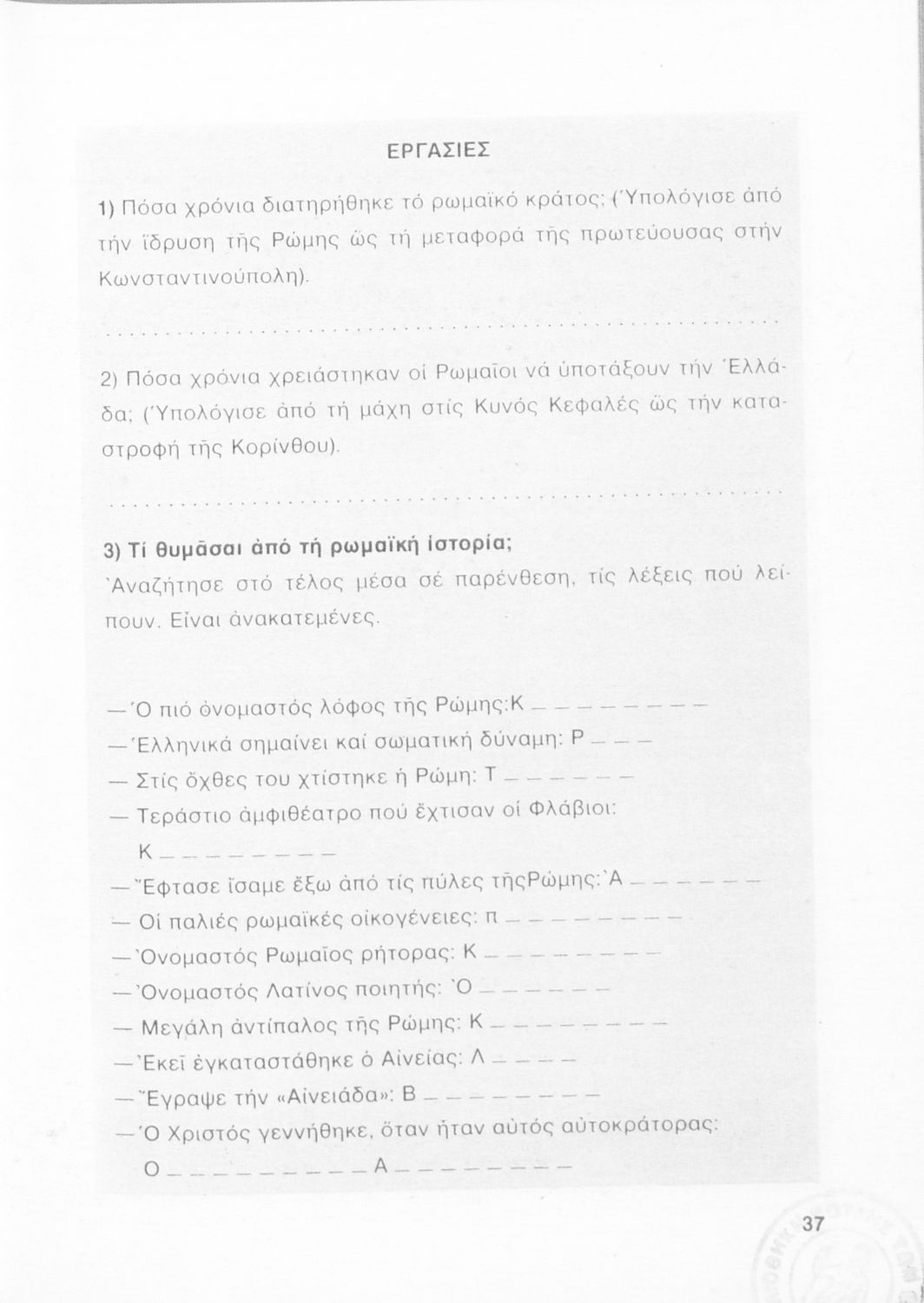 Σχολικό εγχειρίδιο Ιστορίας της Ε΄ Δημοτικού το οποίο παρουσιάζει την εξέλιξη του ελληνισμού και του χριστιανισμού από την περίοδο της Ρωμαϊκής αυτοκρατορίας μέχρι και την άλωση της Κωνσταντινούπολης.