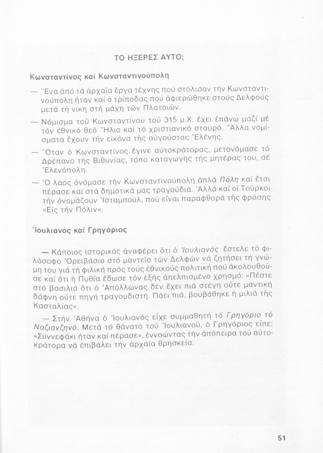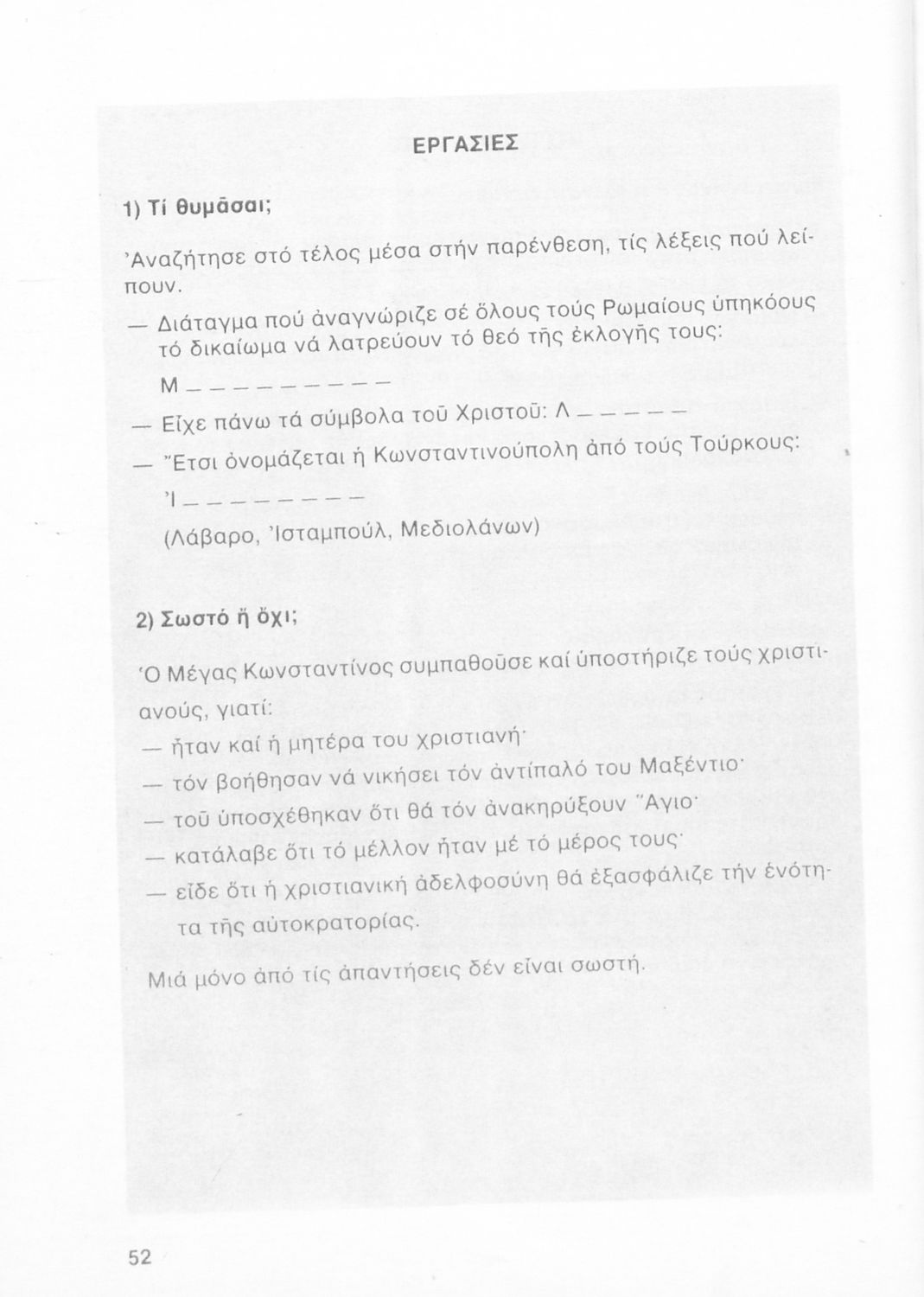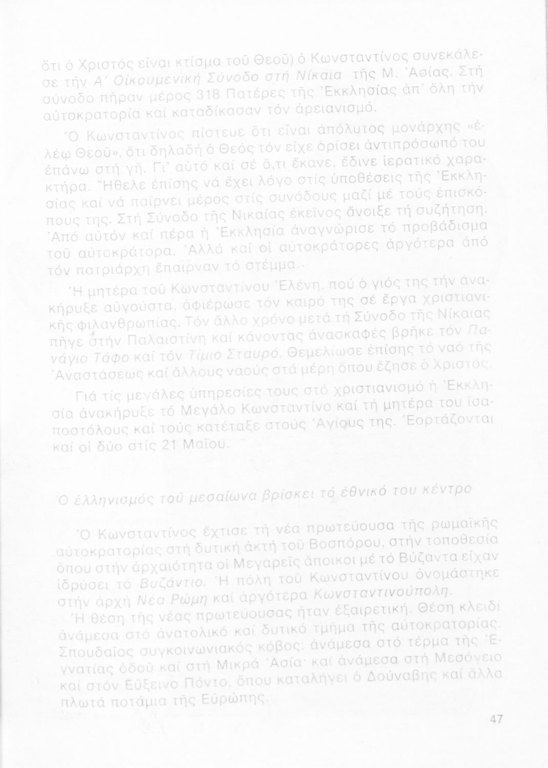 Σχολικό εγχειρίδιο Ιστορίας της Ε΄ Δημοτικού το οποίο παρουσιάζει την εξέλιξη του ελληνισμού και του χριστιανισμού από την περίοδο της Ρωμαϊκής αυτοκρατορίας μέχρι και την άλωση της Κωνσταντινούπολης.