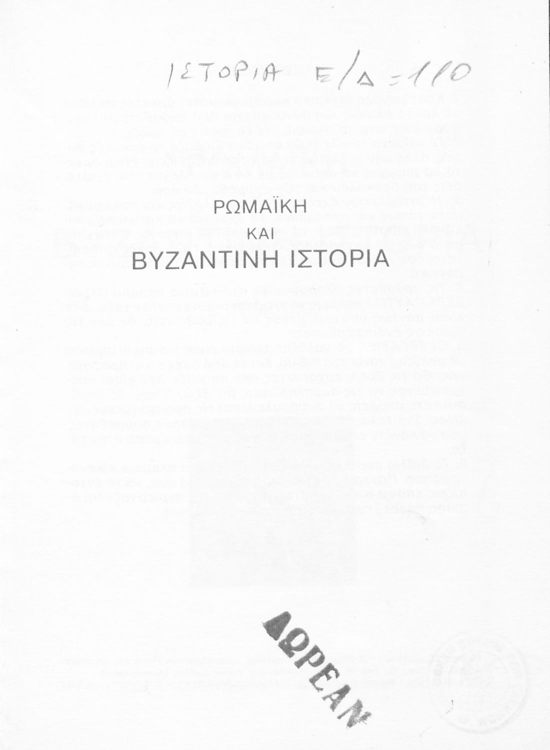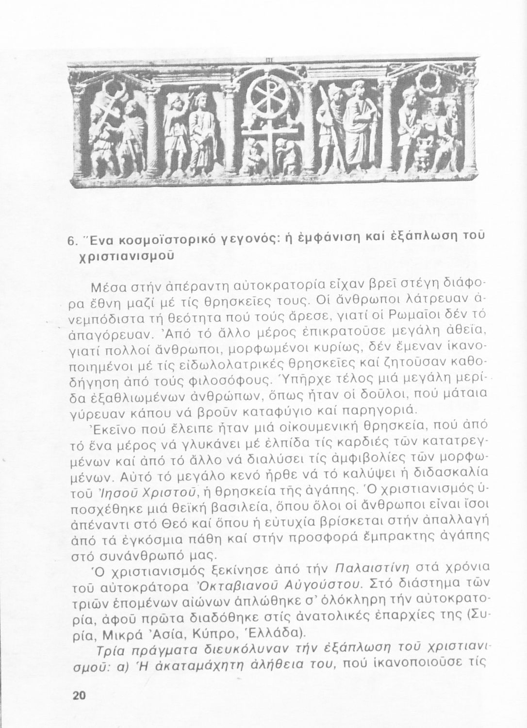 Σχολικό εγχειρίδιο Ιστορίας της Ε΄ Δημοτικού το οποίο παρουσιάζει την εξέλιξη του ελληνισμού και του χριστιανισμού από την περίοδο της Ρωμαϊκής αυτοκρατορίας μέχρι και την άλωση της Κωνσταντινούπολης.