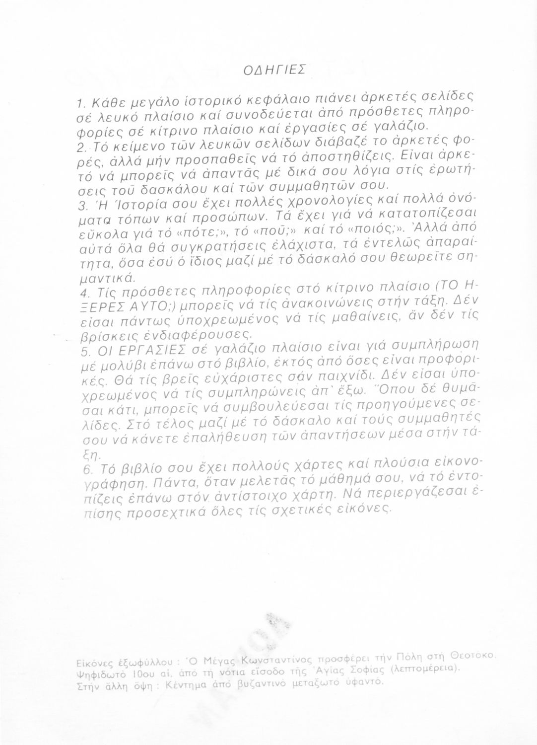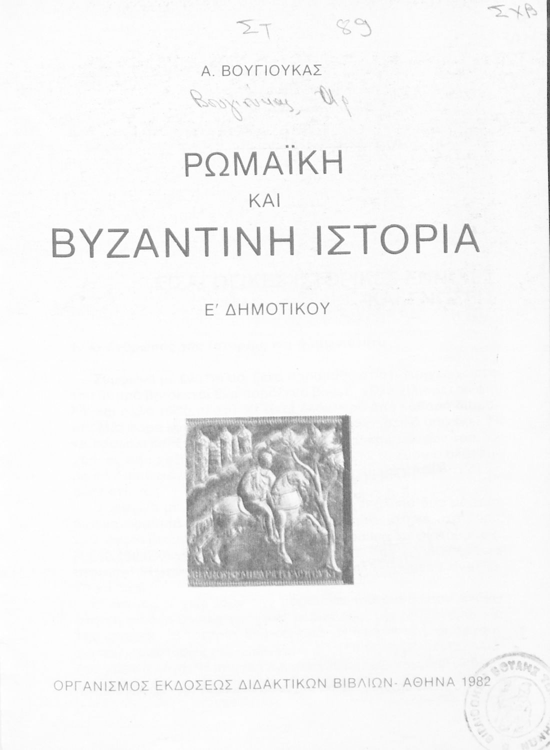Βαθμίδα εκπαίδευσης: Πρωτοβάθμια Τάξη: Ε' Δημοτικού Μάθημα: Ιστορία Γλώσσα: Δημοτική Παρουσίαση περιεχομένου: Σχολικό εγχειρίδιο Ιστορίας της Ε΄ Δημοτικού το οποίο παρουσιάζει την εξέλιξη του ελληνισμού και του χριστιανισμού από την περίοδο της Ρωμαϊκής αυτοκρατορίας μέχρι και την άλωση της Κωνσταντινούπολης. |