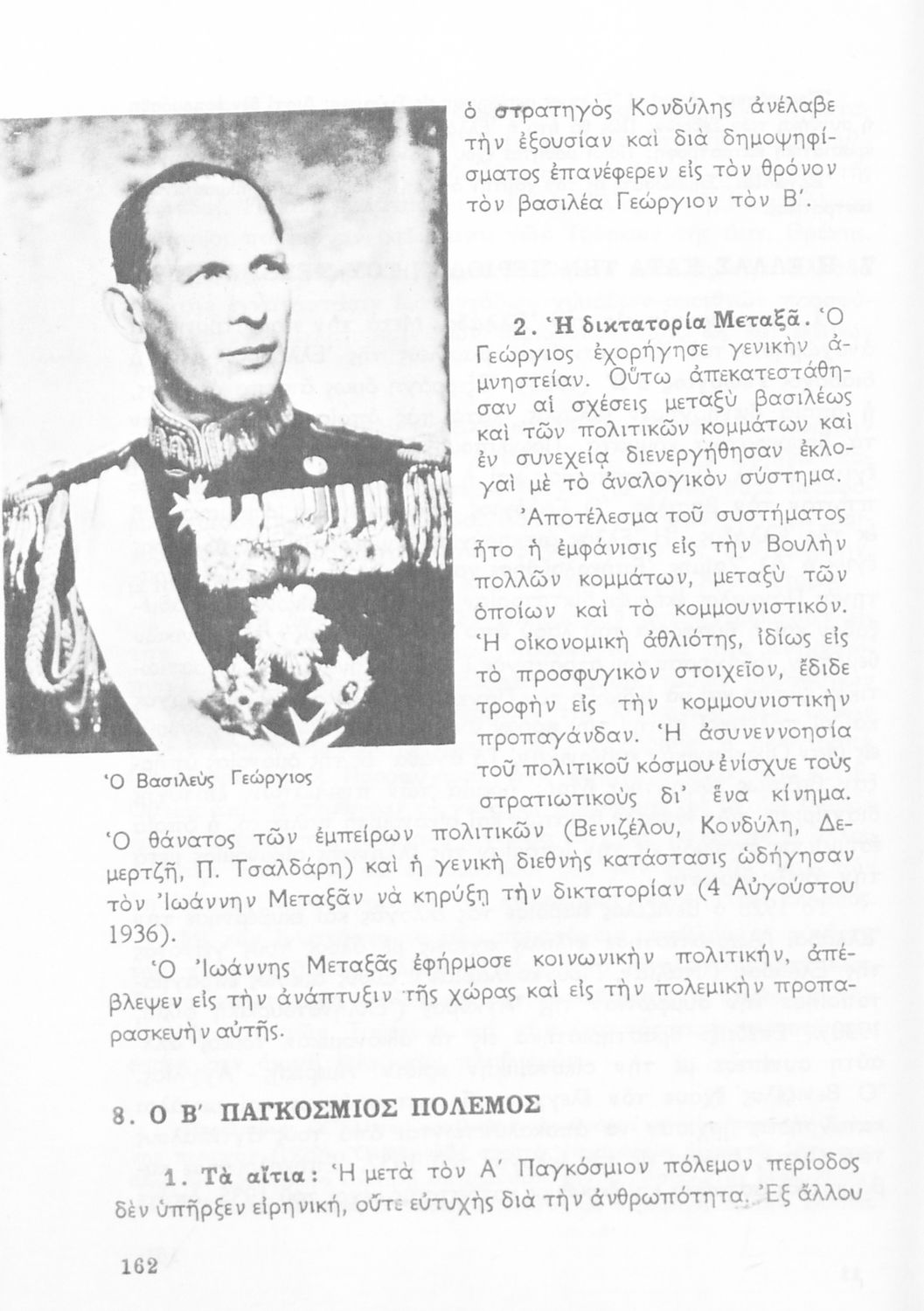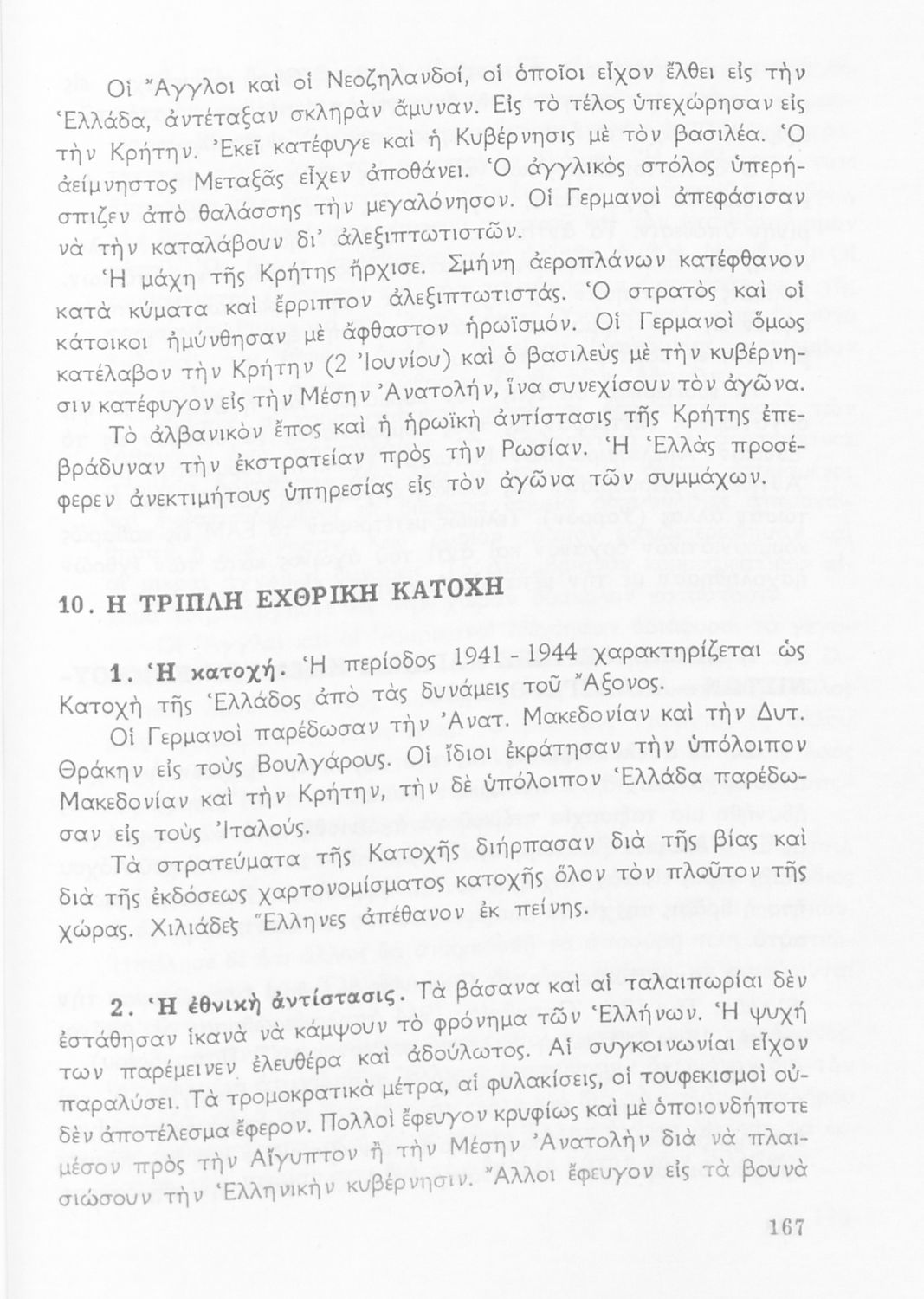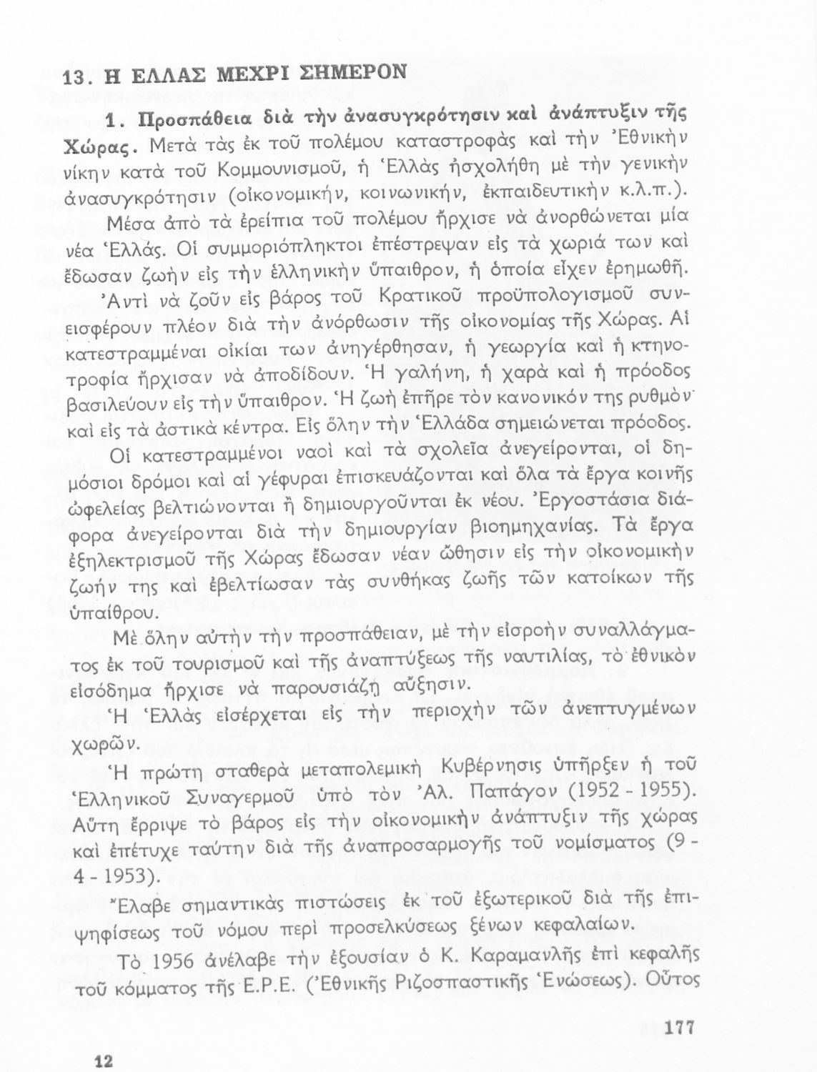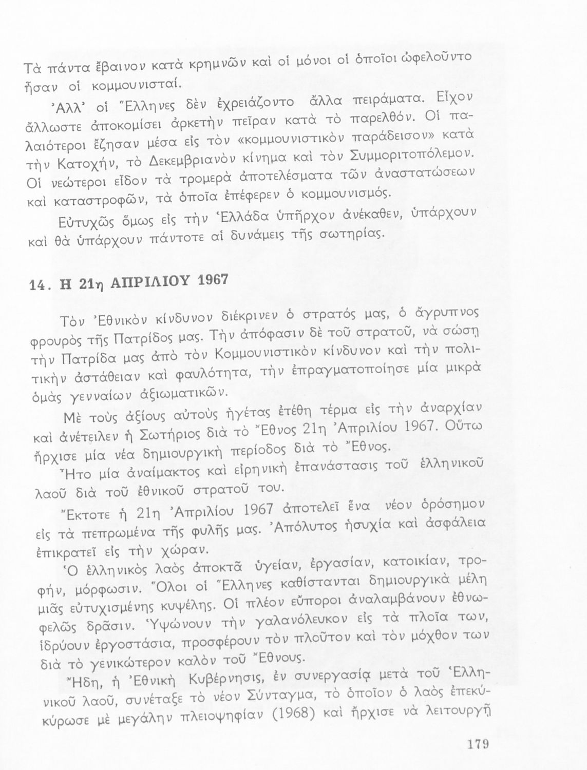 Σχολικό εγχειρίδιο Ιστορίας της ΣΤ΄ Δημοτικού που καλύπτει την περίοδο από την άλωση της Κωνσταντινούπολης μέχρι την δικτατορία των συνταγματαρχών. Υιοθετεί τον λόγο της χούντας και προβάλει τον εθνοσωτήριο χαρακτήρα και τα οικονομικά της επιτεύγματα. Φέρει το σύμβολο της δικτατορίας.
