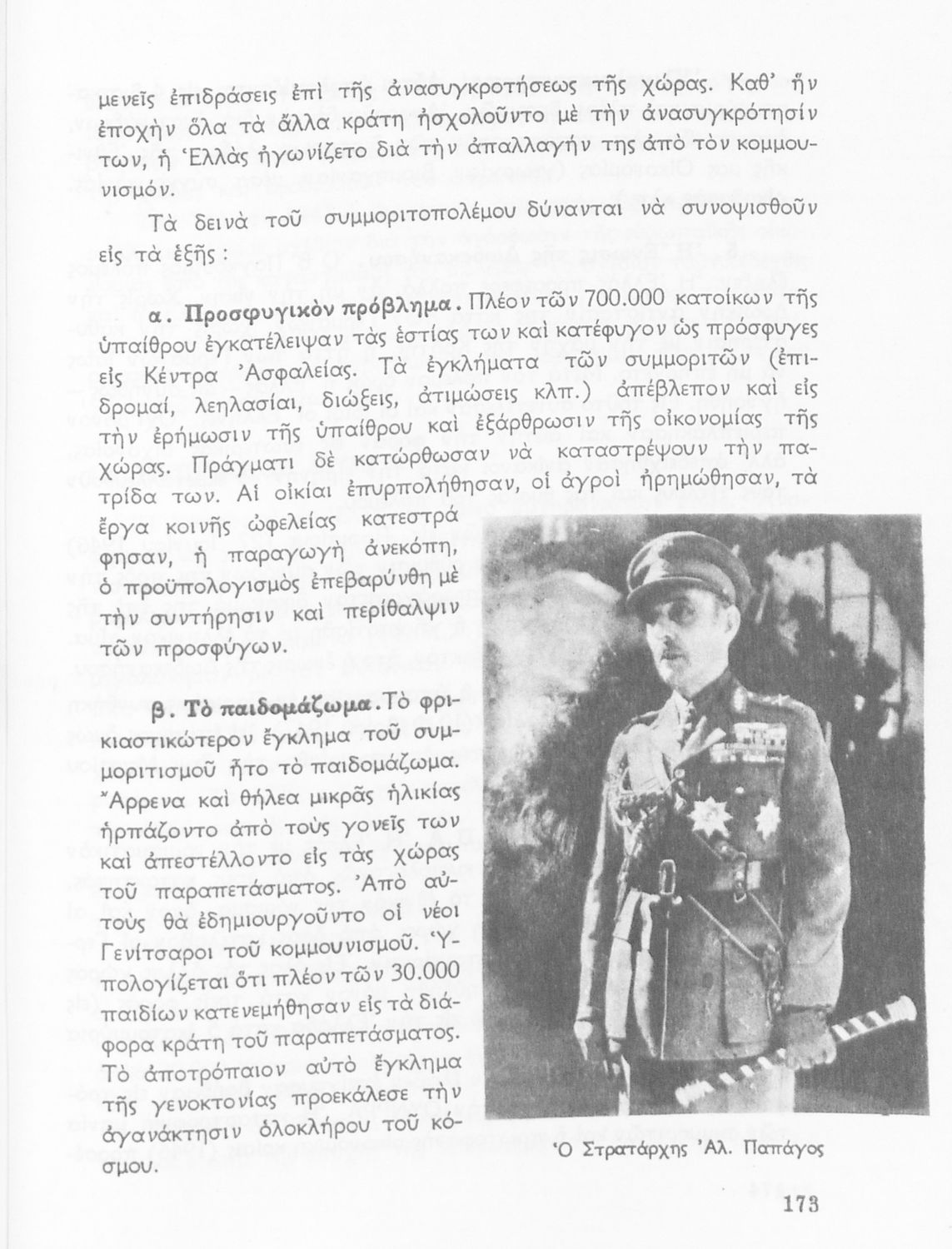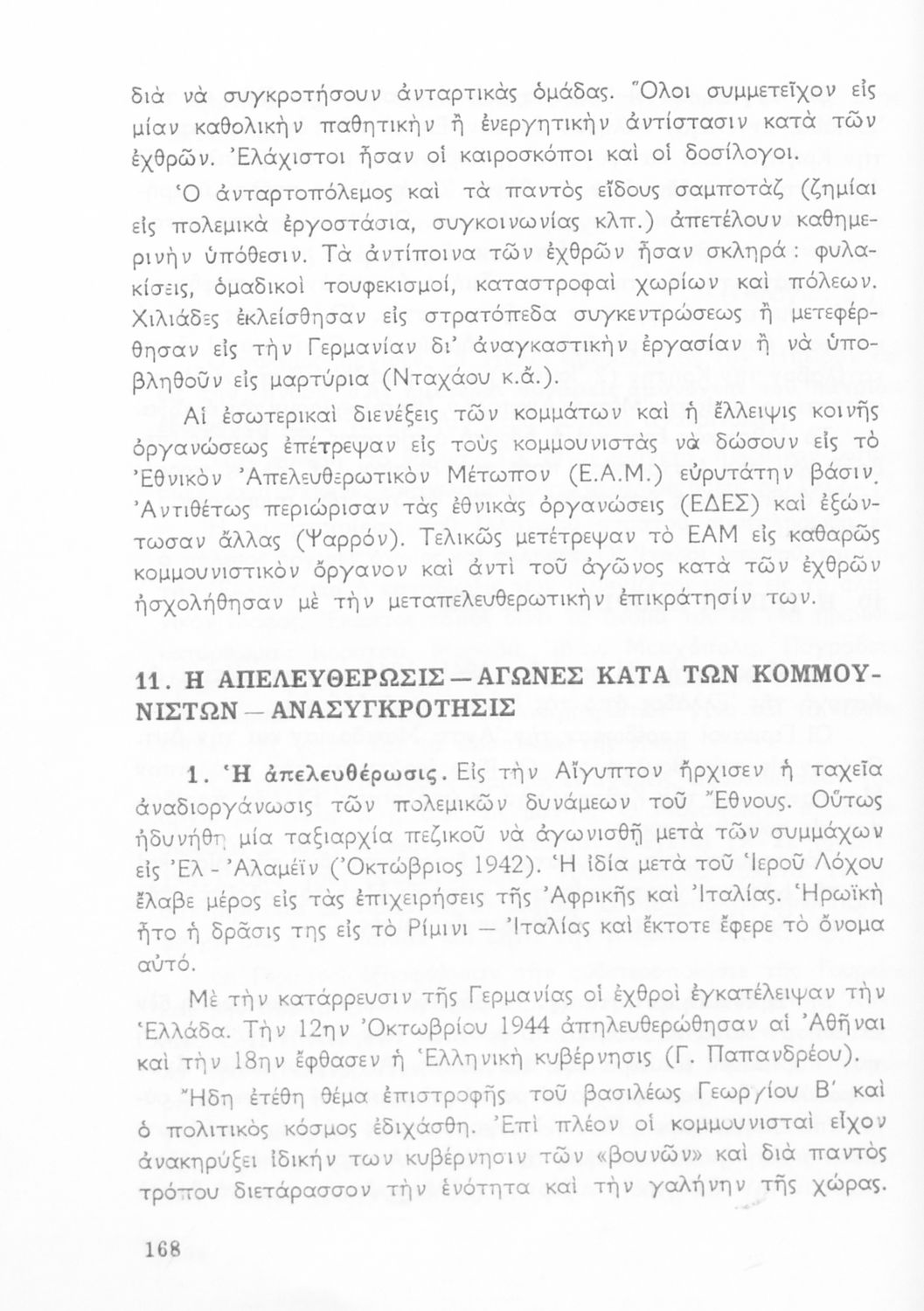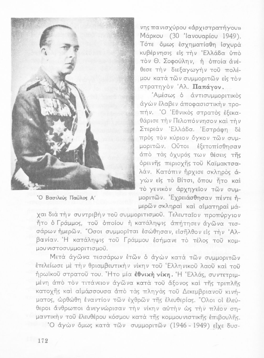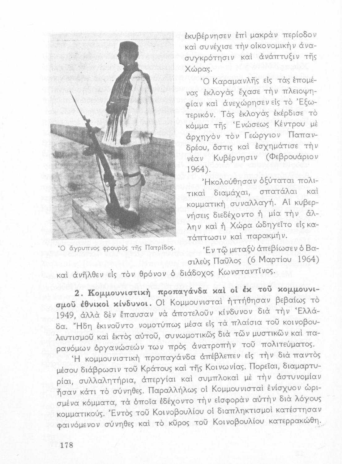Σχολικό εγχειρίδιο Ιστορίας της ΣΤ΄ Δημοτικού που καλύπτει την περίοδο από την άλωση της Κωνσταντινούπολης μέχρι την δικτατορία των συνταγματαρχών. Υιοθετεί τον λόγο της χούντας και προβάλει τον εθνοσωτήριο χαρακτήρα και τα οικονομικά της επιτεύγματα. Φέρει το σύμβολο της δικτατορίας.