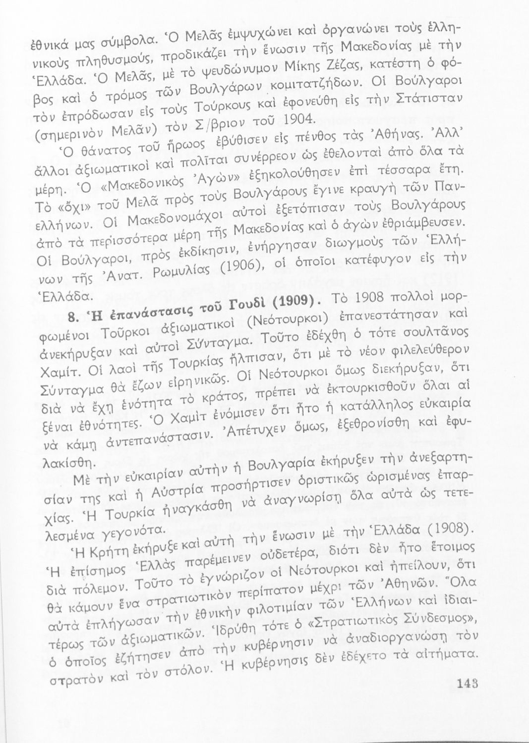 Σχολικό εγχειρίδιο Ιστορίας της ΣΤ΄ Δημοτικού που καλύπτει την περίοδο από την άλωση της Κωνσταντινούπολης μέχρι την δικτατορία των συνταγματαρχών. Υιοθετεί τον λόγο της χούντας και προβάλει τον εθνοσωτήριο χαρακτήρα και τα οικονομικά της επιτεύγματα. Φέρει το σύμβολο της δικτατορίας.