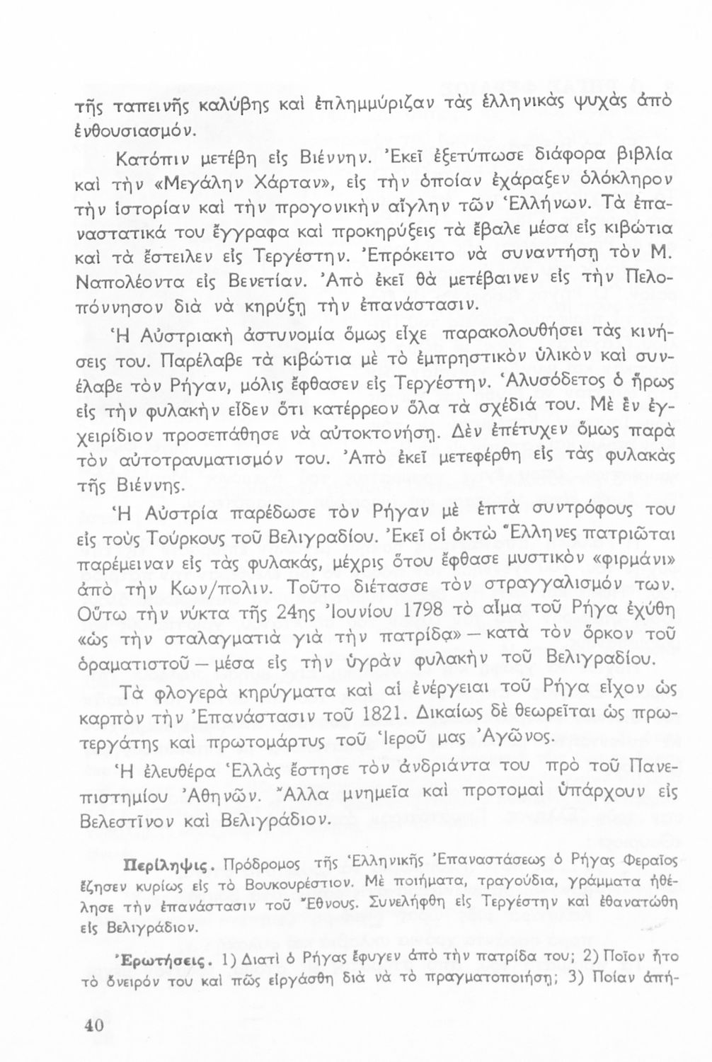 LDR 01670 2200217 4500 035 ## _a03-20555946 040 ## _aΒιβλιοθήκη της Βουλής των Ελλήνων 041 ## _ael 100 ## _aΚ. Σακκαδάκης 110 ## _a20555946 245 0# _aΕλληνική Ιστορία των νεότερων χρόνων δια την ΣΤ΄ τάξιν των Δημοτικών Σχολείων 250 ## _a5η Έκδοση 260 ## _aΑθήνα _bΟργανισμός Εκδόσεως Διδακτικών Βιβλίων _c1973 300 ## _a184 _bΕικόνες (ασπρόμαυρες), Σκίτσα (ασπρόμαυρα) 520 ## _aΣχολικό εγχειρίδιο Ιστορίας της ΣΤ΄ Δημοτικού που καλύπτει την περίοδο από την άλωση της Κωνσταντινούπολης μέχρι την δικτατορία των συνταγματαρχών. Υιοθετεί τον λόγο της χούντας και προβάλει τον εθνοσωτήριο χαρακτήρα και τα οικονομικά της επιτεύγματα. Φέρει το σύμβολο της δικτατορίας. 521 ## _aΣΤ' Δημοτικού 522 ## _aΕλλάδα 546 ## _aΑπλή καθαρεύουσα 563 ## _aΜαλακό Εξώφυλλο 583 ## _a2309/12-2-1973 _c1973 650 #4 _a21 Απριλίου _aΑ' Παγκόσμιος _aΑντικομμουνισμός _aΒ' Παγκόσμιος Πόλεμος _aΓεώργιος Α' _aΕλληνική Επανάσταση _aΜικρασιατική Εκστρατεία _aΡήγας Φεραίος _aΦιλελληνισμός