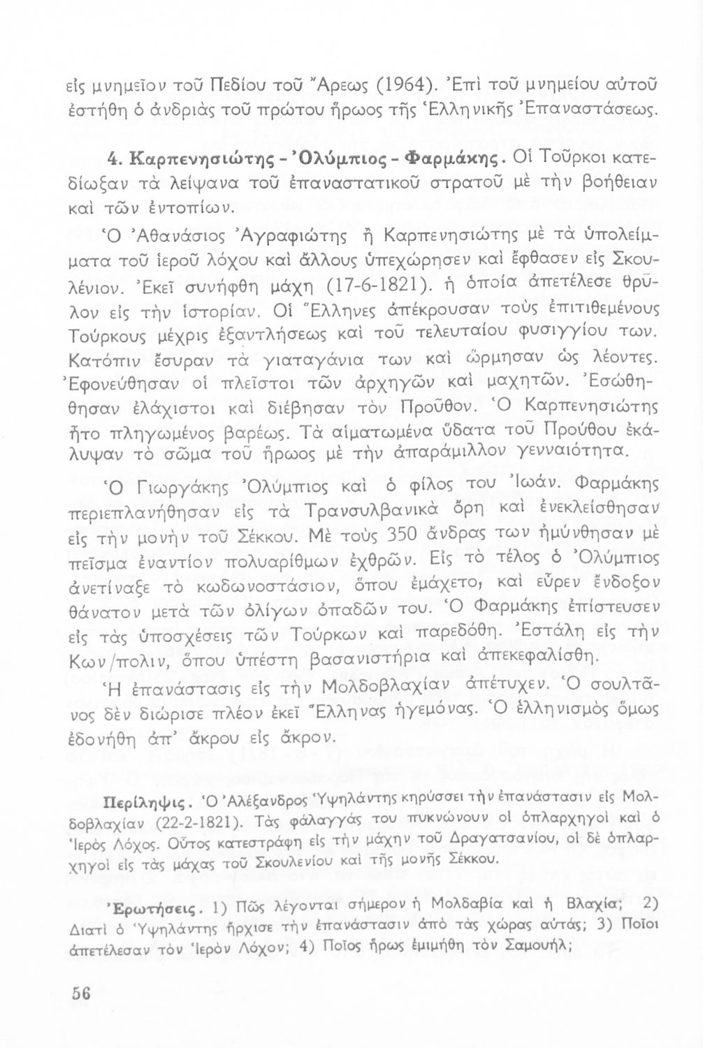 Βαθμίδα εκπαίδευσης: Πρωτοβάθμια Τάξη: ΣΤ' Δημοτικού Μάθημα: Ιστορία Γλώσσα: Απλή καθαρεύουσα Παρουσίαση περιεχομένου: Σχολικό εγχειρίδιο Ιστορίας της ΣΤ΄ Δημοτικού που καλύπτει την περίοδο από την άλωση της Κωνσταντινούπολης μέχρι την δικτατορία των συνταγματαρχών. Υιοθετεί τον λόγο της χούντας και προβάλει τον εθνοσωτήριο χαρακτήρα και τα οικονομικά της επιτεύγματα. Φέρει το σύμβολο της δικτατορίας. |