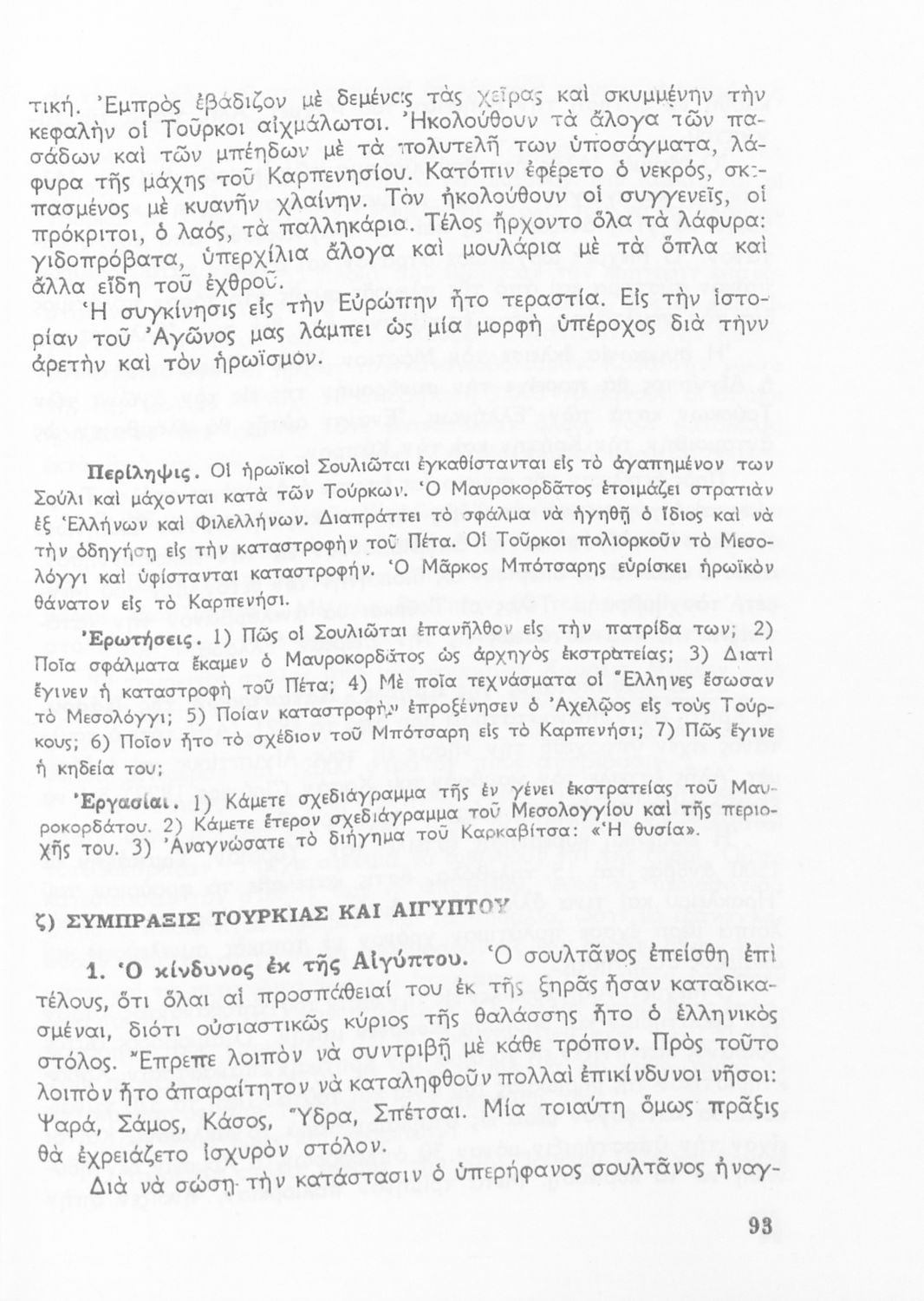 Βαθμίδα εκπαίδευσης: Πρωτοβάθμια Τάξη: ΣΤ' Δημοτικού Μάθημα: Ιστορία Γλώσσα: Απλή καθαρεύουσα Παρουσίαση περιεχομένου: Σχολικό εγχειρίδιο Ιστορίας της ΣΤ΄ Δημοτικού που καλύπτει την περίοδο από την άλωση της Κωνσταντινούπολης μέχρι την δικτατορία των συνταγματαρχών. Υιοθετεί τον λόγο της χούντας και προβάλει τον εθνοσωτήριο χαρακτήρα και τα οικονομικά της επιτεύγματα. Φέρει το σύμβολο της δικτατορίας. |