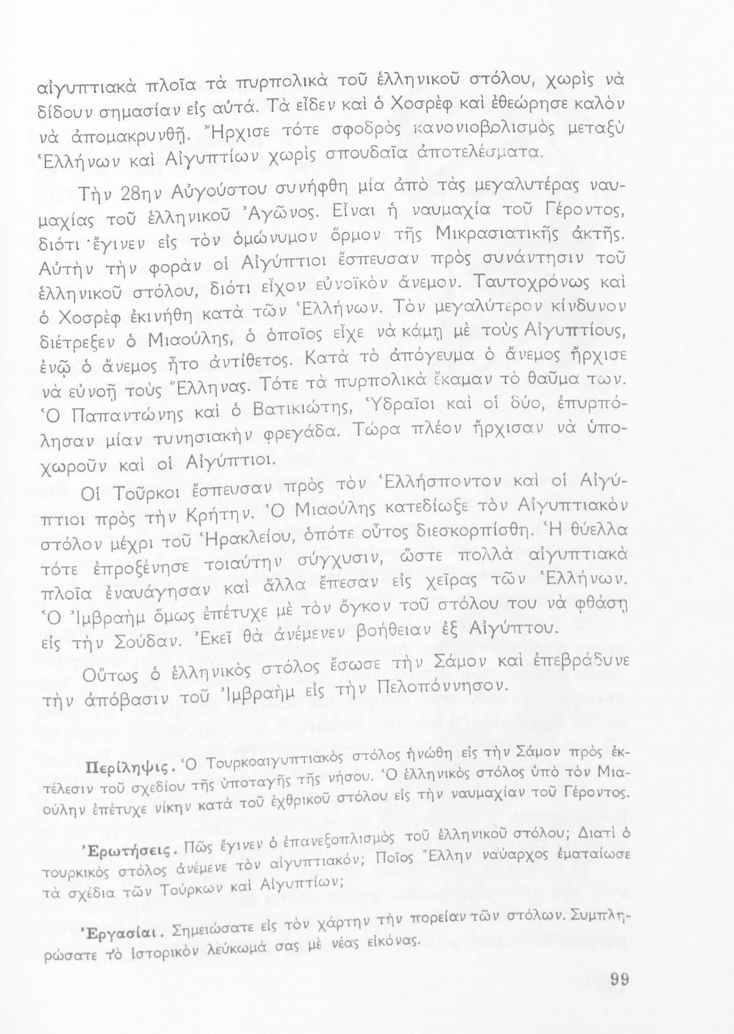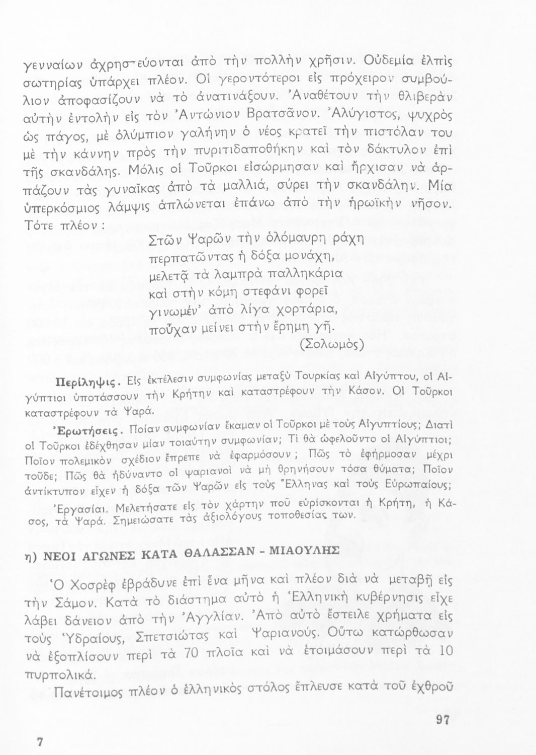 Σχολικό εγχειρίδιο Ιστορίας της ΣΤ΄ Δημοτικού που καλύπτει την περίοδο από την άλωση της Κωνσταντινούπολης μέχρι την δικτατορία των συνταγματαρχών. Υιοθετεί τον λόγο της χούντας και προβάλει τον εθνοσωτήριο χαρακτήρα και τα οικονομικά της επιτεύγματα. Φέρει το σύμβολο της δικτατορίας.