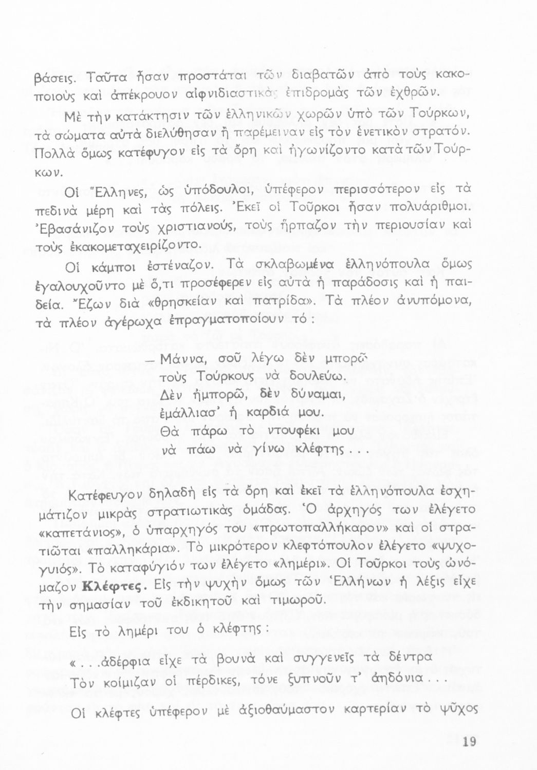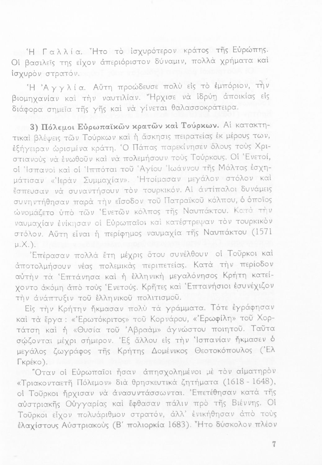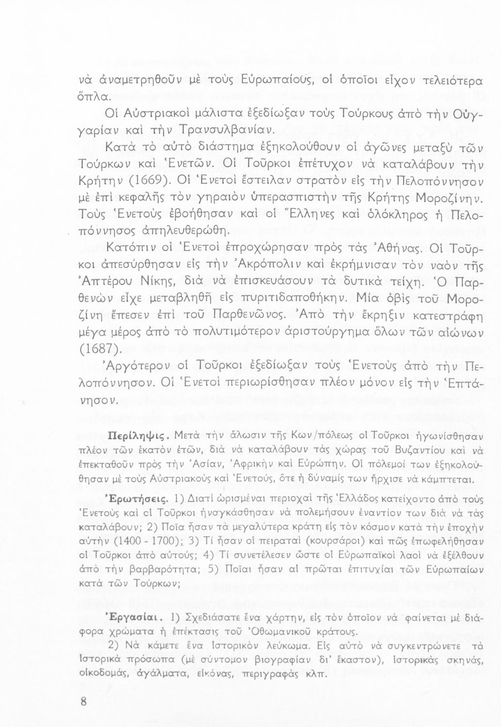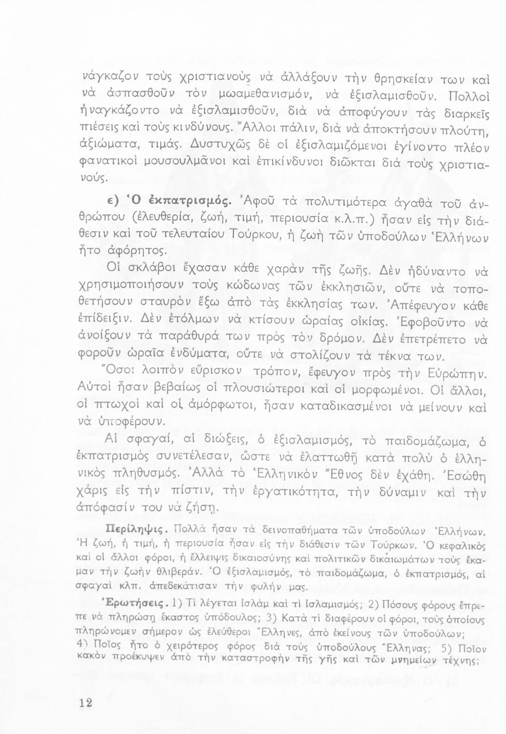 Σχολικό εγχειρίδιο Ιστορίας της ΣΤ΄ Δημοτικού που καλύπτει την περίοδο από την άλωση της Κωνσταντινούπολης μέχρι την δικτατορία των συνταγματαρχών. Υιοθετεί τον λόγο της χούντας και προβάλει τον εθνοσωτήριο χαρακτήρα και τα οικονομικά της επιτεύγματα. Φέρει το σύμβολο της δικτατορίας.