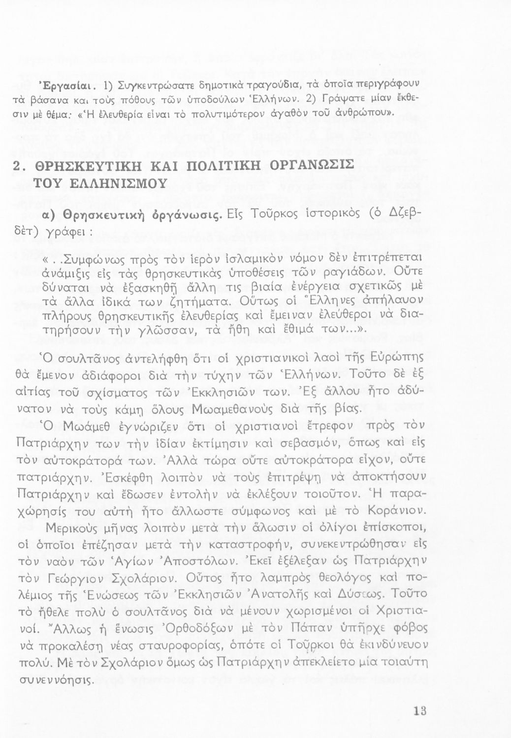 Βαθμίδα εκπαίδευσης: Πρωτοβάθμια Τάξη: ΣΤ' Δημοτικού Μάθημα: Ιστορία Γλώσσα: Απλή καθαρεύουσα Παρουσίαση περιεχομένου: Σχολικό εγχειρίδιο Ιστορίας της ΣΤ΄ Δημοτικού που καλύπτει την περίοδο από την άλωση της Κωνσταντινούπολης μέχρι την δικτατορία των συνταγματαρχών. Υιοθετεί τον λόγο της χούντας και προβάλει τον εθνοσωτήριο χαρακτήρα και τα οικονομικά της επιτεύγματα. Φέρει το σύμβολο της δικτατορίας. |