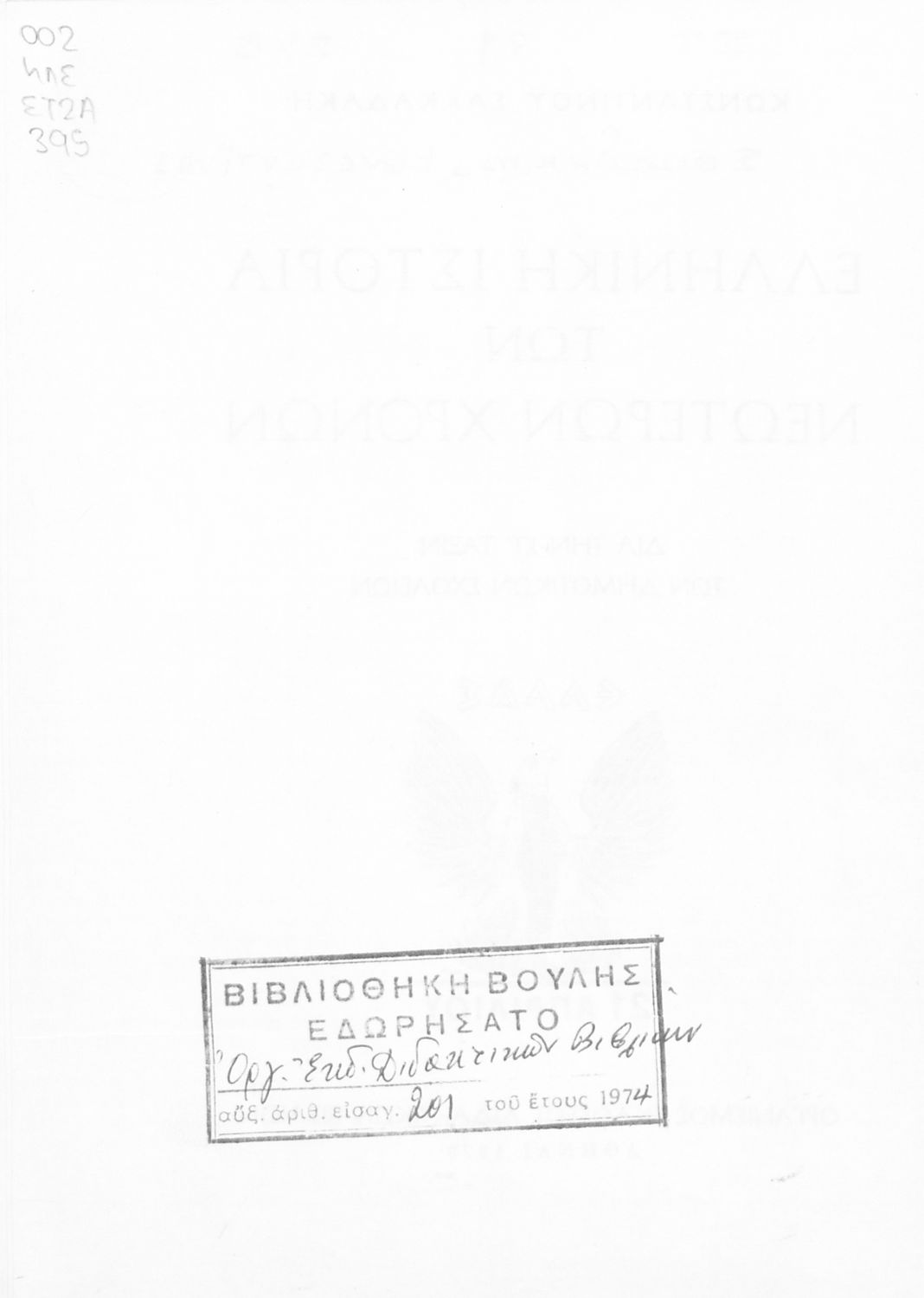 Εντοπισμός πρωτοτύπου: Βιβλιοθήκη της Βουλής των Ελλήνων Κωδικός βιβλιοθήκης: 20555946 |