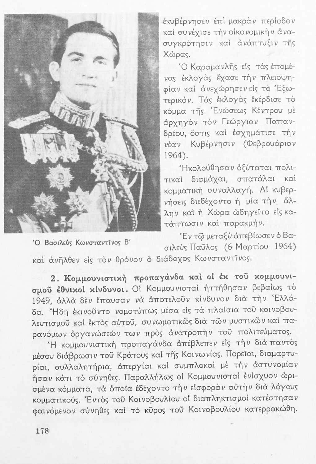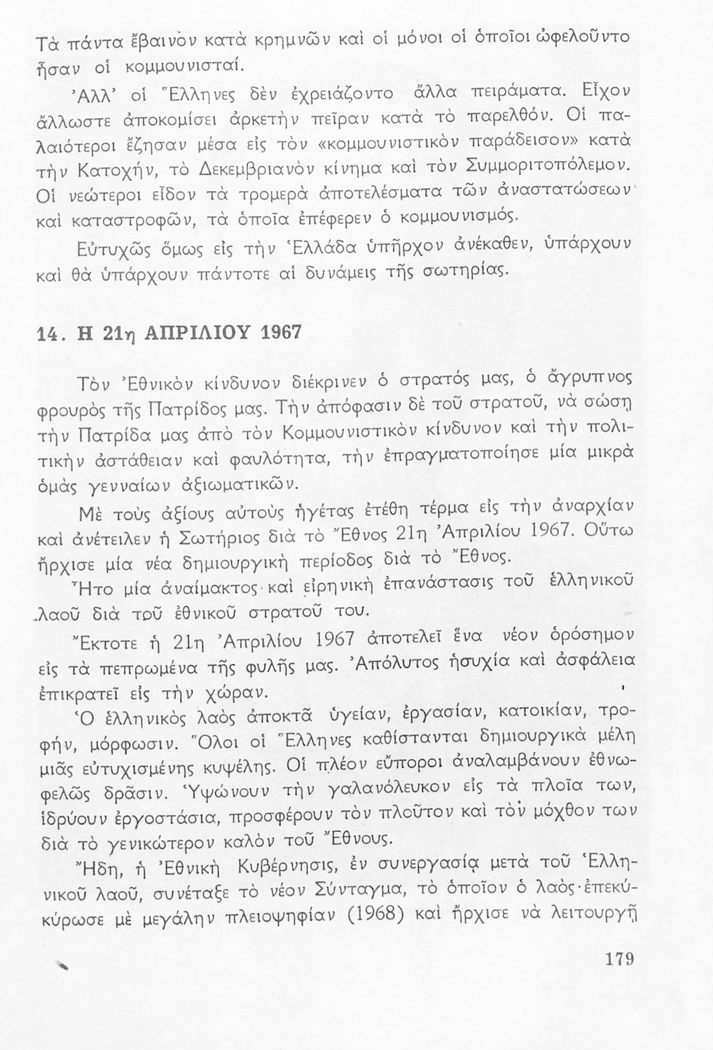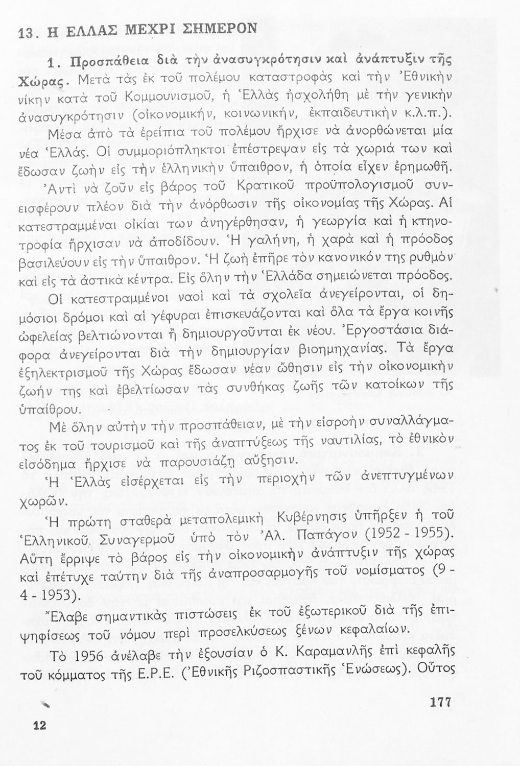 Σχολικό εγχειρίδιο Ιστορίας της ΣΤ΄ Δημοτικού που καλύπτει την περίοδο από την άλωση της Κωνσταντινούπολης μέχρι την δικτατορία των συνταγματαρχών. Υιοθετεί τον λόγο της χούντας και προβάλει τον εθνοσωτήριο χαρακτήρα και τα οικονομικά της επιτεύγματα. Φέρει το σύμβολο της δικτατορίας.