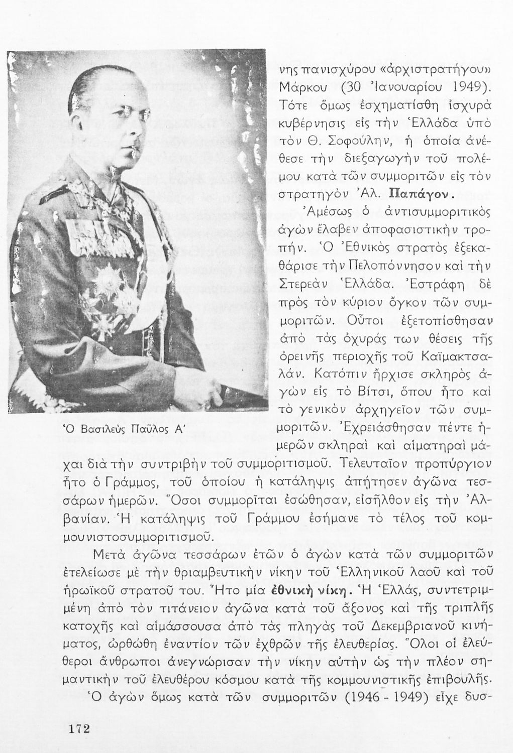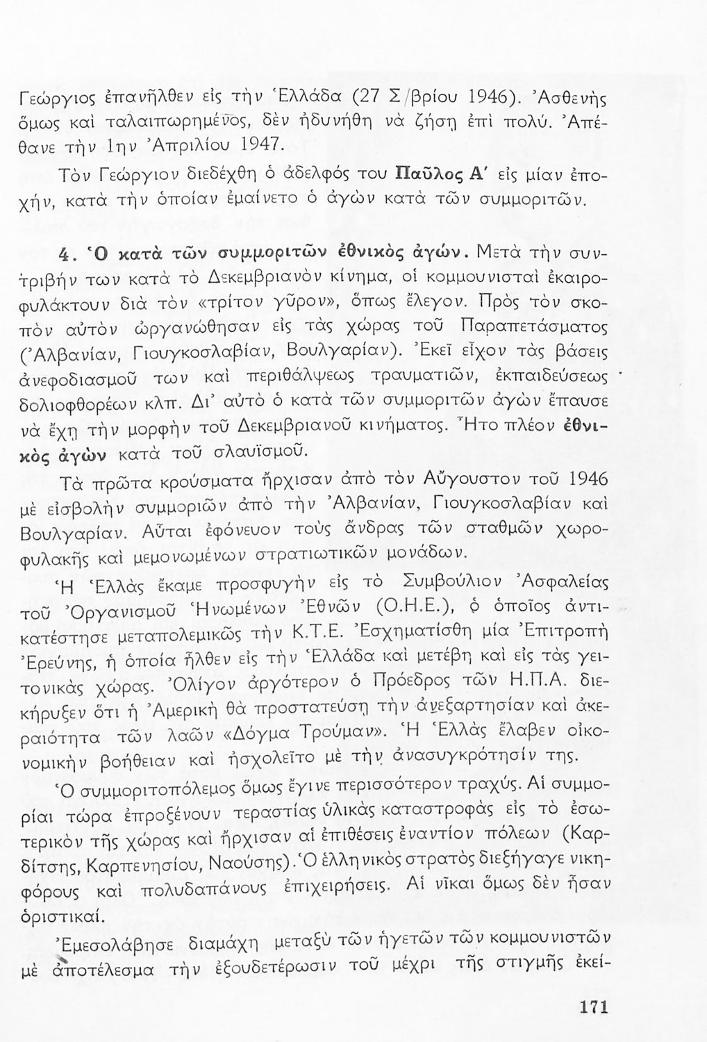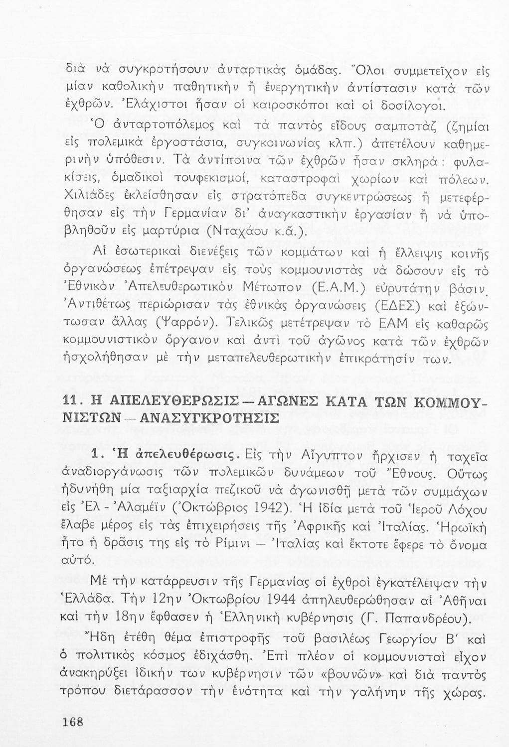 Σχολικό εγχειρίδιο Ιστορίας της ΣΤ΄ Δημοτικού που καλύπτει την περίοδο από την άλωση της Κωνσταντινούπολης μέχρι την δικτατορία των συνταγματαρχών. Υιοθετεί τον λόγο της χούντας και προβάλει τον εθνοσωτήριο χαρακτήρα και τα οικονομικά της επιτεύγματα. Φέρει το σύμβολο της δικτατορίας.
