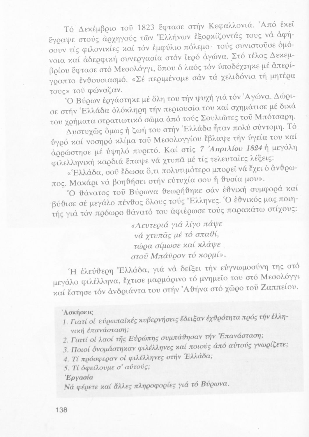Ελληνική ιστορία των νεοτέρων χρόνων για την ΣΤ΄ τάξη του Δημοτ. Σχολείου