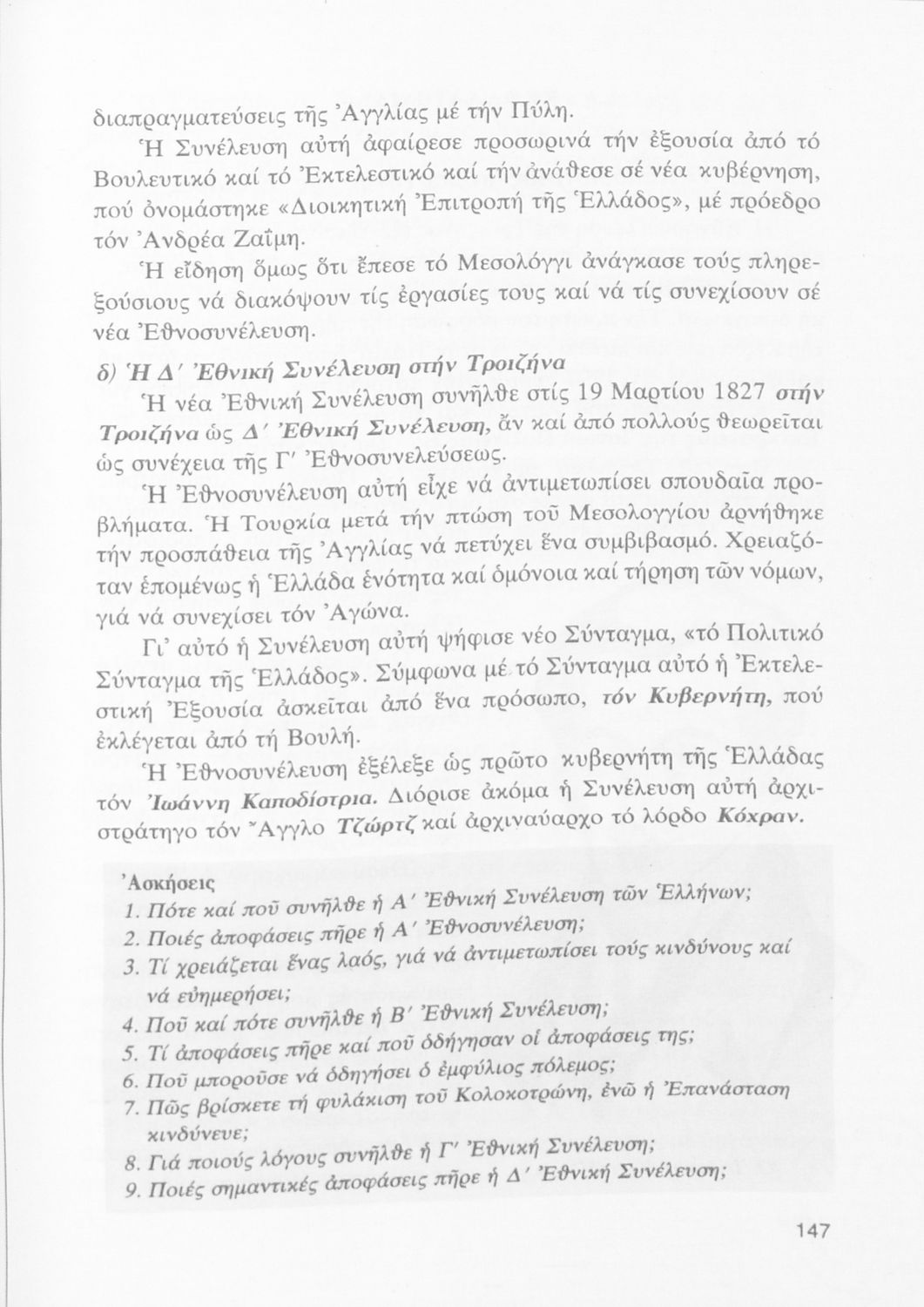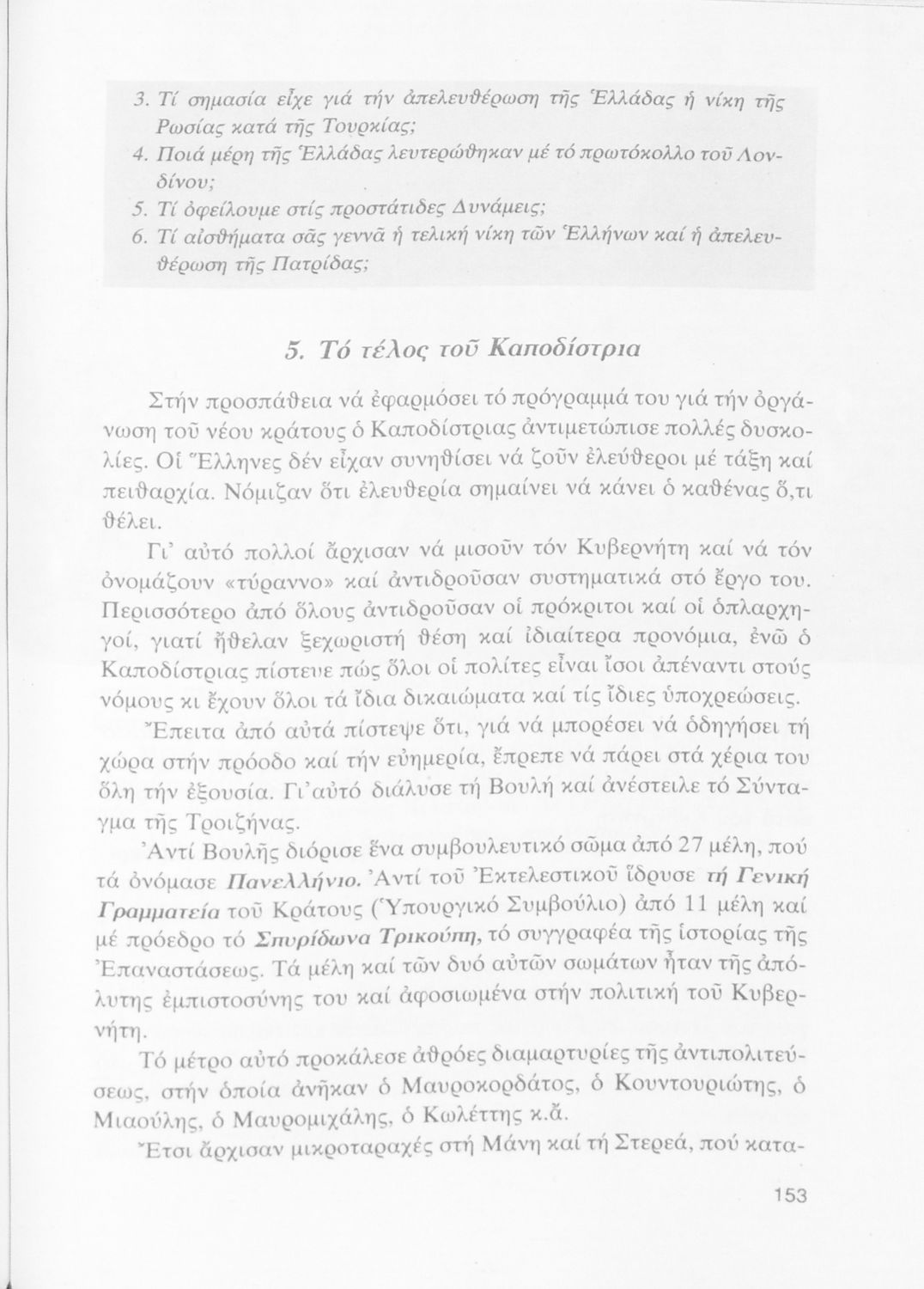 Ελληνική ιστορία των νεοτέρων χρόνων για την ΣΤ΄ τάξη του Δημοτ. Σχολείου