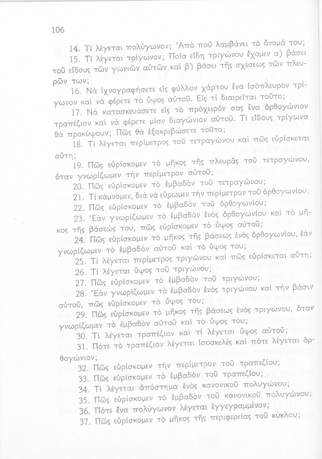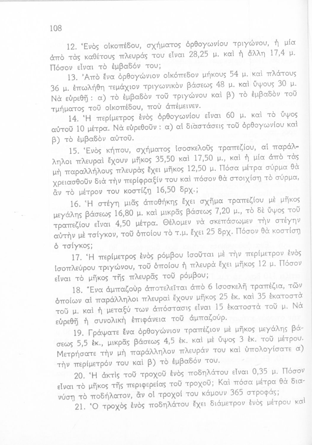 Σχολικό εγχειρίδιο Μαθηματικών ΣΤ΄ Δημοτικού που περιλαμβάνει ασκήσεις λογιστικού χαρακτήρα και ασκήσεις μέτρησης γεωμετρικών σχημάτων.