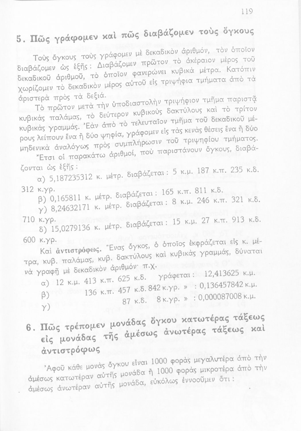 LDR 01233 2200217 4500 035 ## _a03-20555954 040 ## _aΒιβλιοθήκη της Βουλής των Ελλήνων 041 ## _ael 100 ## _aΝ. Διαμαντόπουλος 110 ## _a20555954 245 0# _aΑριθμητική Γεωμετρία ΣΤ΄ Δημοτικού 250 ## _a6η Έκδοση 260 ## _aΑθήνα _bΟργανισμός Εκδόσεως Διδακτικών Βιβλίων _c1974 300 ## _a164 _bΕικόνες (ασπρόμαυρες), Σκίτσα (ασπρόμαυρα) 520 ## _aΣχολικό εγχειρίδιο Μαθηματικών ΣΤ΄ Δημοτικού που περιλαμβάνει ασκήσεις λογιστικού χαρακτήρα και ασκήσεις μέτρησης γεωμετρικών σχημάτων. 521 ## _aΣΤ' Δημοτικού 522 ## _aΕλλάδα 546 ## _aΔημοτική 563 ## _aΜαλακό Εξώφυλλο 583 ## _a2427/22-3-1974 _c1974 650 #4 _aΑριθμητική _aΓεωμετρία _aΕμβαδόν _aΚυκλικός κύλινδρος _aΜονάδες όγκου _aΟρθογώνιο _aΠυραμίδα _aΣύνολα _aΤόκος _aΥποσύνολα