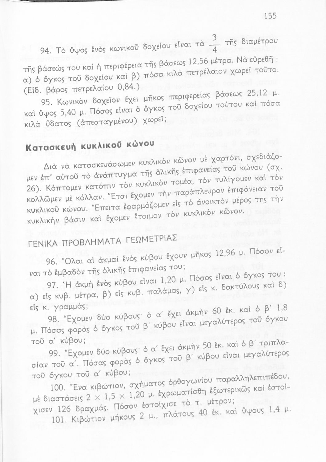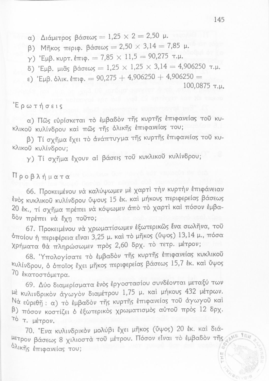 Σχολικό εγχειρίδιο Μαθηματικών ΣΤ΄ Δημοτικού που περιλαμβάνει ασκήσεις λογιστικού χαρακτήρα και ασκήσεις μέτρησης γεωμετρικών σχημάτων. Φέρει το σύμβολο της δικτατορίας.