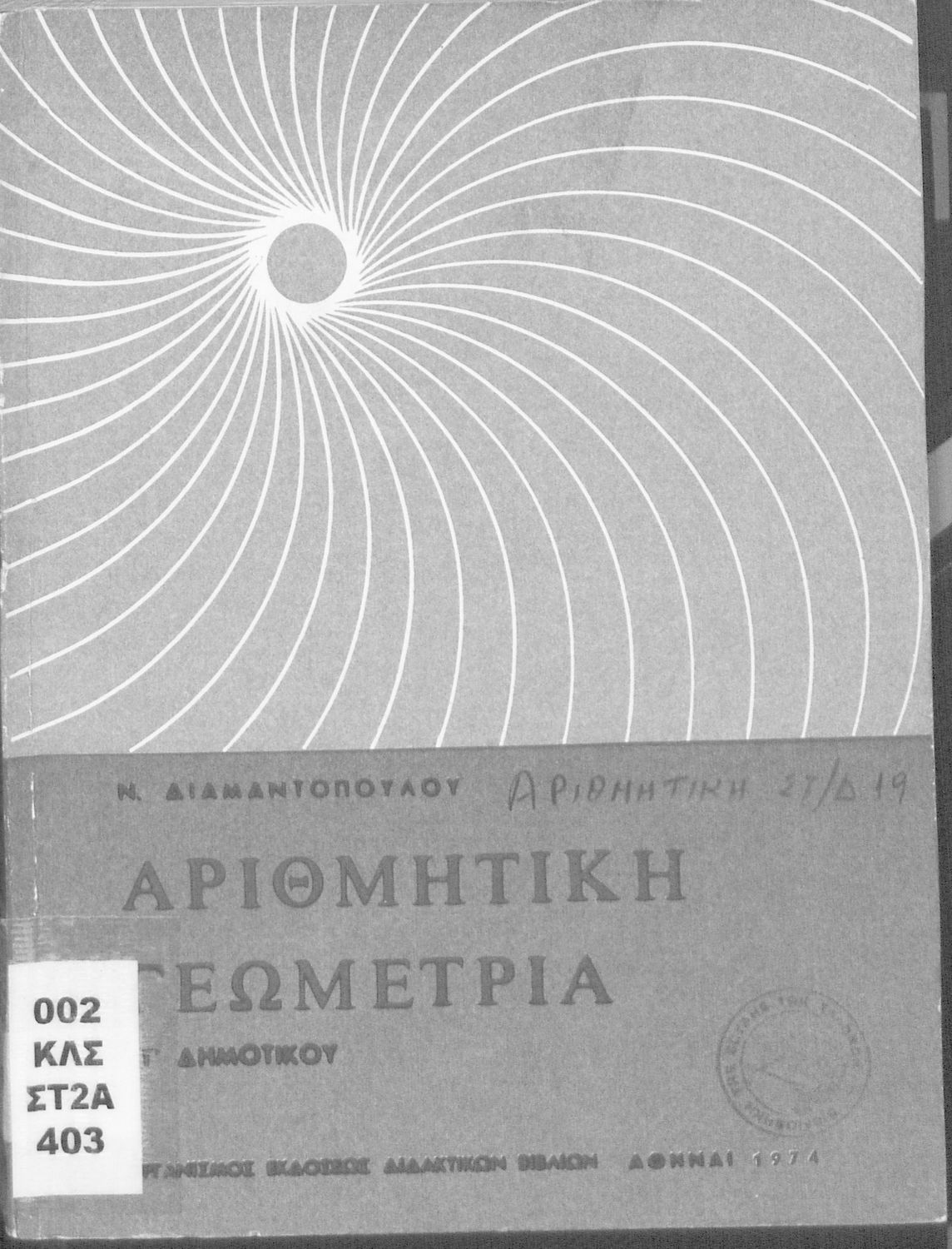 Κωδικός αναγνώρισης: 03-20555954 Τίτλος: Αριθμητική Γεωμετρία ΣΤ΄ Δημοτικού Συγγραφέας: Ν. Διαμαντόπουλος Μέγεθος και υπόστρωμα: Σχολικό εγχειρίδιο, μαλακό εξώφυλλο, 164 σελίδες. Εικόνες (ασπρόμαυρες), σκίτσα (ασπρόμαυρα). |