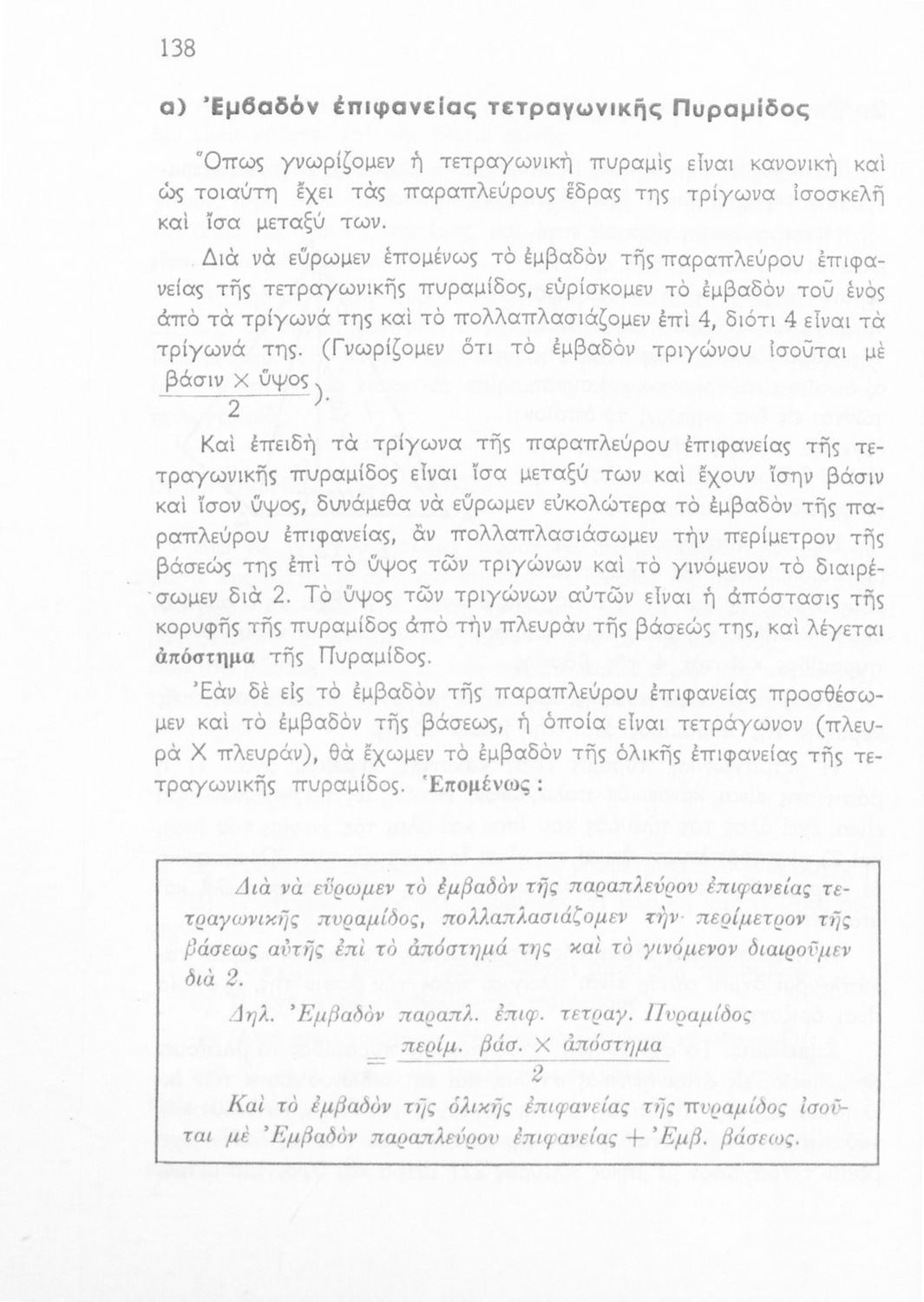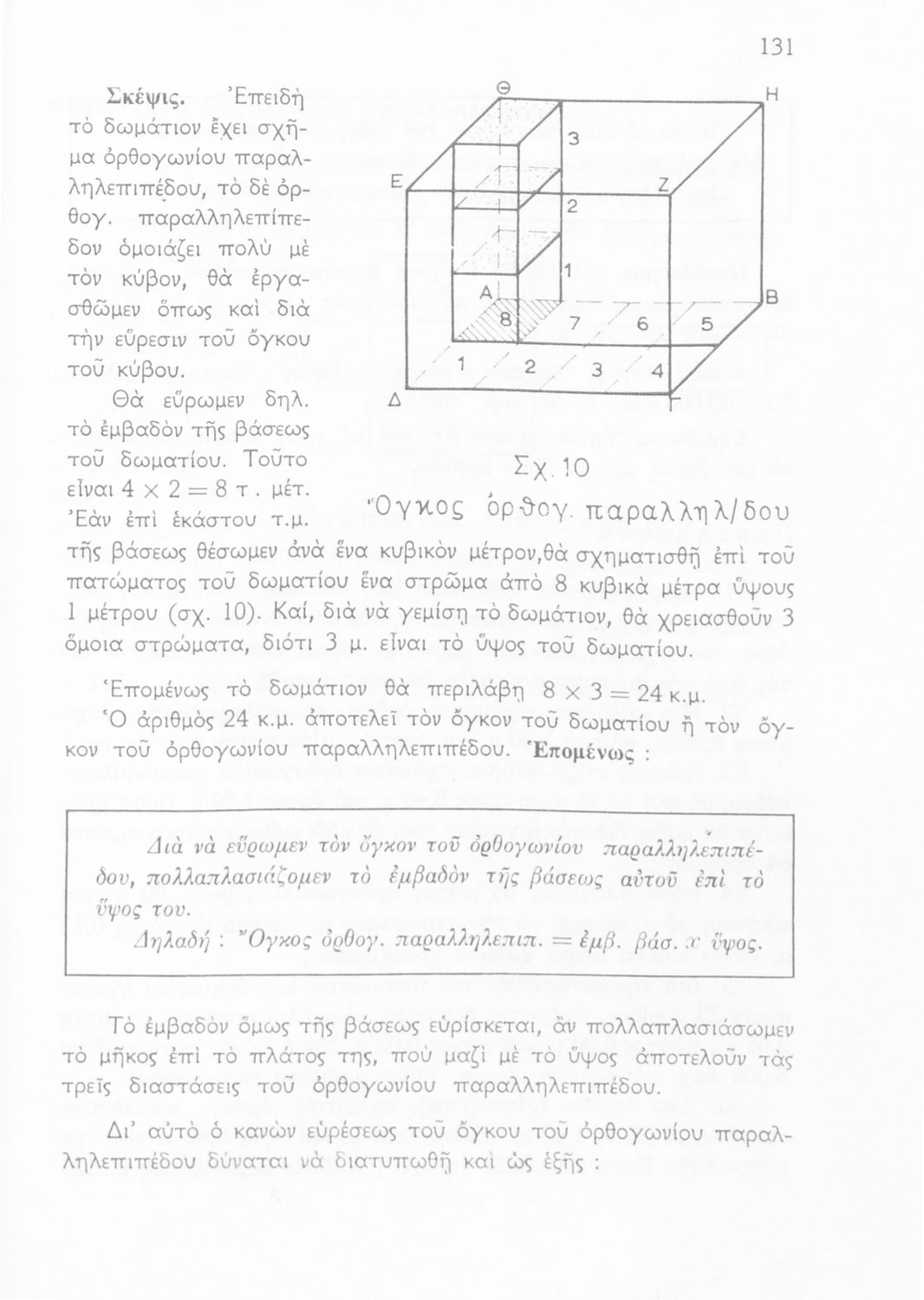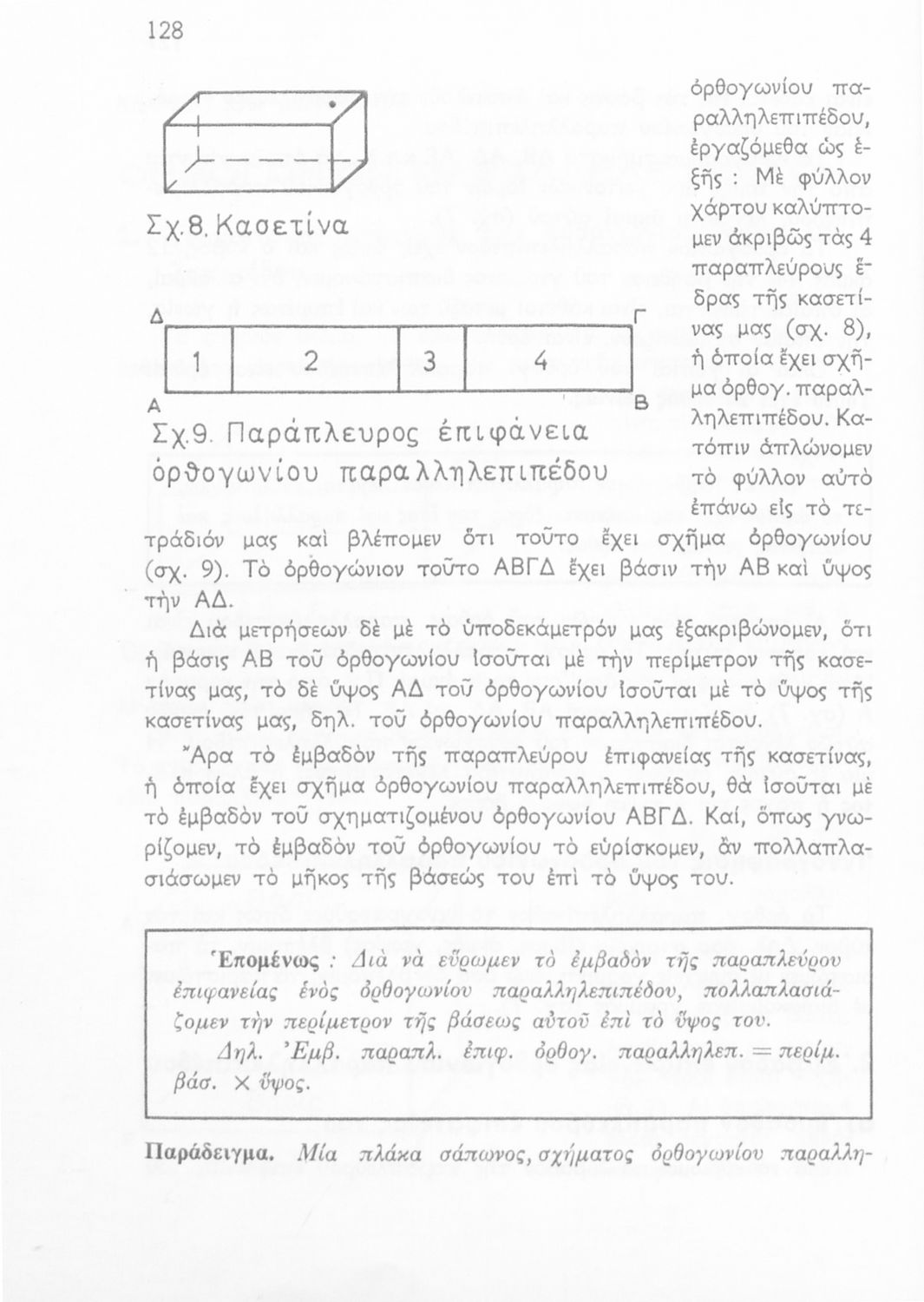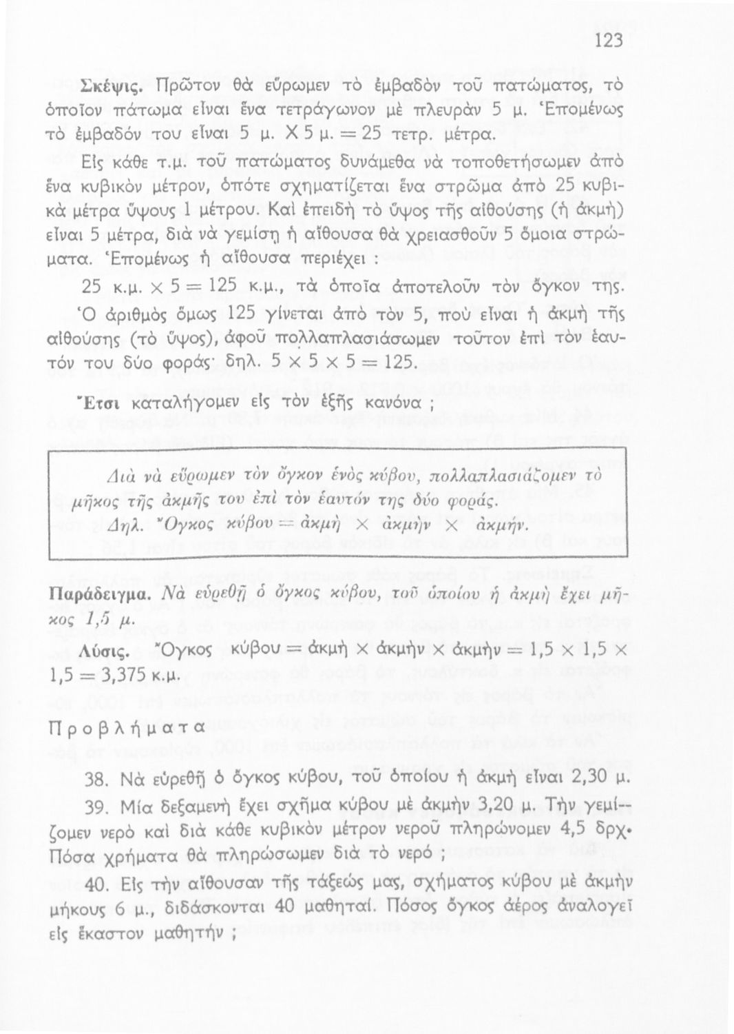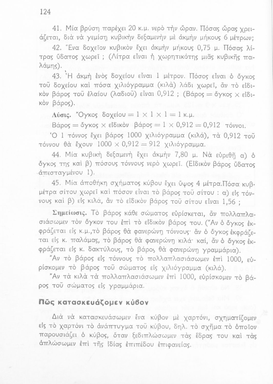 Μαθητικό βοήθημα Γεωμετρίας για τις Ε΄ και ΣΤ΄ Δημοτικού που περιλαμβάνει εικόνες, σχεδιαγράμματα και ασκήσεις. Περιέχει πίνακα με τα ειδικά βάρη διαφόρων σωμάτων.