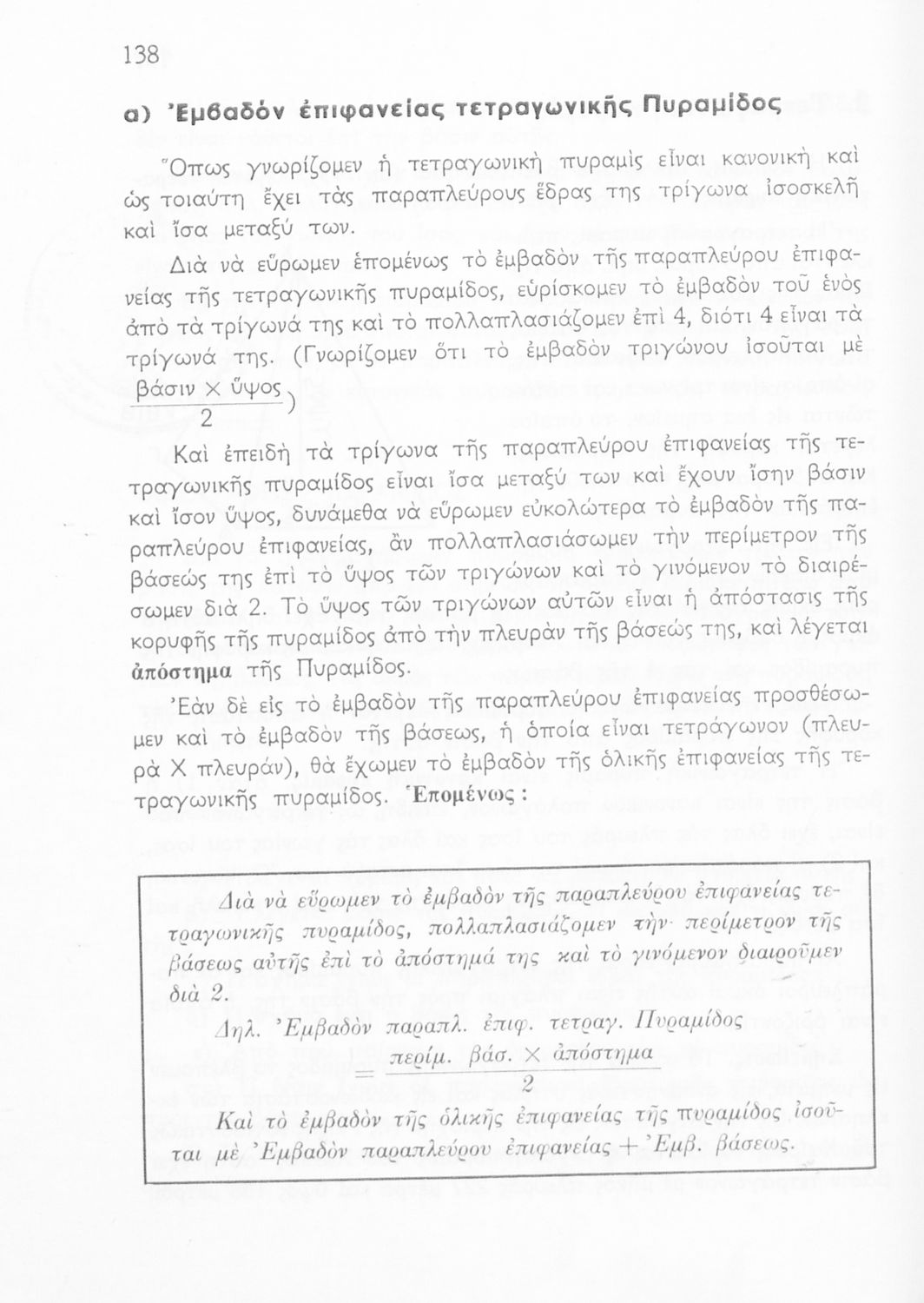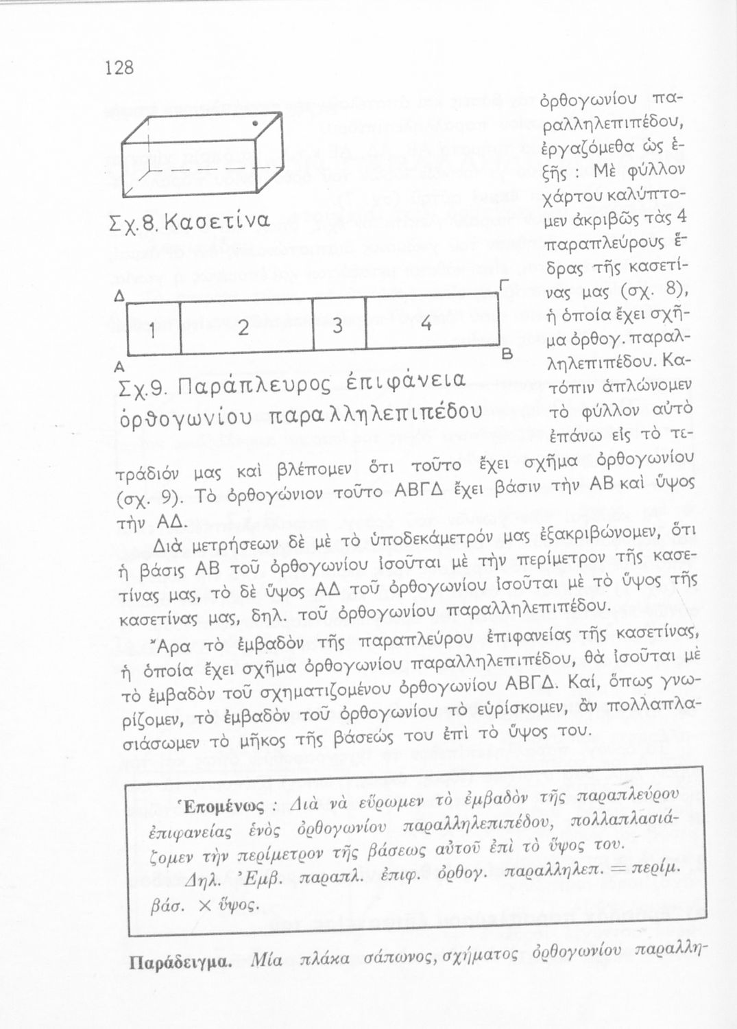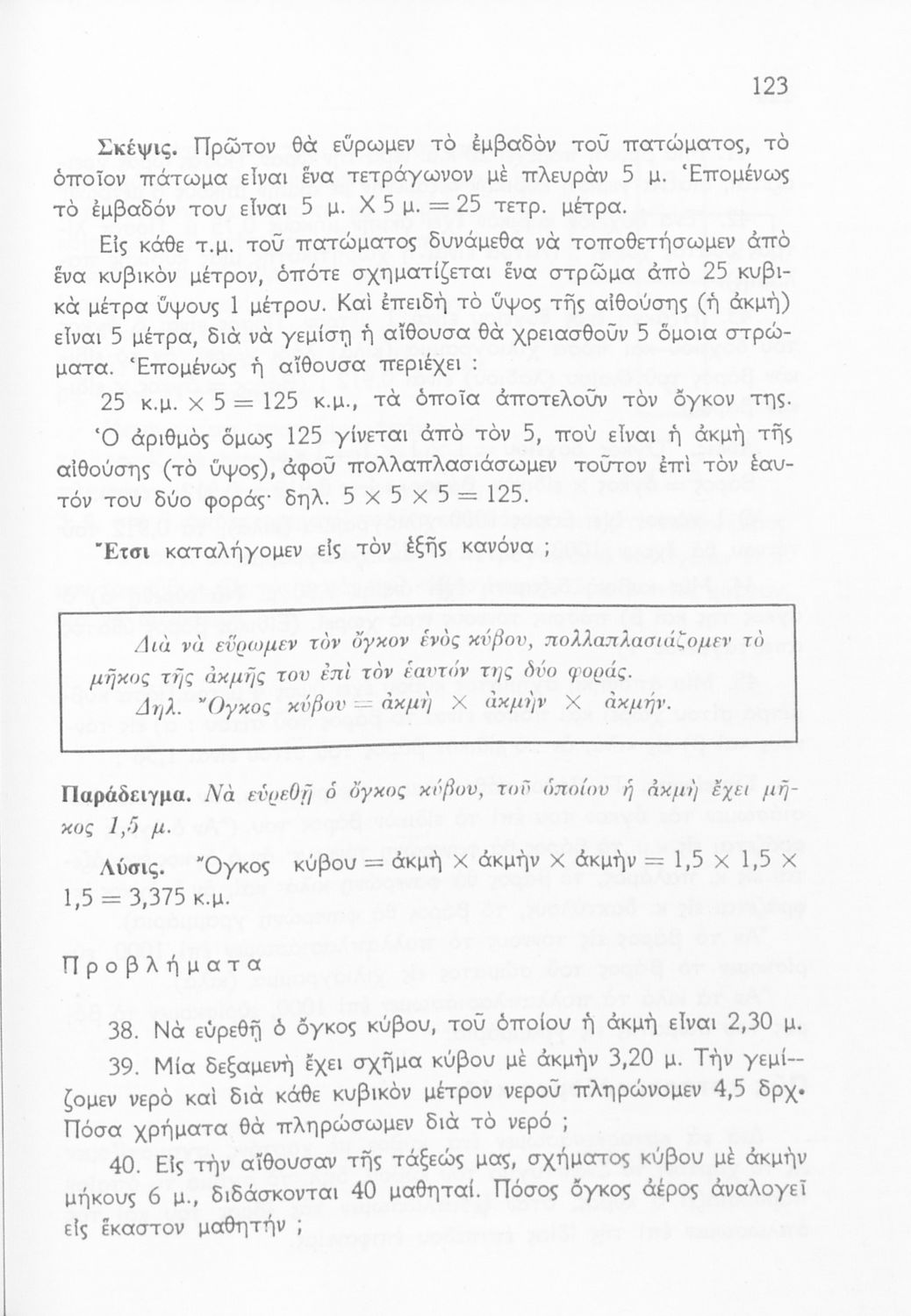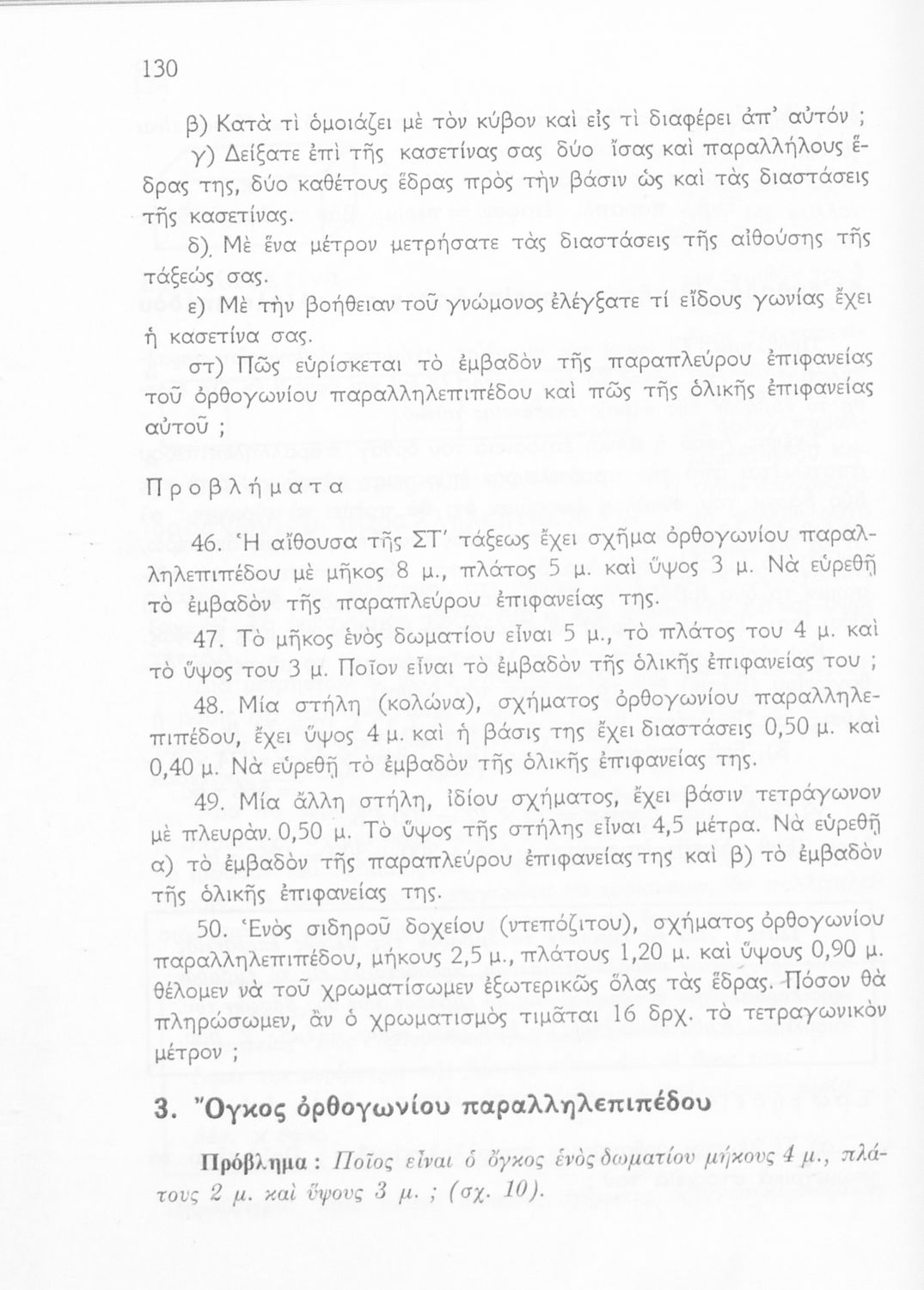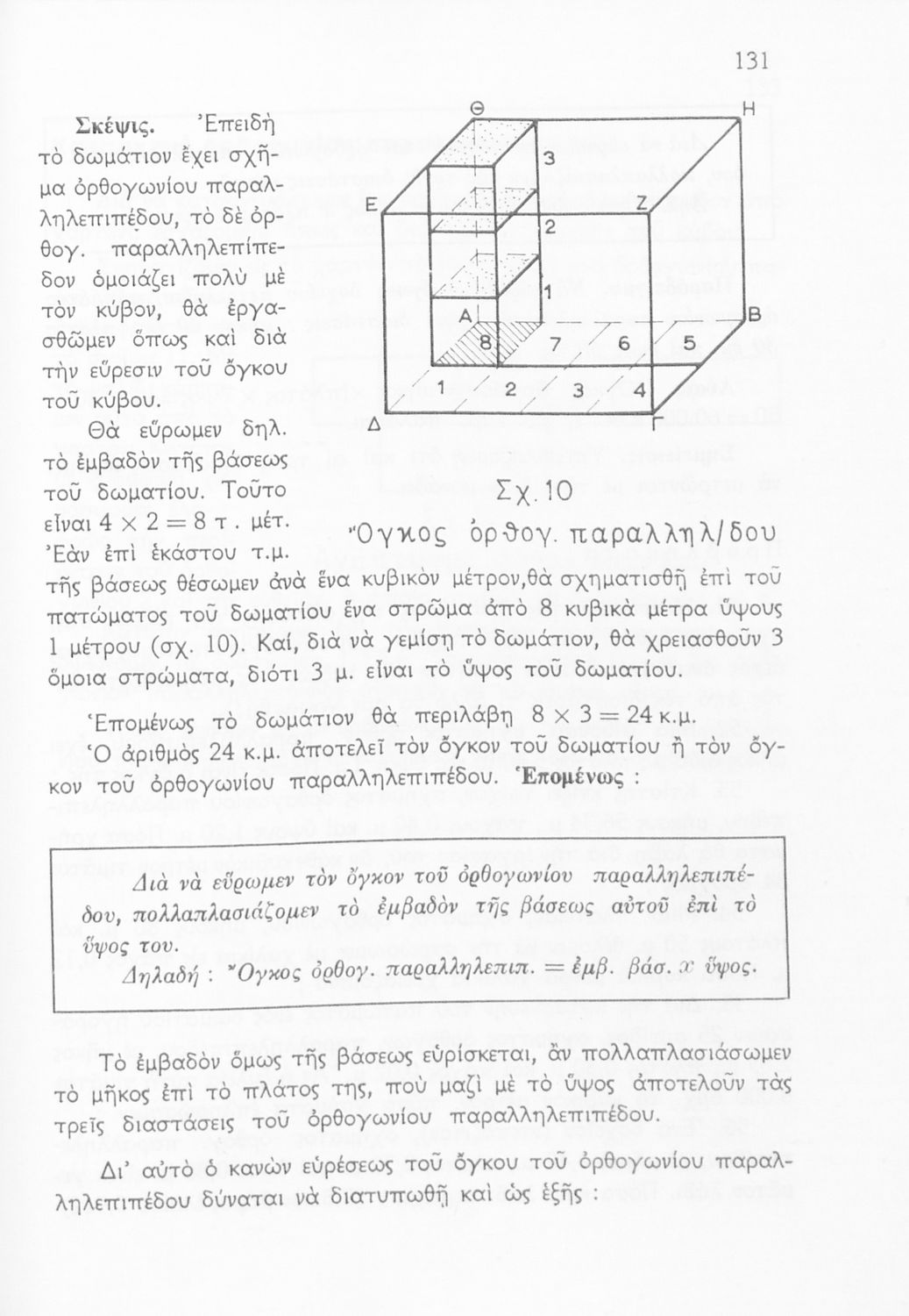 Μαθητικό βοήθημα Γεωμετρίας για τις Ε΄ και ΣΤ΄ Δημοτικού που περιλαμβάνει εικόνες, σχεδιαγράμματα και ασκήσεις. Περιέχει πίνακα με τα ειδικά βάρη διαφόρων σωμάτων.