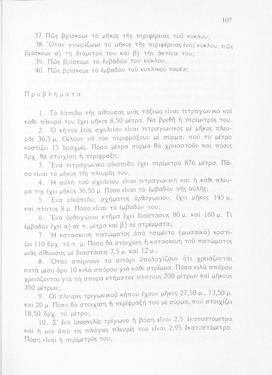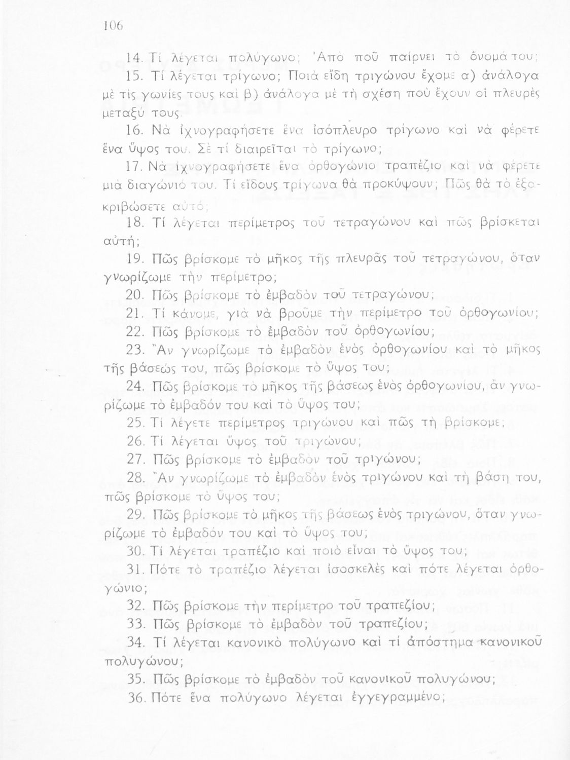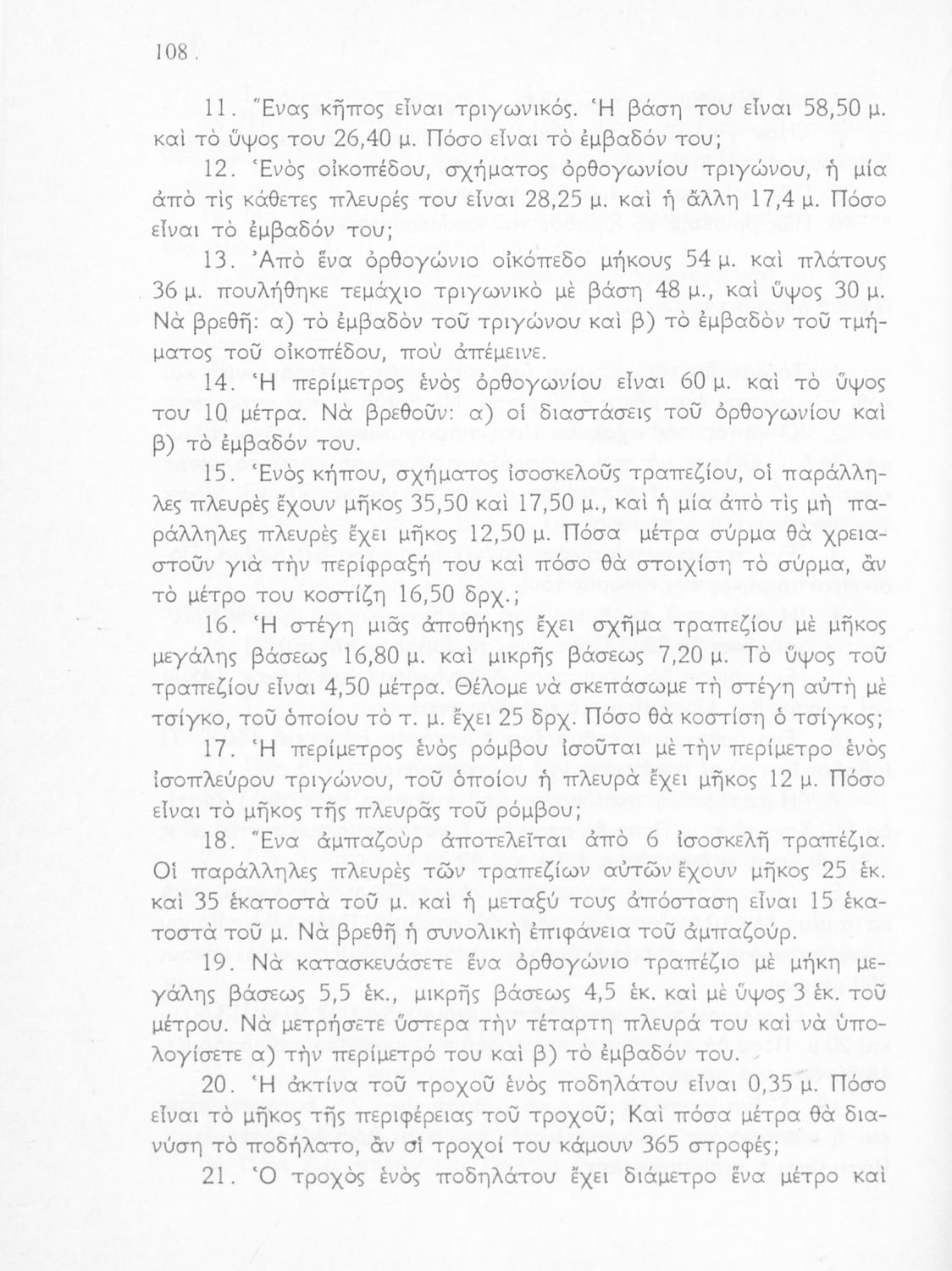 Σχολικό εγχειρίδιο Μαθηματικών ΣΤ΄ Δημοτικού που περιλαμβάνει ασκήσεις λογιστικού χαρακτήρα και ασκήσεις μέτρησης γεωμετρικών σχημάτων.