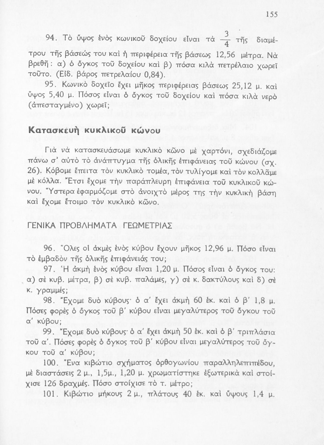 Σχολικό εγχειρίδιο Μαθηματικών ΣΤ΄ Δημοτικού που περιλαμβάνει ασκήσεις λογιστικού χαρακτήρα και ασκήσεις μέτρησης γεωμετρικών σχημάτων. Φέρει το σύμβολο της δικτατορίας.