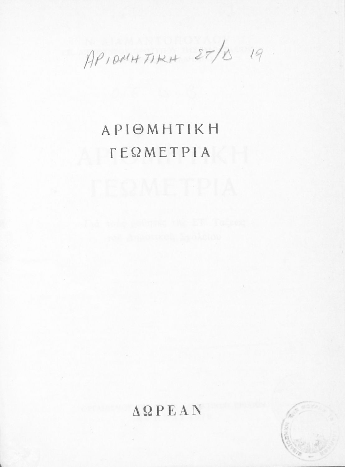 Τίτλος: Αριθμητική Γεωμετρία για τους μαθητές της ΣΤ΄ τάξεως του Δημοτικού Σχολείου