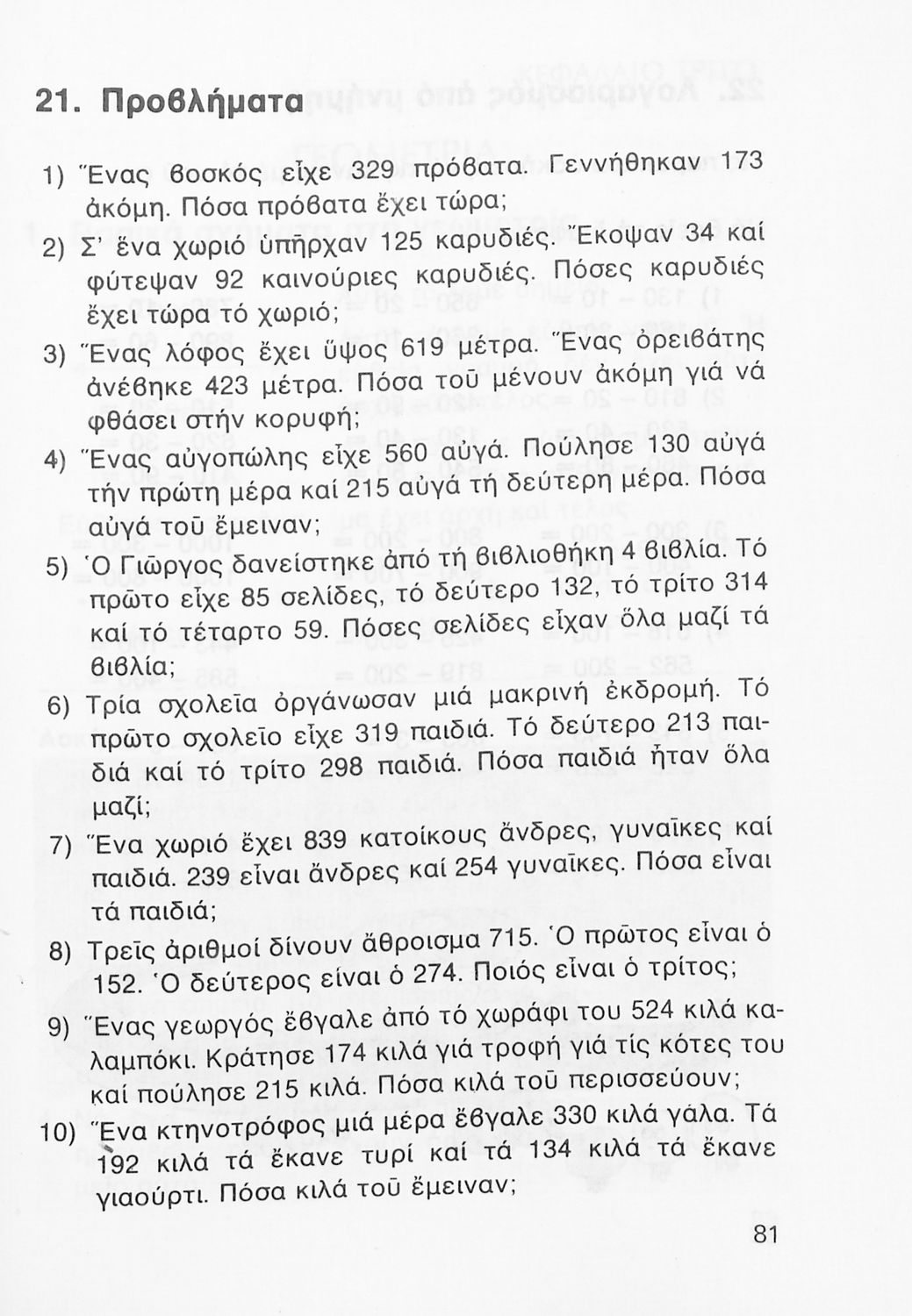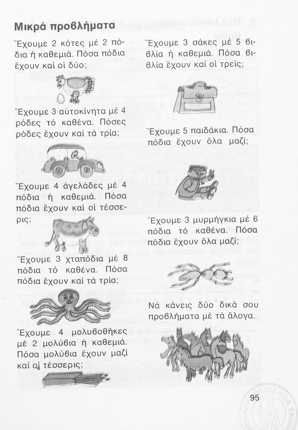 Σχολικό εγχειρίδιο με προβλήματα Αριθμητικής για την Γ΄ Δημοτικού χωρισμένο με βάση τις αριθμητικές πράξεις και τις εκατοντάδες.