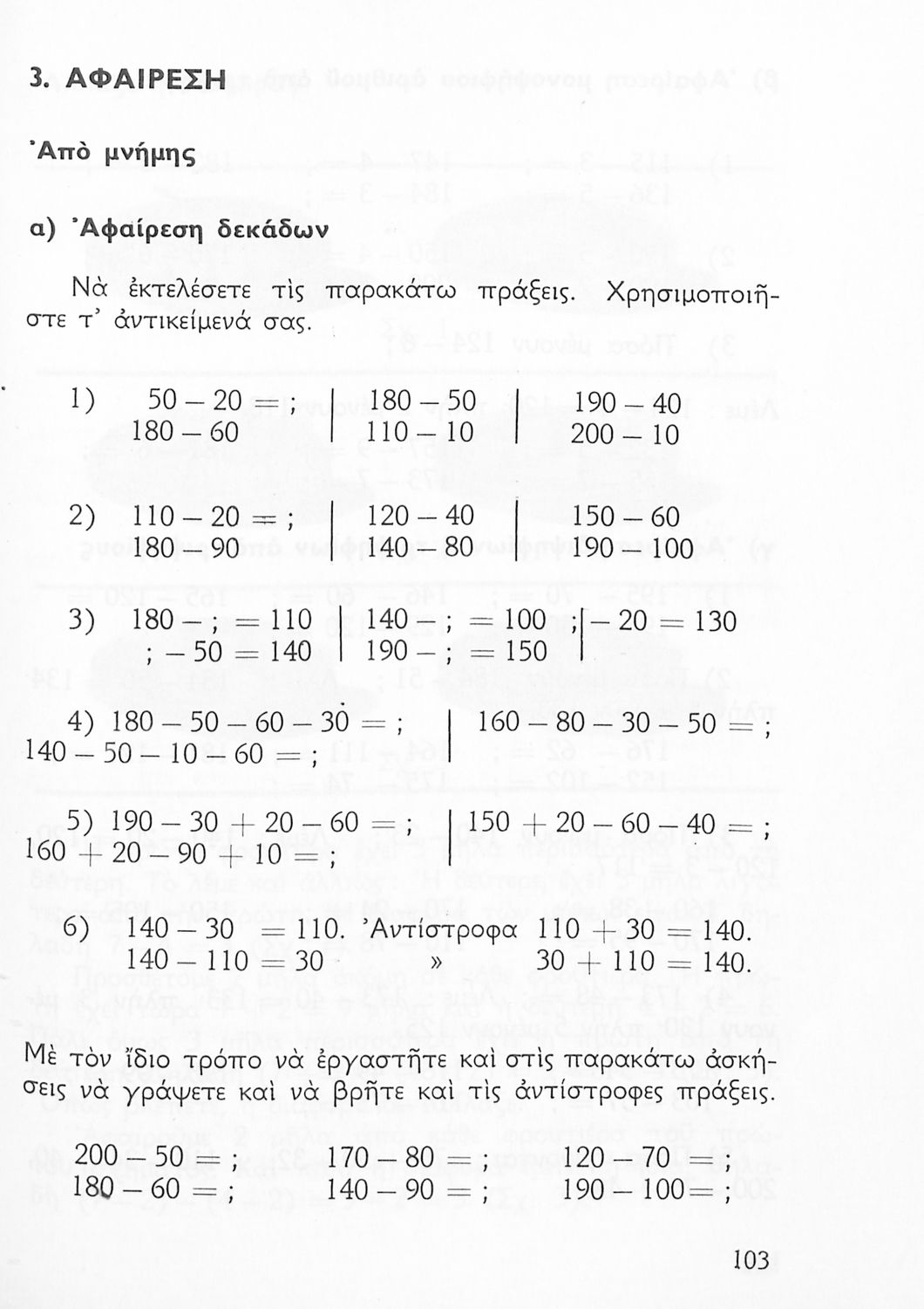 Σχολικό εγχειρίδιο Αριθμητικής για την Γ΄ Δημοτικού που περιλαμβάνει θεωρία, παραδείγματα και ασκήσεις και εστιάζει στις αριθμητικές πράξεις. Περιέχει και 11 σελίδες Γεωμετρίας. Φέρει το σύμβολο της ...