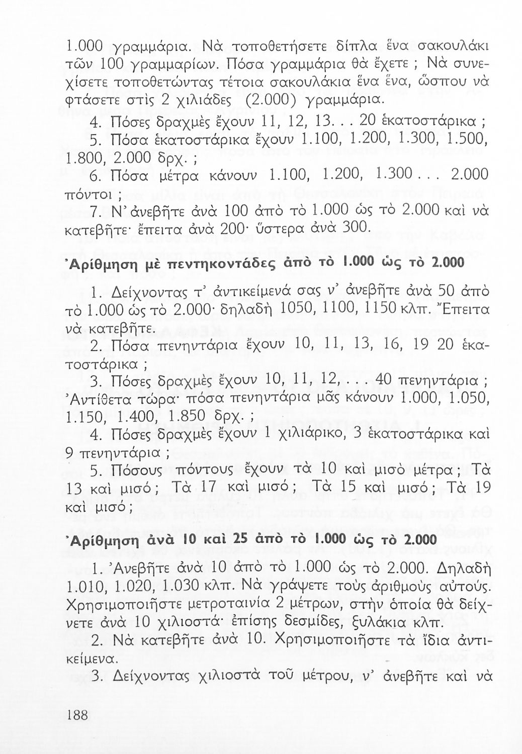 Βαθμίδα εκπαίδευσης: Πρωτοβάθμια Τάξη: Γ' Δημοτικού Μάθημα: Μαθηματικά Γλώσσα: Δημοτική Παρουσίαση περιεχομένου: Σχολικό εγχειρίδιο Αριθμητικής για την Γ΄ Δημοτικού που περιλαμβάνει θεωρία, παραδείγματα και ασκήσεις και εστιάζει στις αριθμητικές πράξεις. Περιέχει και 11 σελίδες Γεωμετρίας. |