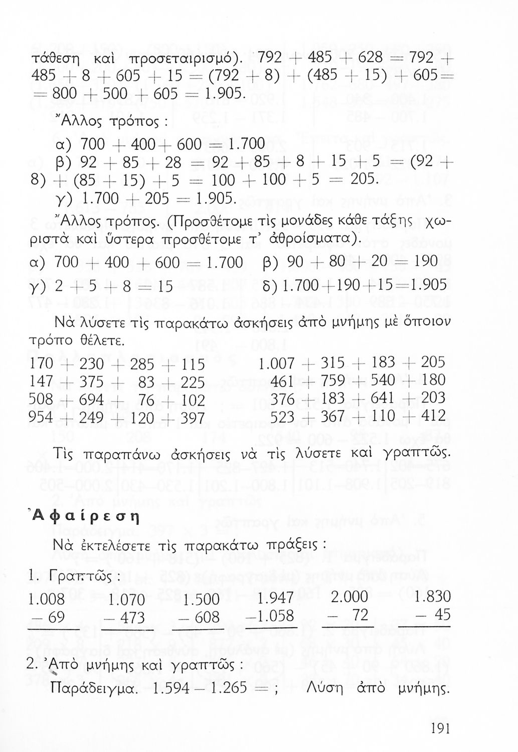 520 ## _aΣχολικό εγχειρίδιο Αριθμητικής για την Γ΄ Δημοτικού που περιλαμβάνει θεωρία, παραδείγματα και ασκήσεις και εστιάζει στις αριθμητικές πράξεις. Περιέχει και 11 σελίδες Γεωμετρίας.