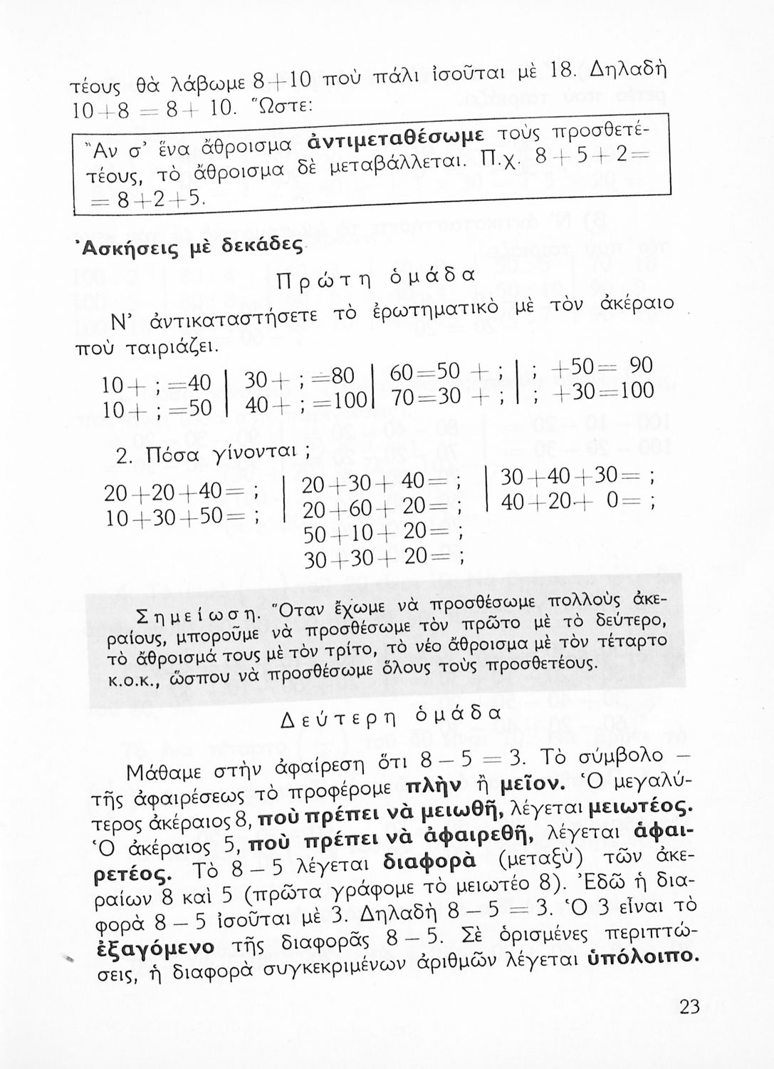 Σχολικό εγχειρίδιο Αριθμητικής για την Γ΄ Δημοτικού που περιλαμβάνει θεωρία, παραδείγματα και ασκήσεις και εστιάζει στις αριθμητικές πράξεις. Περιέχει και 11 σελίδες Γεωμετρίας. Φέρει το σύμβολο της ...