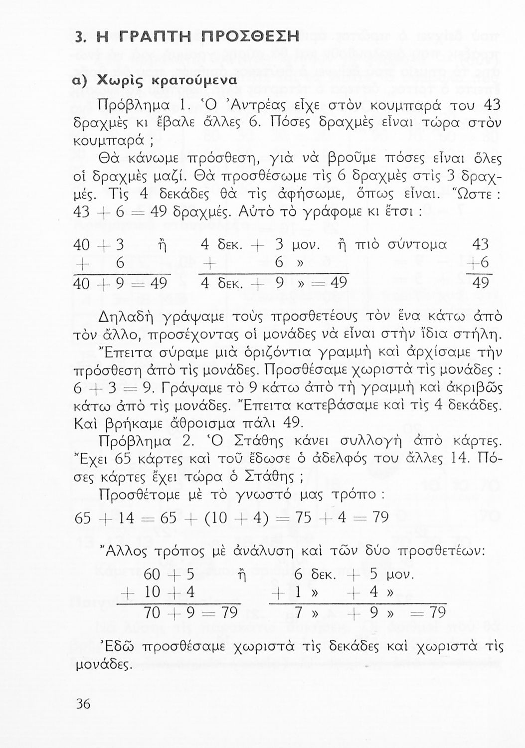 Σχολικό εγχειρίδιο Αριθμητικής για την Γ΄ Δημοτικού που περιλαμβάνει θεωρία, παραδείγματα και ασκήσεις και εστιάζει στις αριθμητικές πράξεις. Περιέχει και 11 σελίδες Γεωμετρίας.