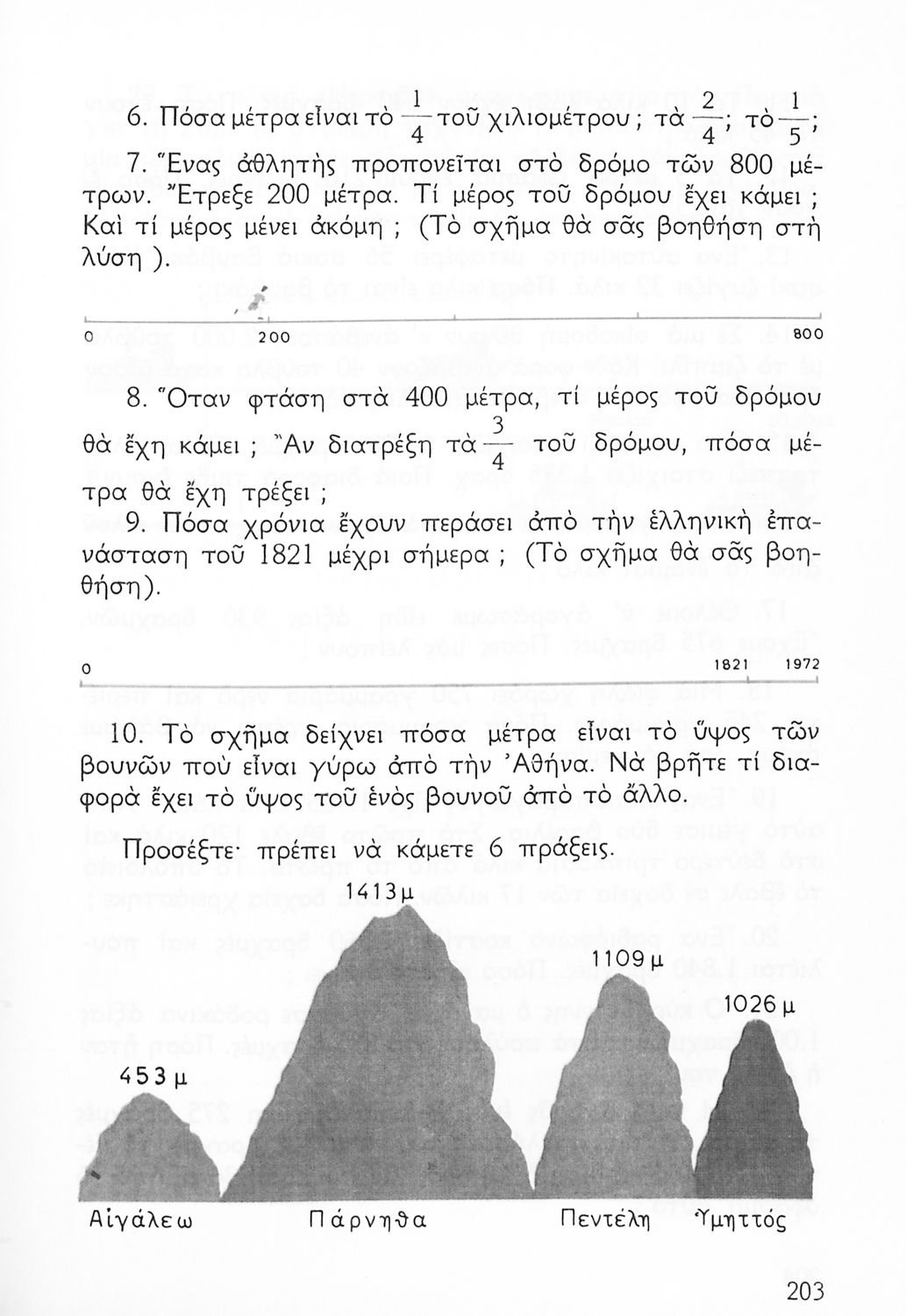 Σχολικό εγχειρίδιο Μαθηματικών ΣΤ΄ Δημοτικού που περιλαμβάνει ασκήσεις λογιστικού χαρακτήρα και ασκήσεις μέτρησης γεωμετρικών σχημάτων. Φέρει το σύμβολο της δικτατορίας.