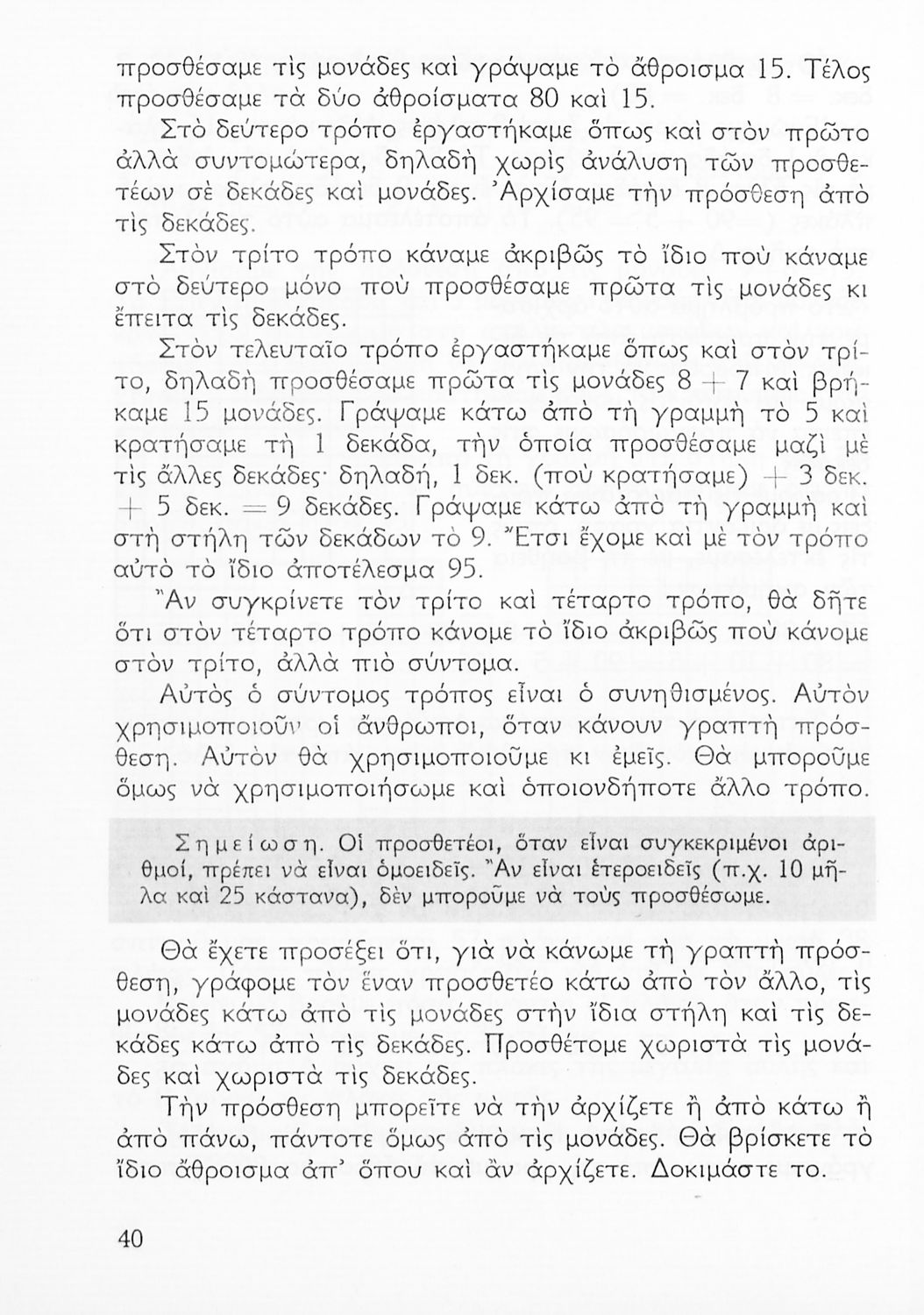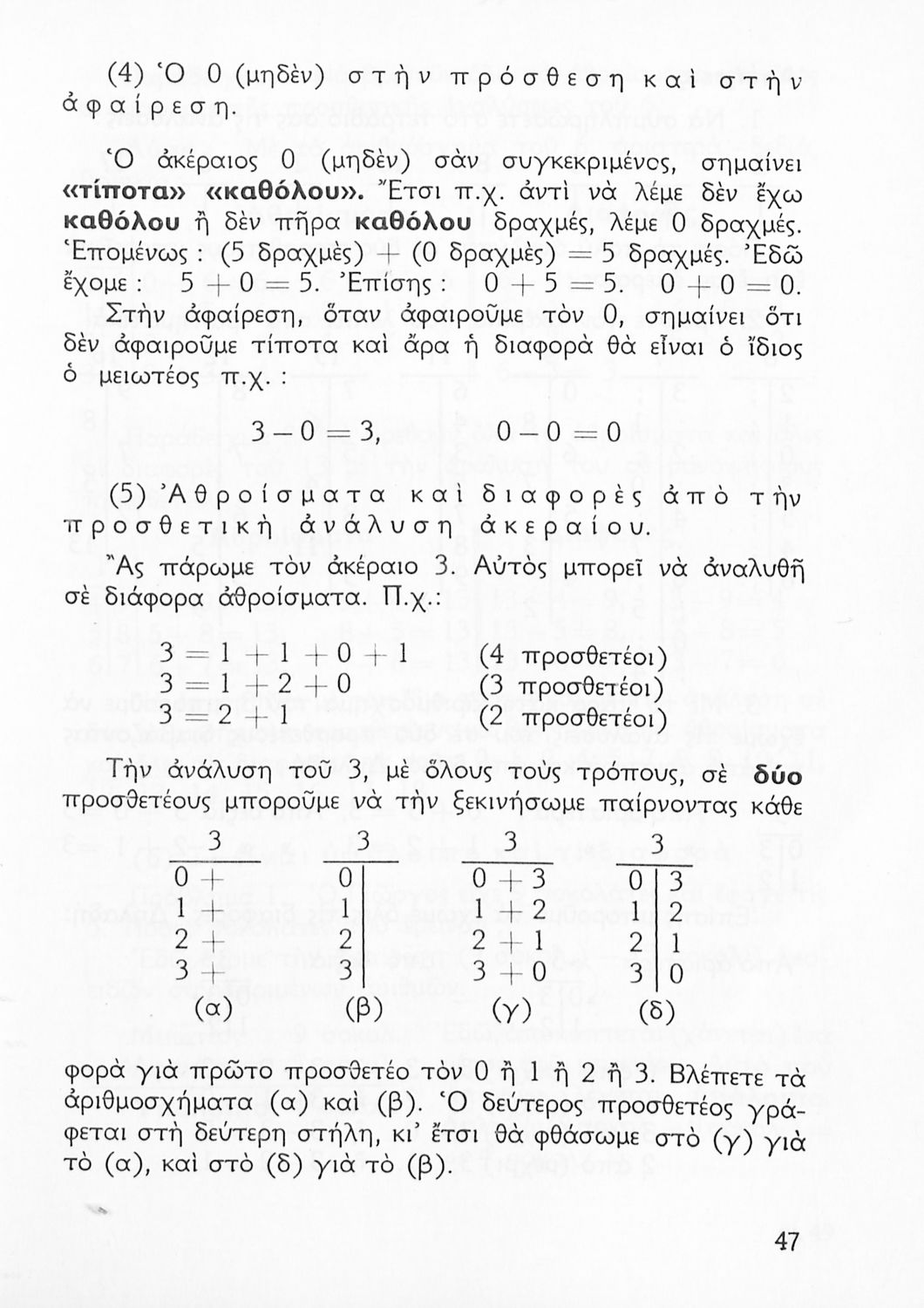 Σχολικό εγχειρίδιο Αριθμητικής για την Γ΄ Δημοτικού που περιλαμβάνει θεωρία, παραδείγματα και ασκήσεις και εστιάζει στις αριθμητικές πράξεις. Περιέχει και 11 σελίδες Γεωμετρίας.