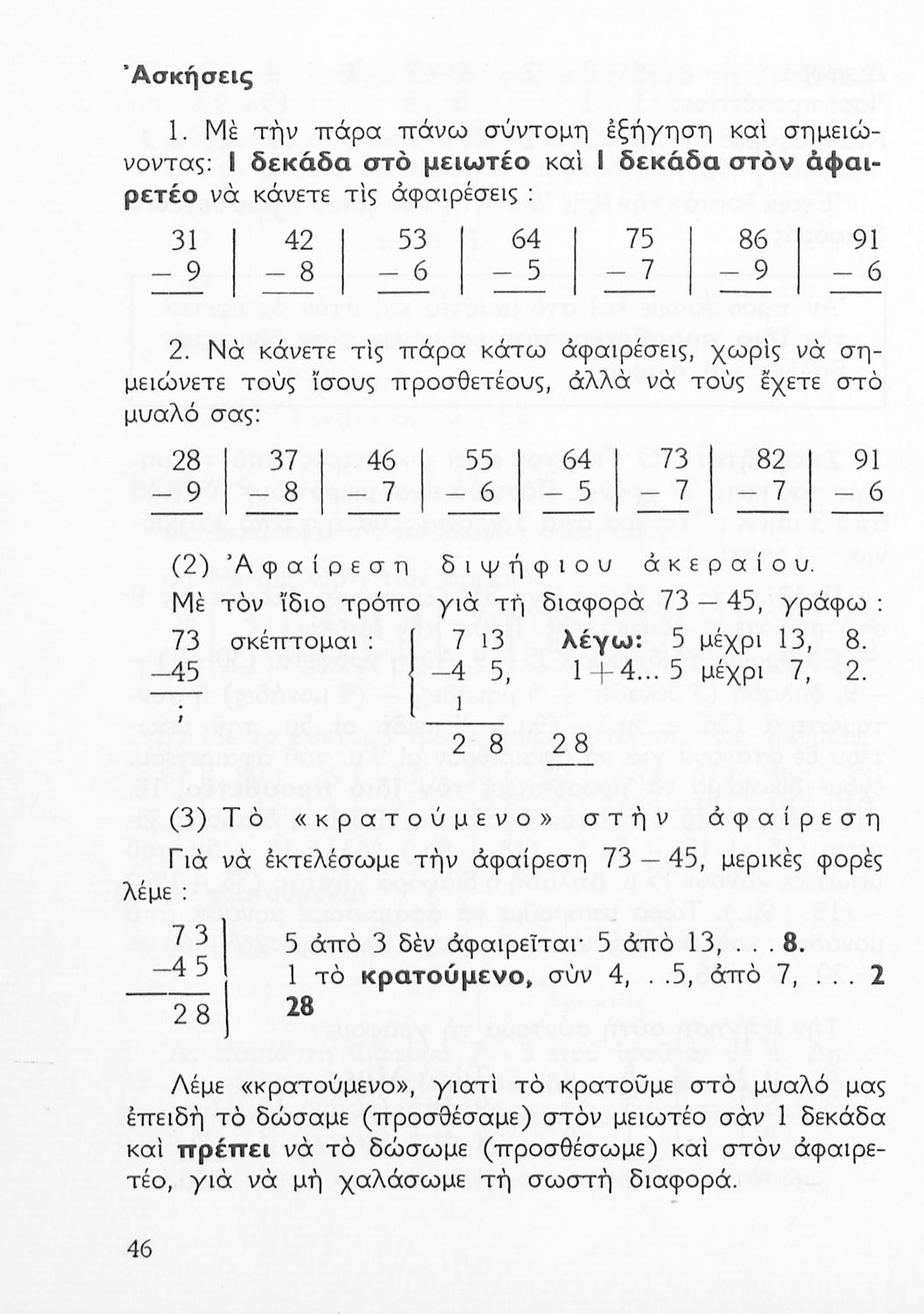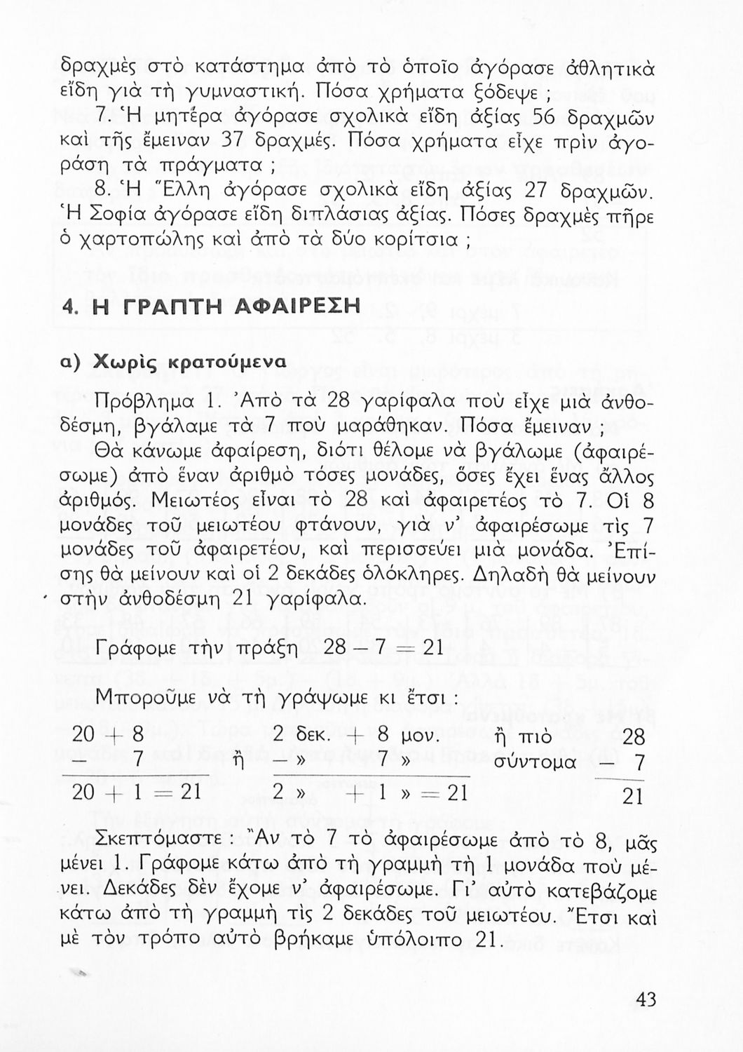 Σχολικό εγχειρίδιο Αριθμητικής για την Γ΄ Δημοτικού που περιλαμβάνει θεωρία, παραδείγματα και ασκήσεις και εστιάζει στις αριθμητικές πράξεις. Περιέχει και 11 σελίδες Γεωμετρίας. Φέρει το σύμβολο της ...