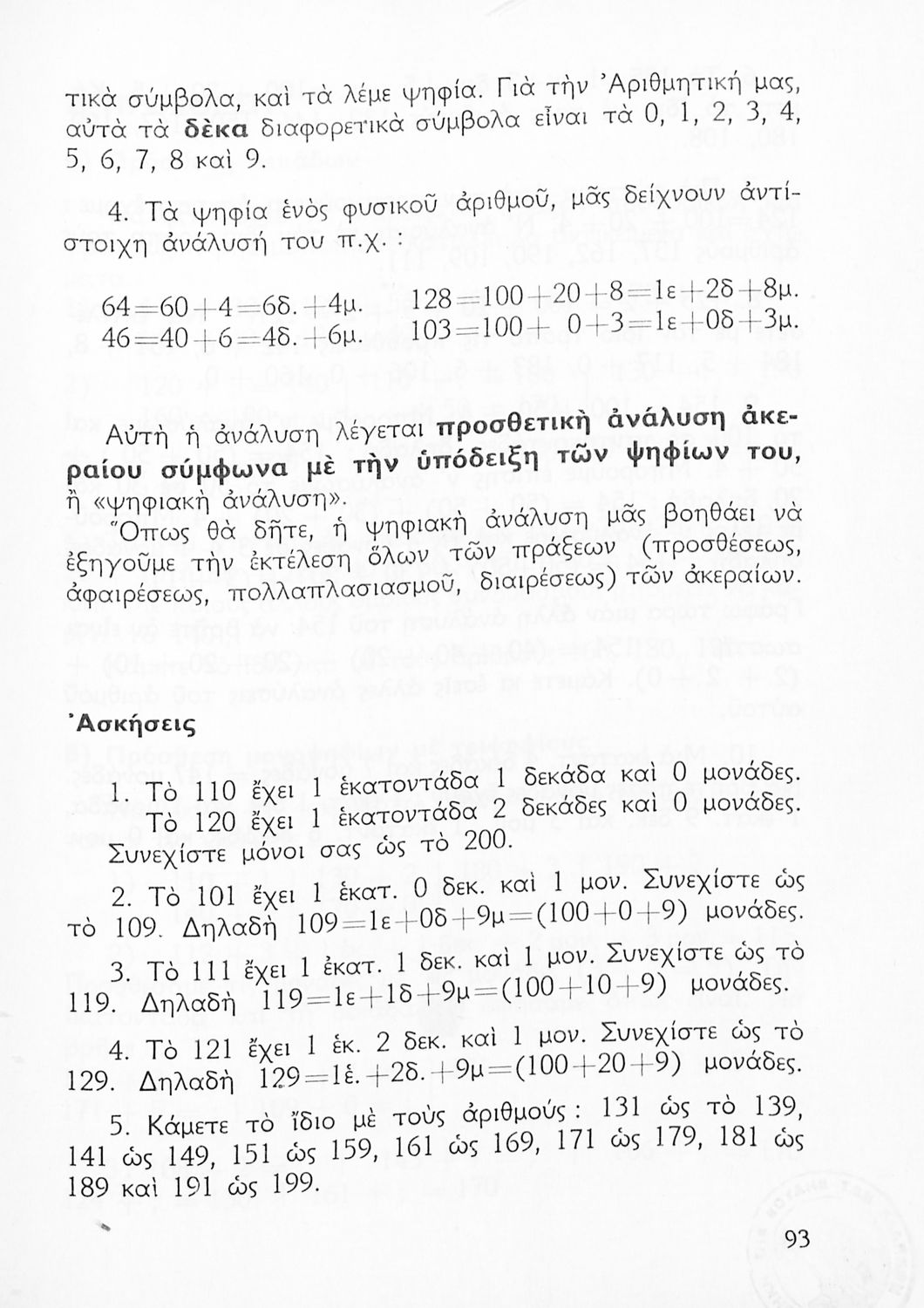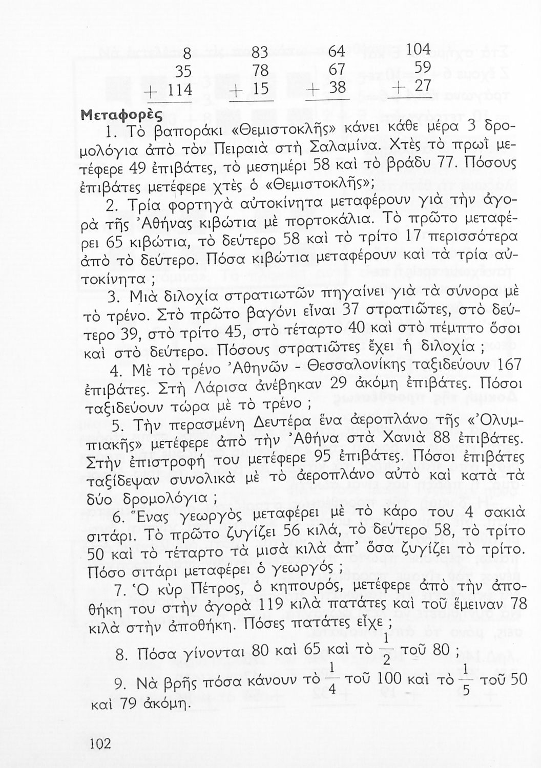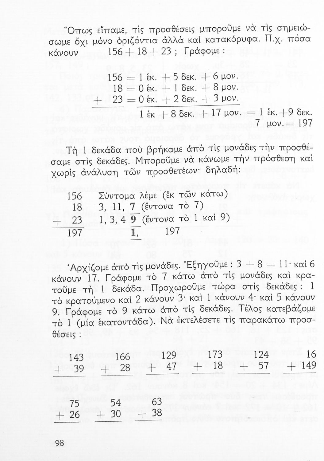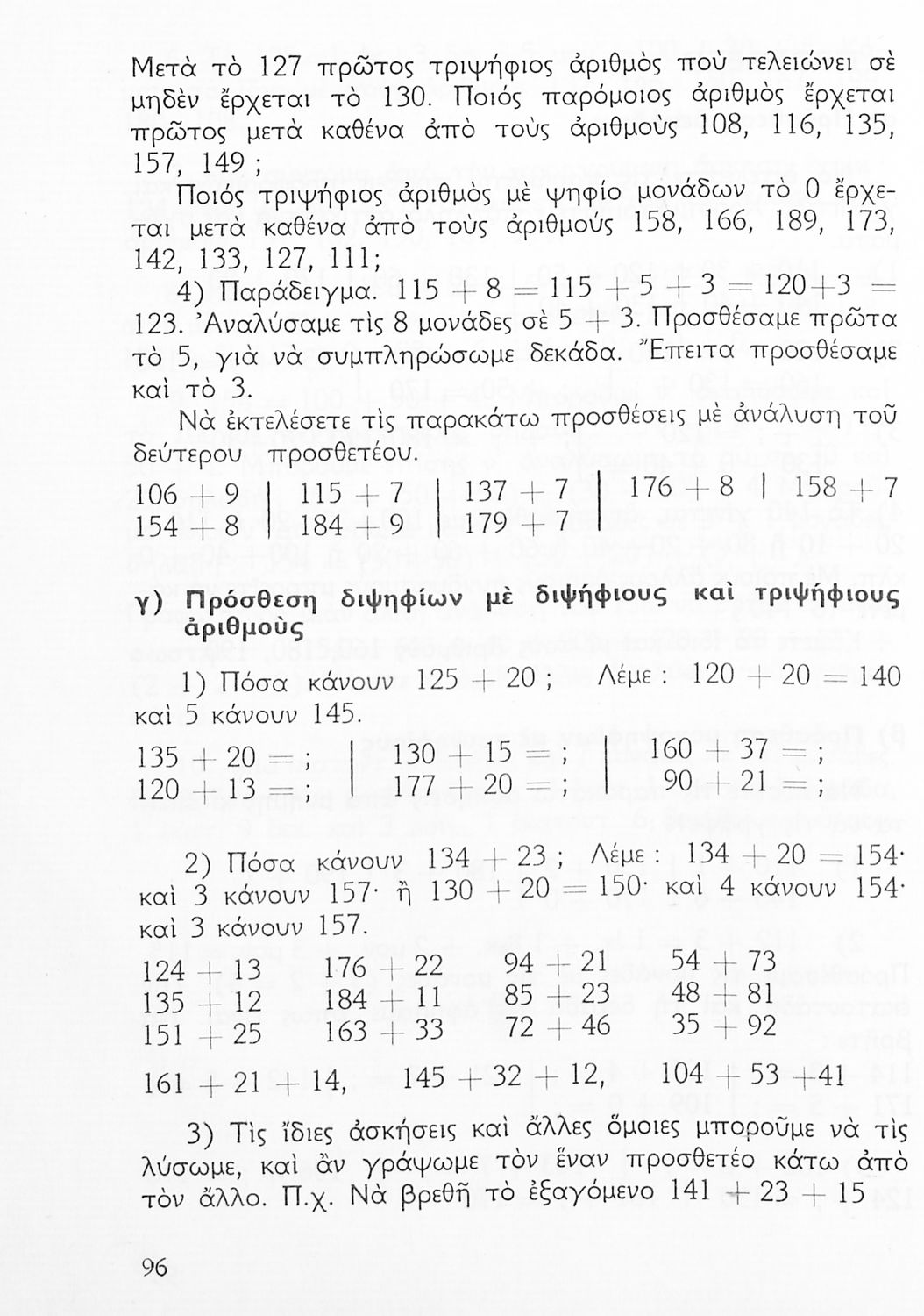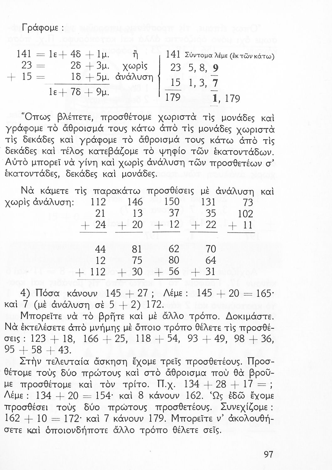 Σχολικό εγχειρίδιο Αριθμητικής για την Γ΄ Δημοτικού που περιλαμβάνει θεωρία, παραδείγματα και ασκήσεις και εστιάζει στις αριθμητικές πράξεις. Περιέχει και 11 σελίδες Γεωμετρίας.
