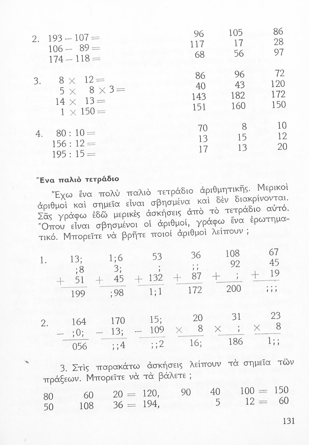 Σχολικό εγχειρίδιο με προβλήματα Αριθμητικής για την Γ΄ Δημοτικού χωρισμένο με βάση τις αριθμητικές πράξεις και τις εκατοντάδες.